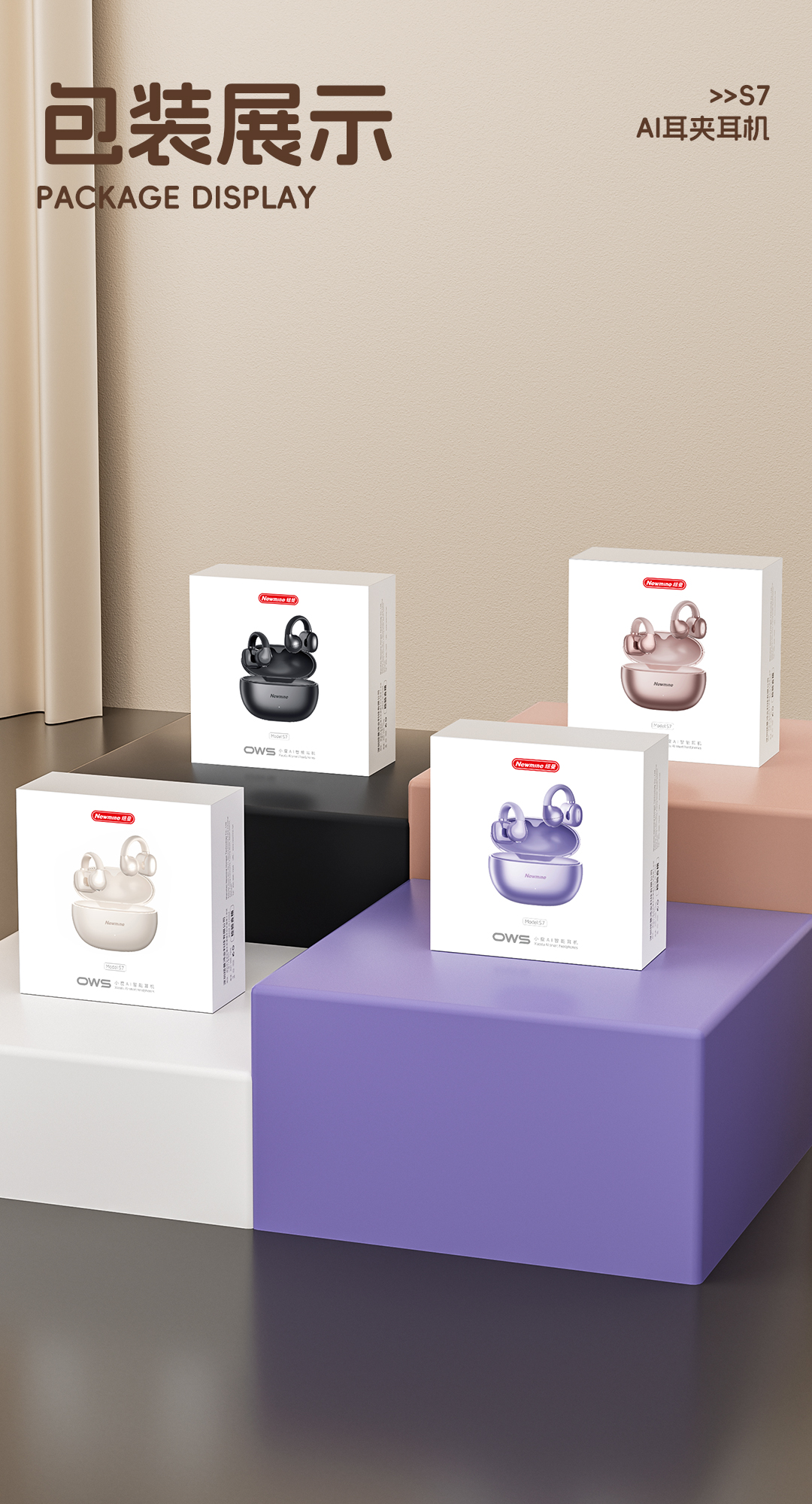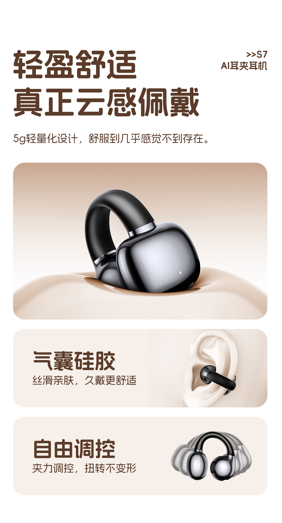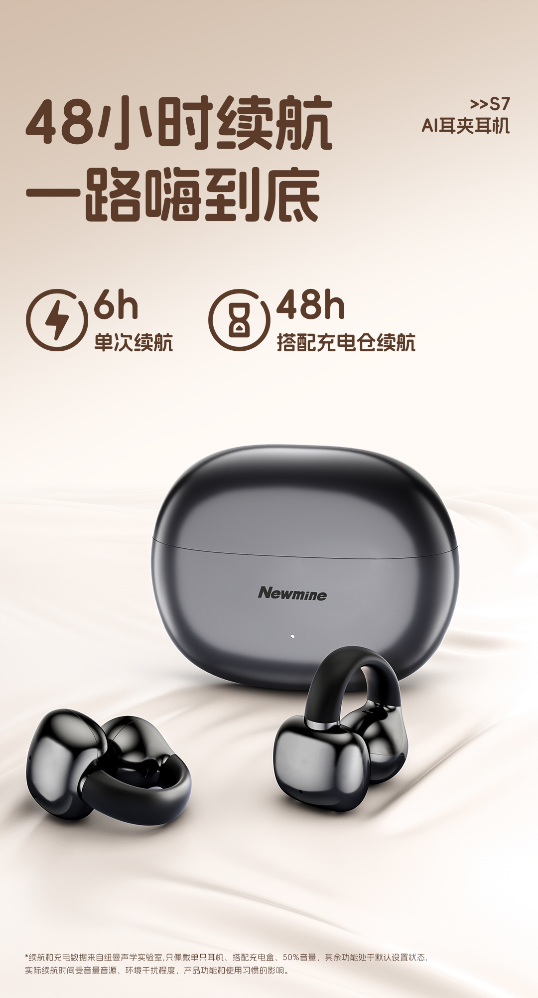 品牌直发【纽曼S7耳夹耳机】国货30年音质认证!AI智能不入耳,狂甩不掉!一年质保,玫瑰金预售4.18发