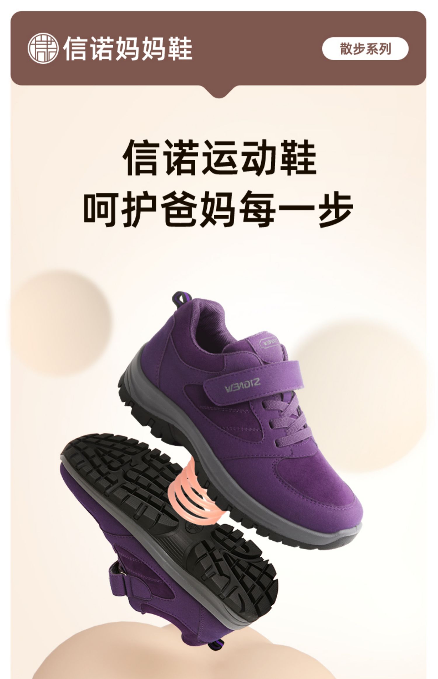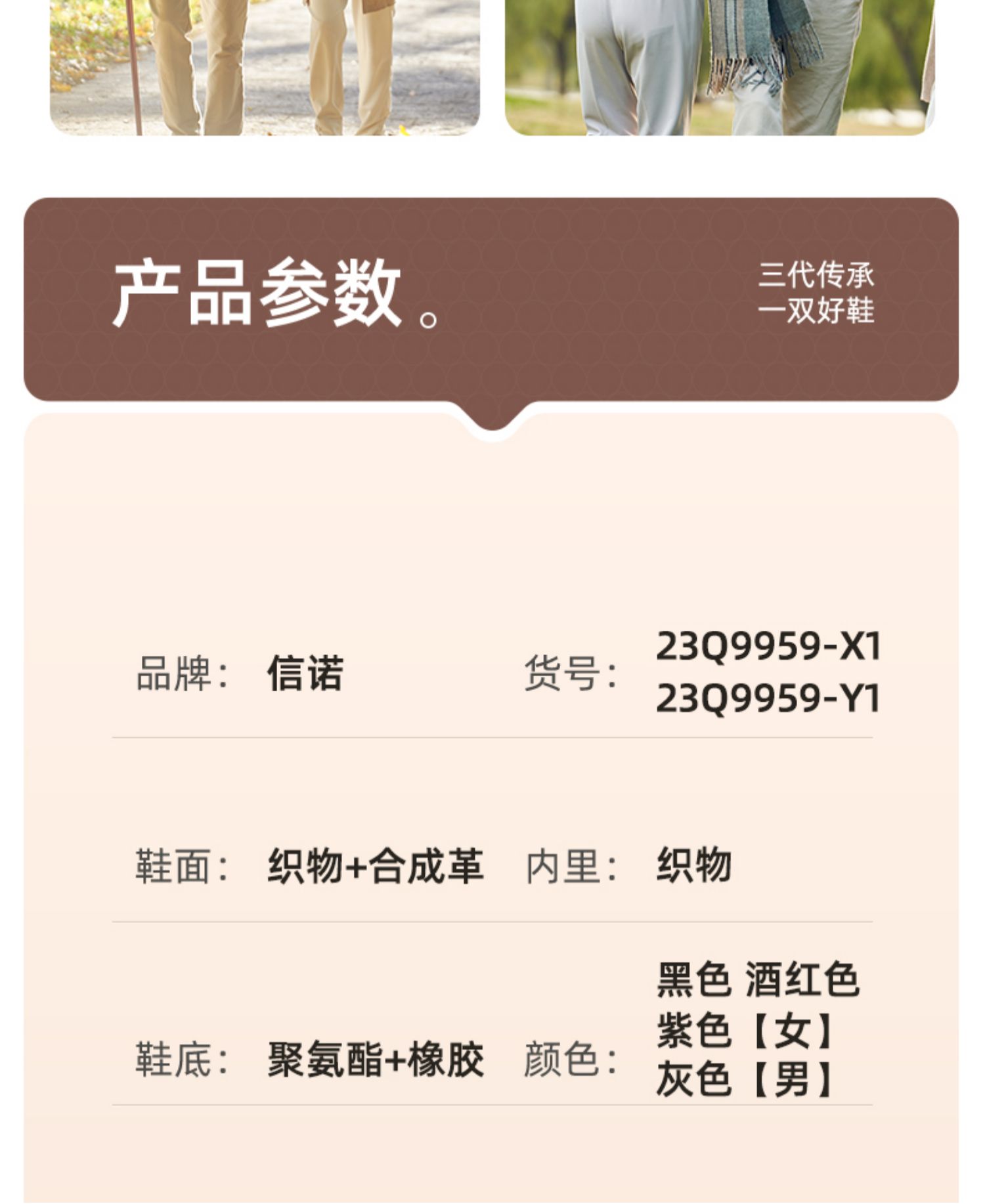 信诺秋季新款妈妈鞋中老年舒适健步鞋防滑软底老人鞋女休闲运动鞋23Q9959-X1