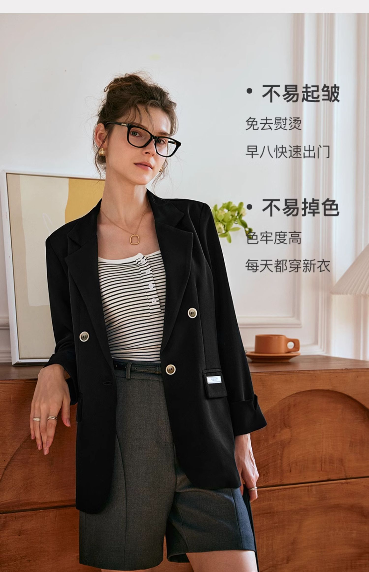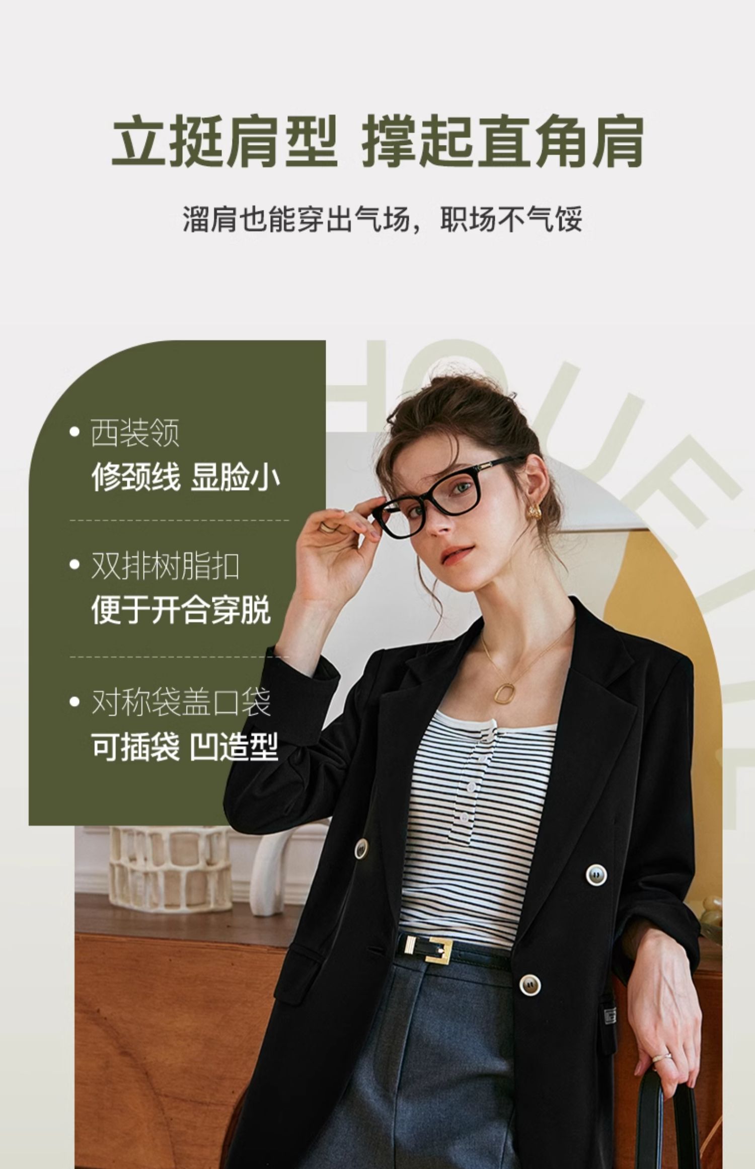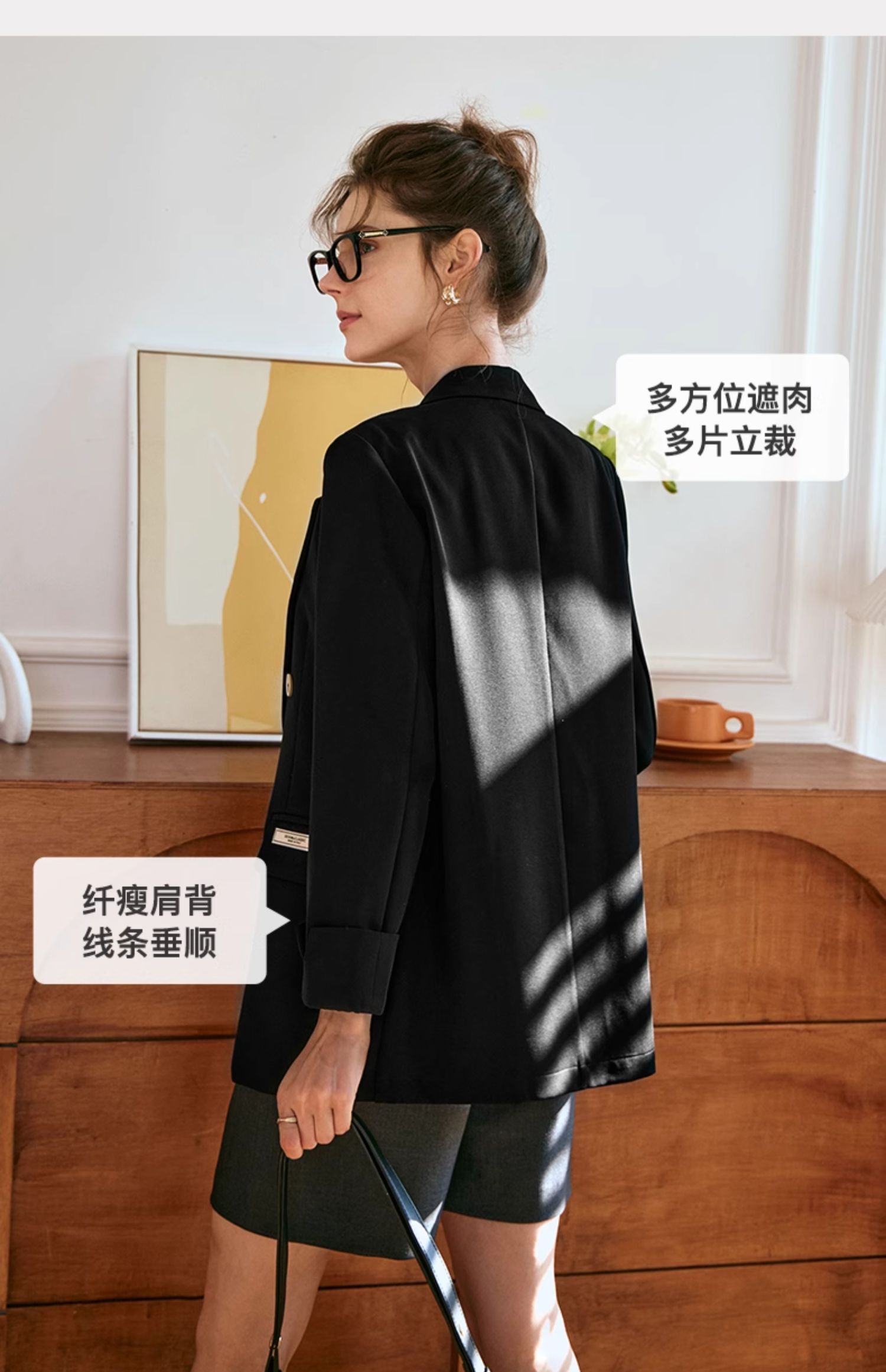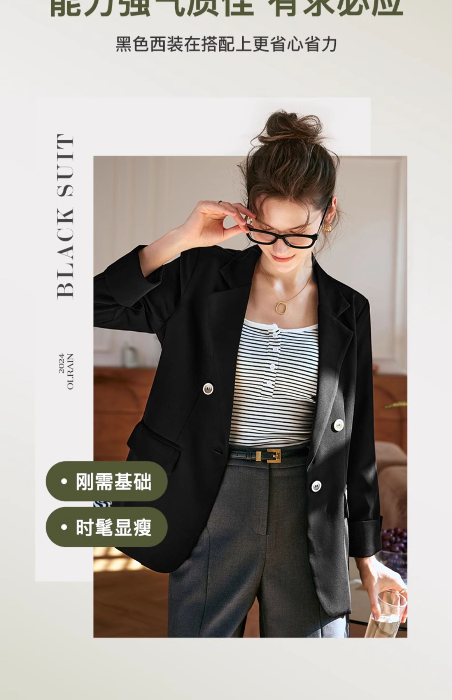 OLrain欧芮儿黑色西装女早春2024新款简约气质设计感休闲短外套
