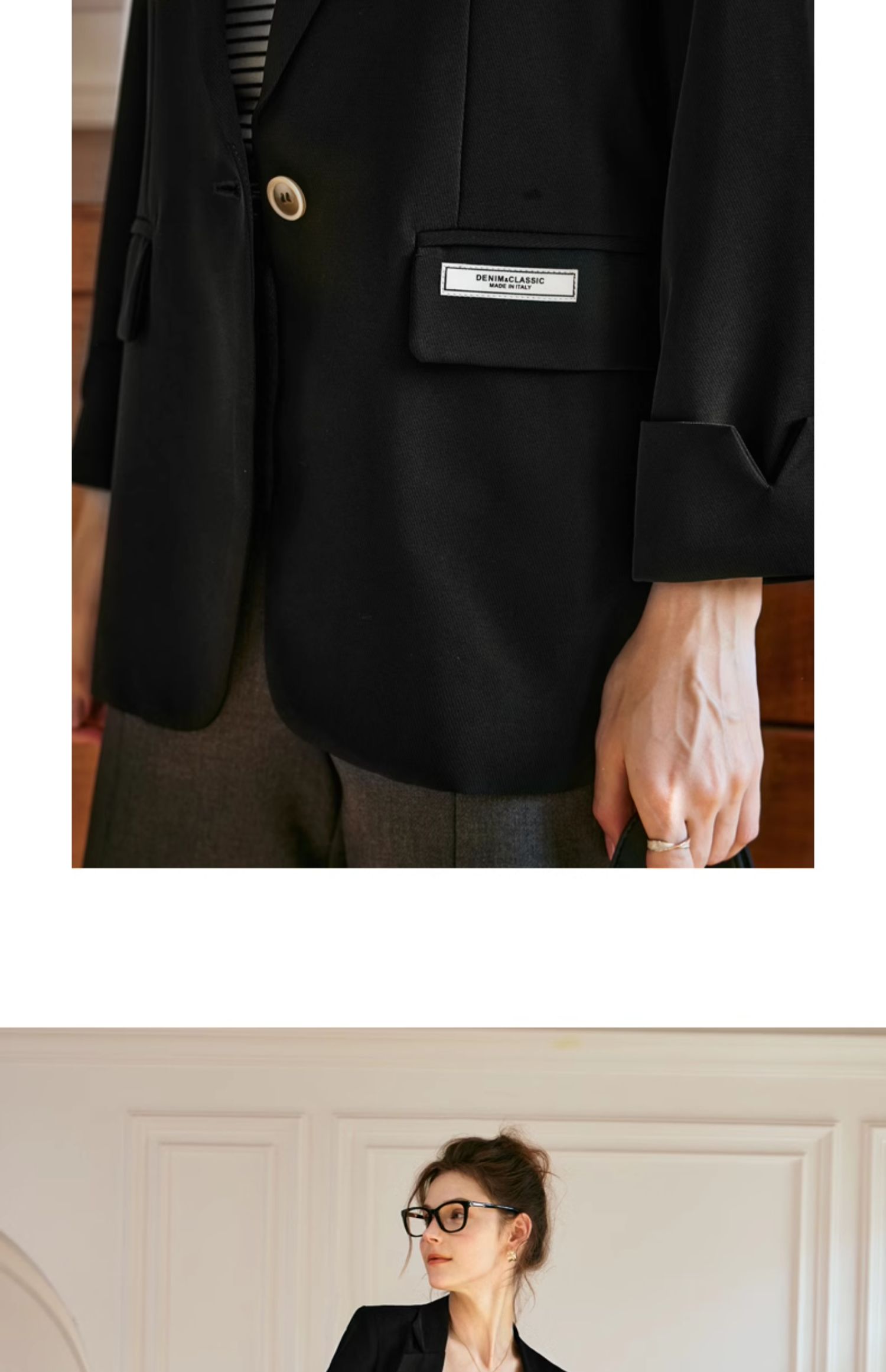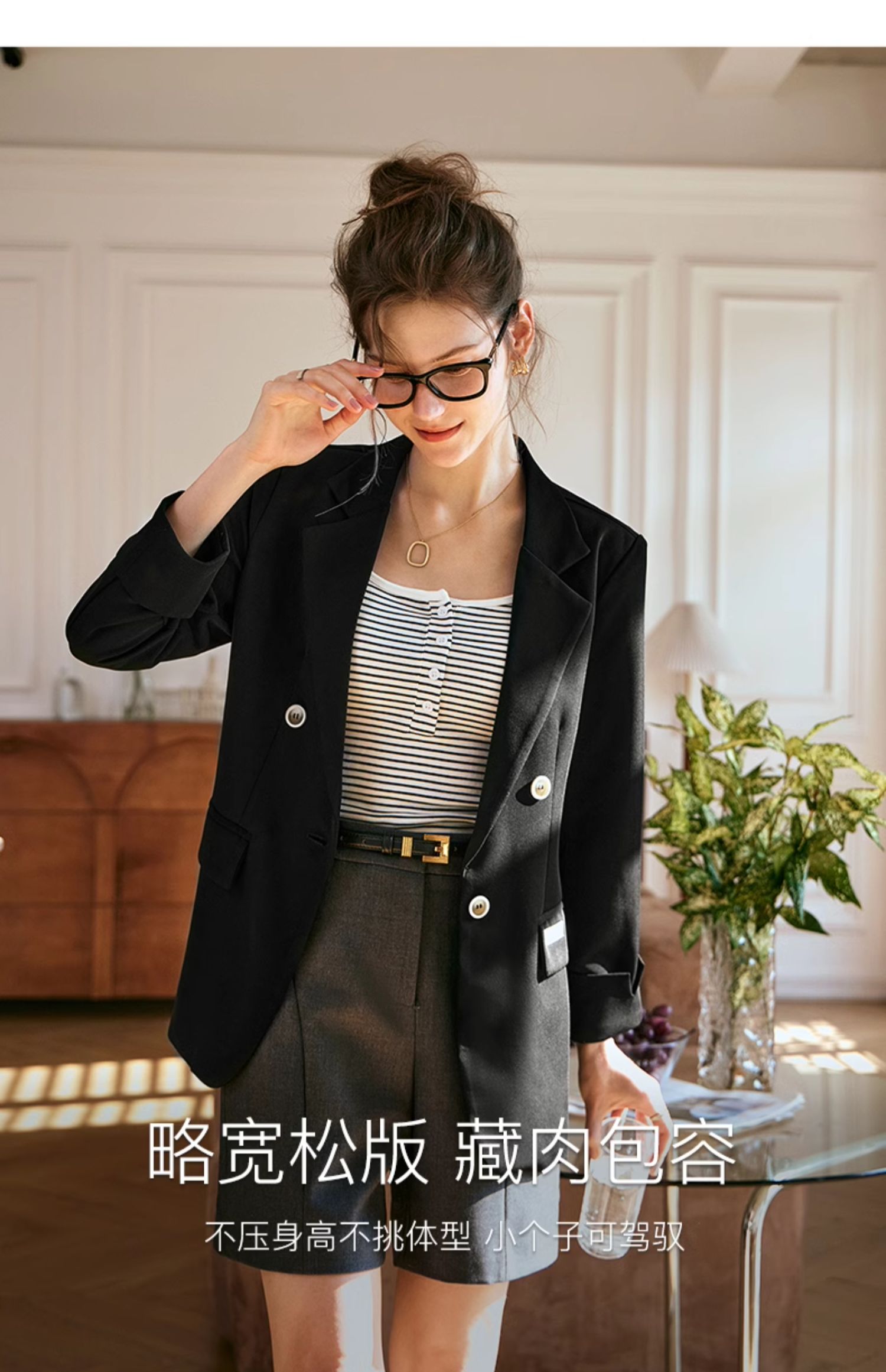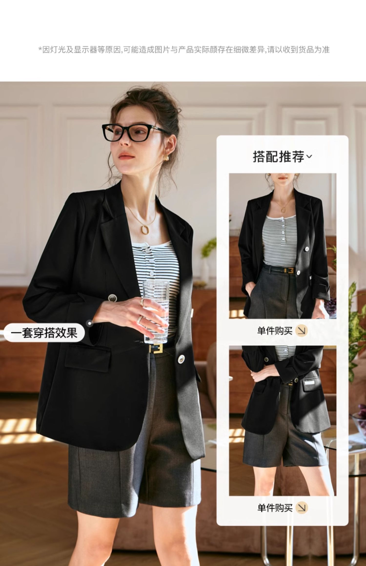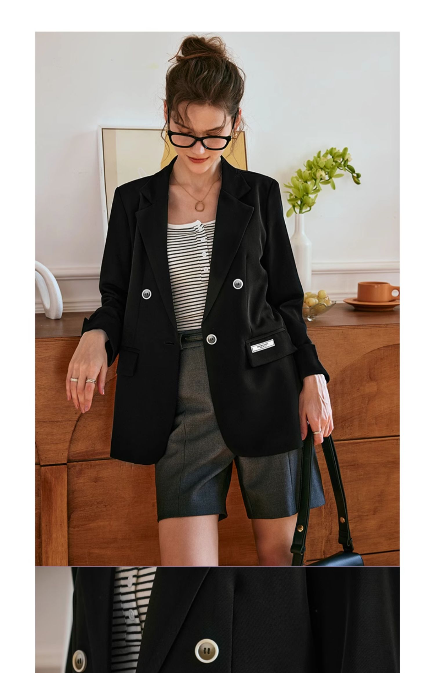 OLrain欧芮儿黑色西装女早春2024新款简约气质设计感休闲短外套
