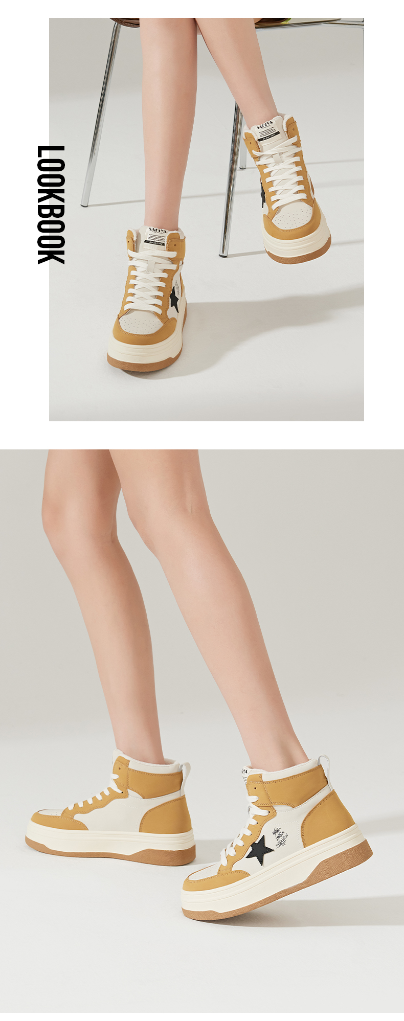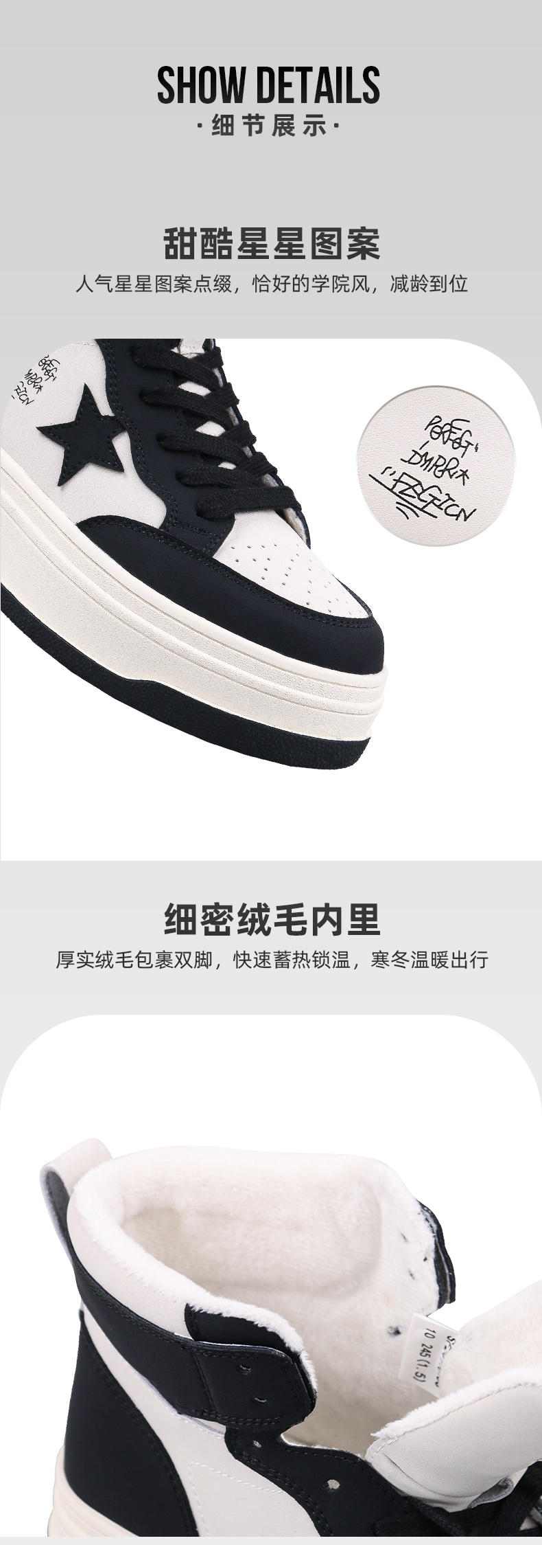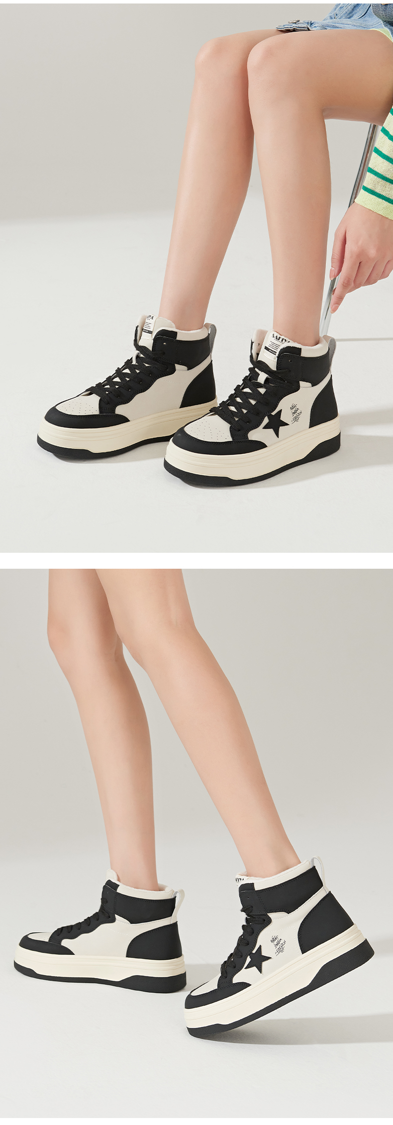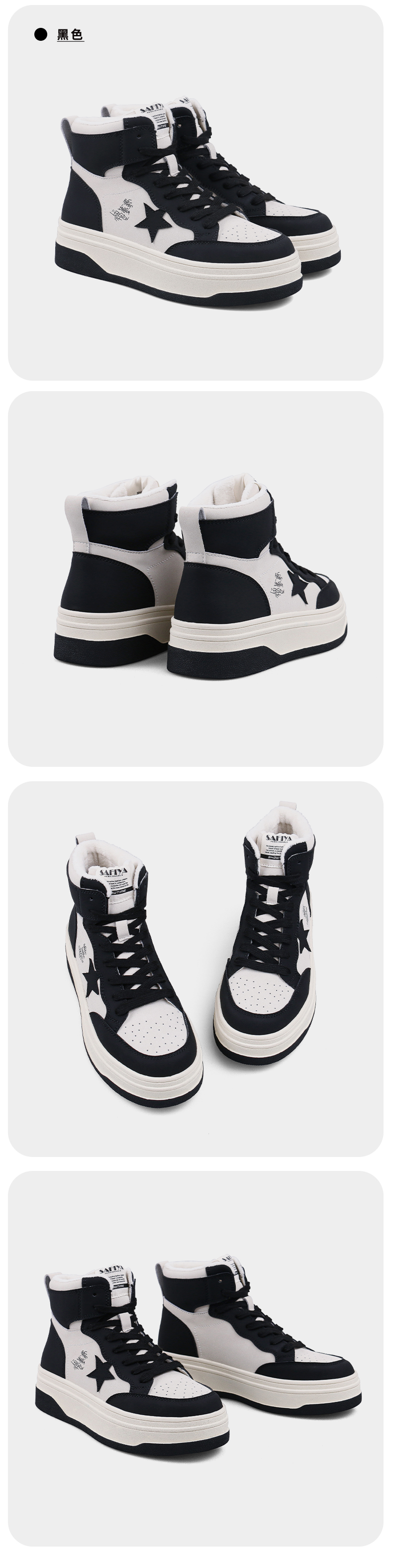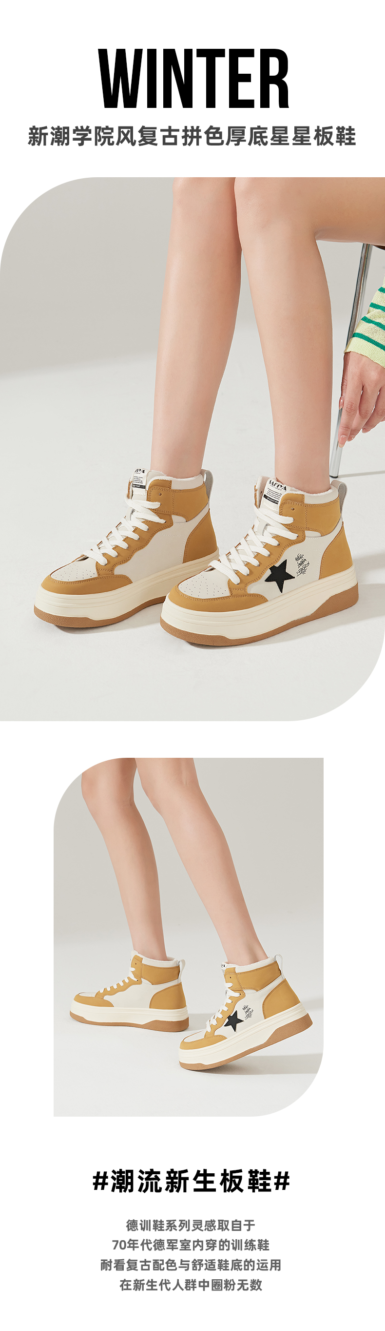 【春节不打烊】Safiya/索菲娅 学院风复古拼色厚底高帮鞋2022冬季新款保暖加绒星星板鞋女 SF24118135