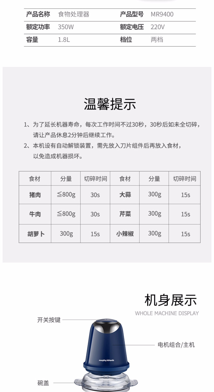 摩飞MR9400电动辅食料理机