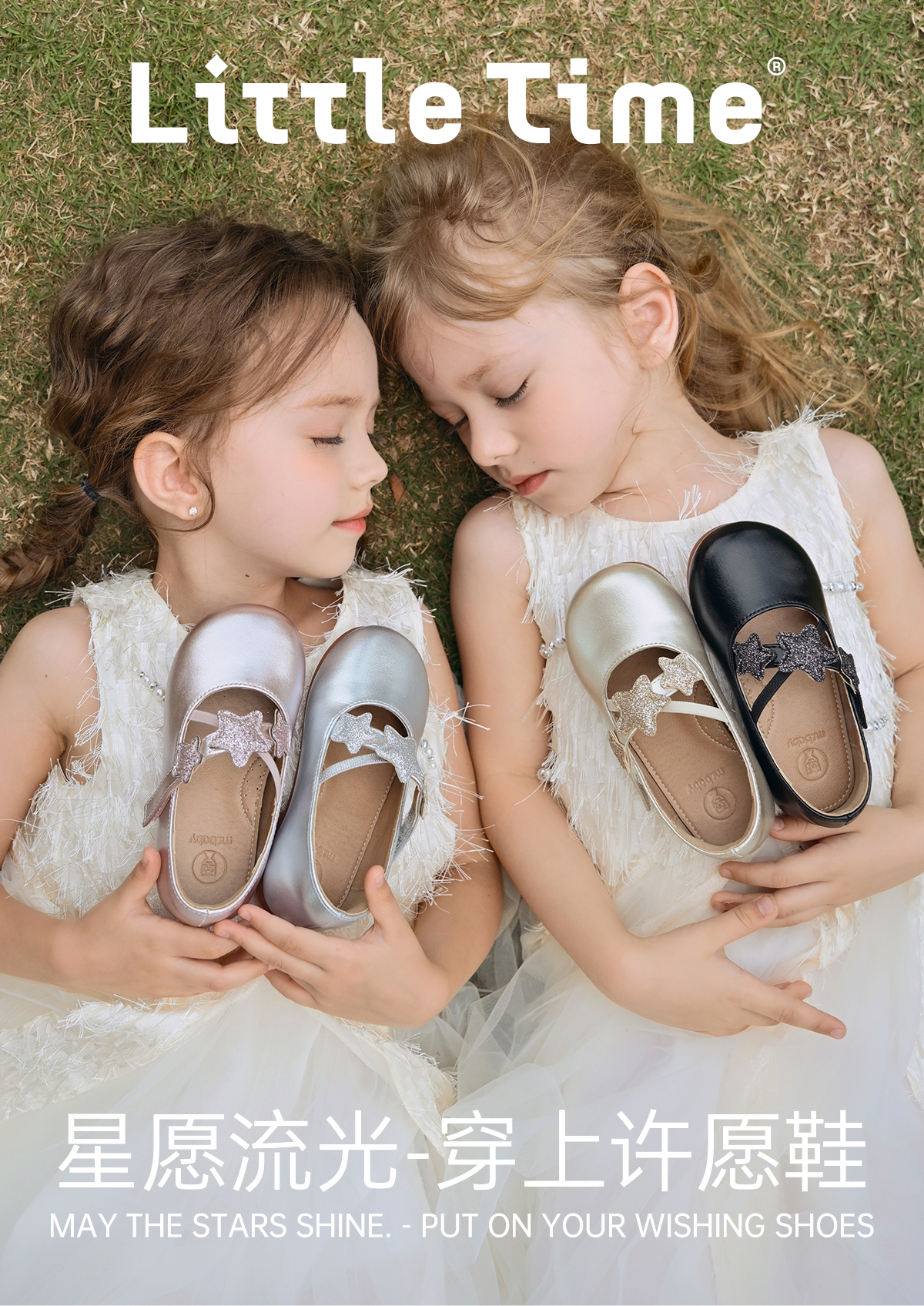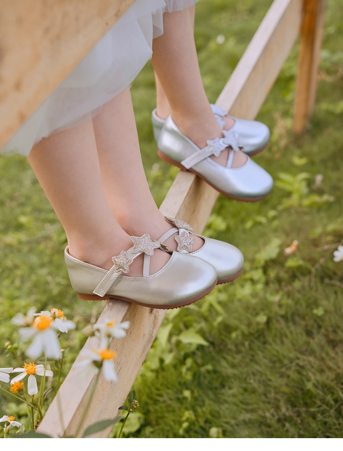 Little time儿童鞋2025春季新款纯色星星魔术贴软底皮鞋公主鞋