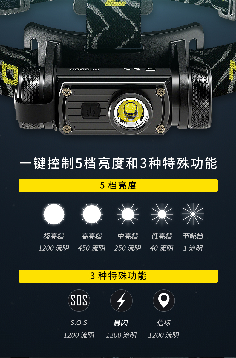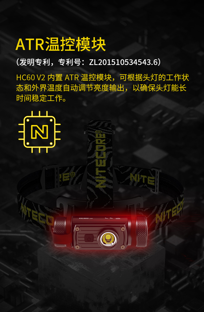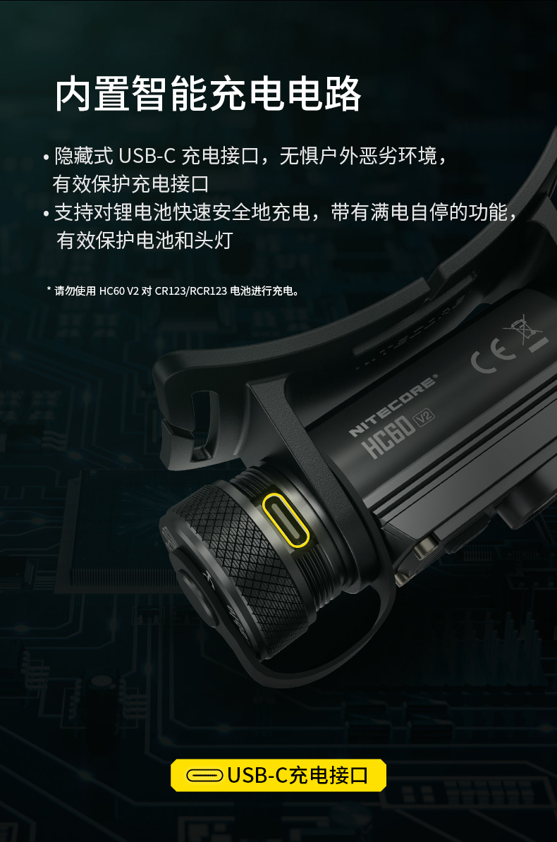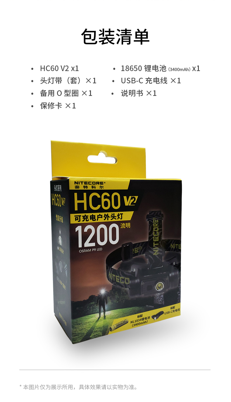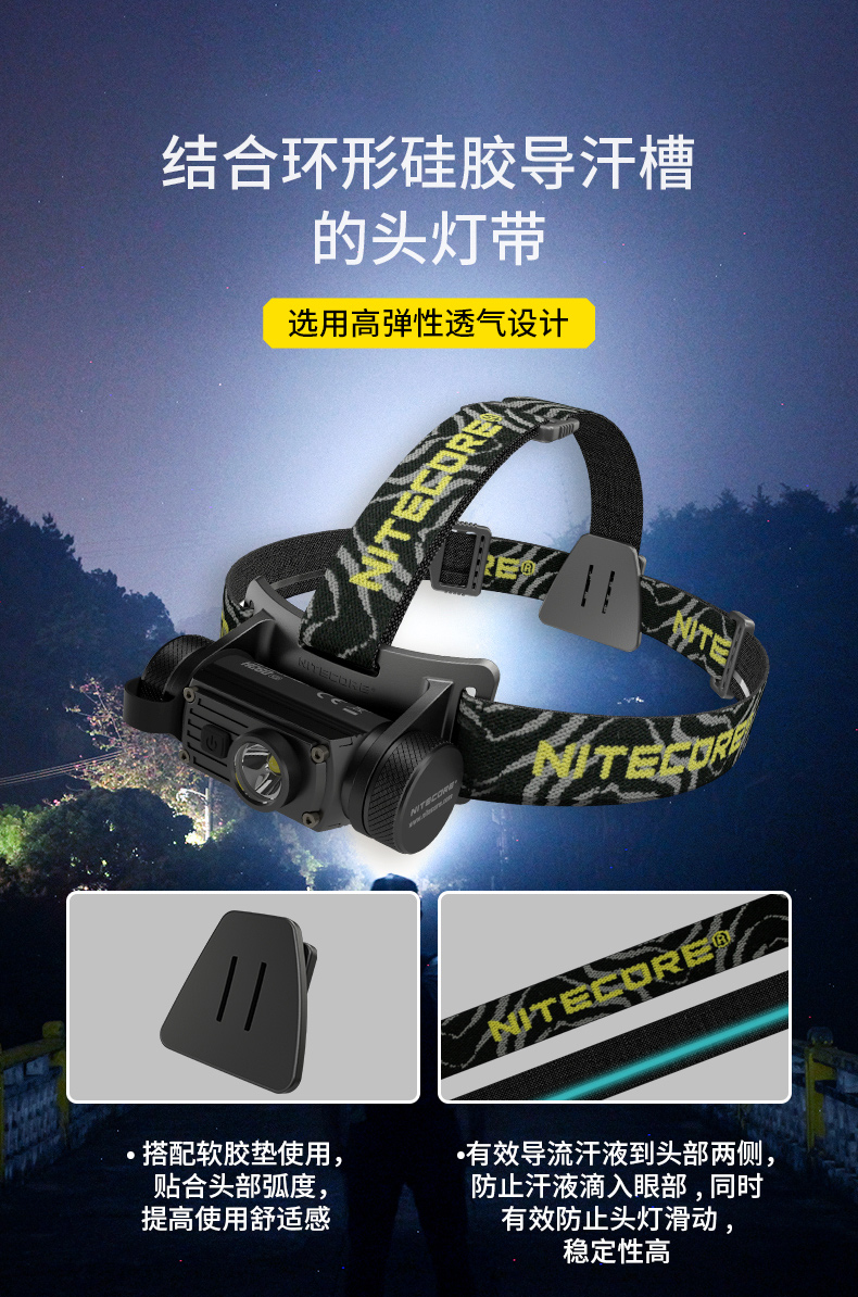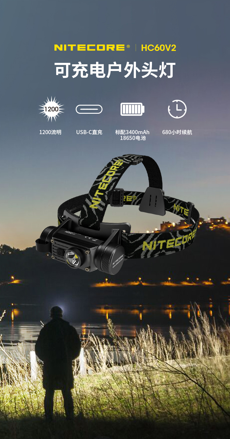 NITECORE奈特科尔HC60 V2轻量头戴强光头灯白光USB充电户外工作灯
