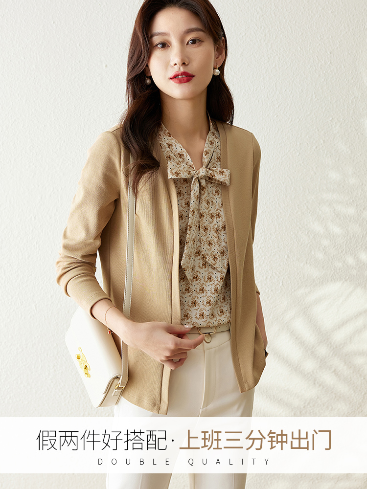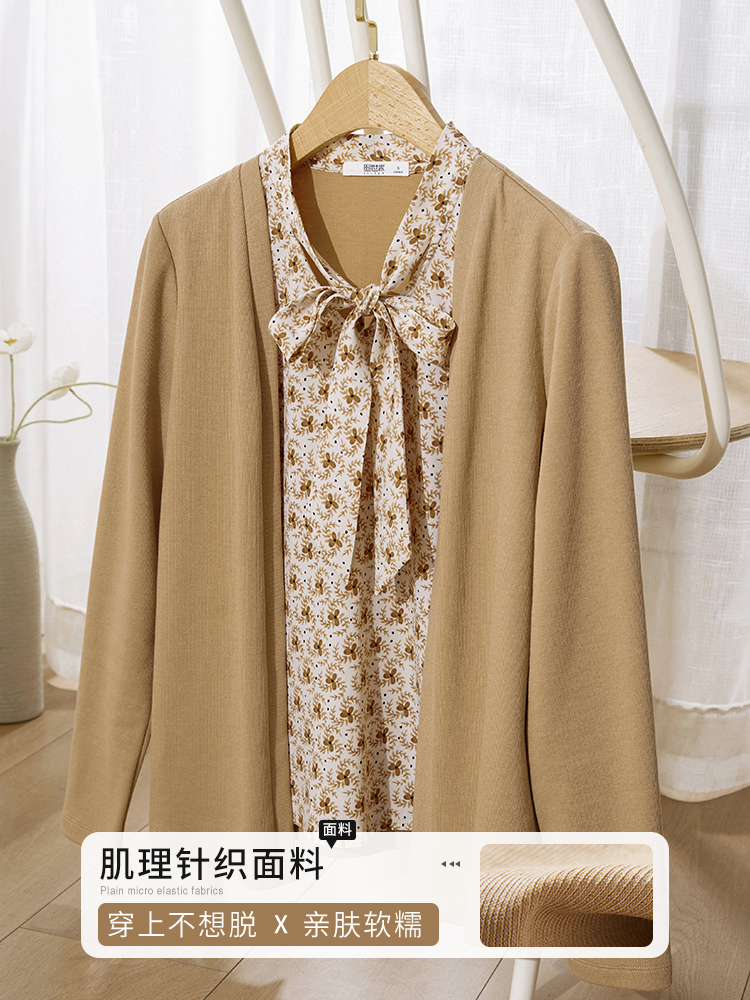 【69元福袋,不支持退换】熙世界假两件针织衫女设计小众蝴蝶结碎花飘带别致上衣2025春