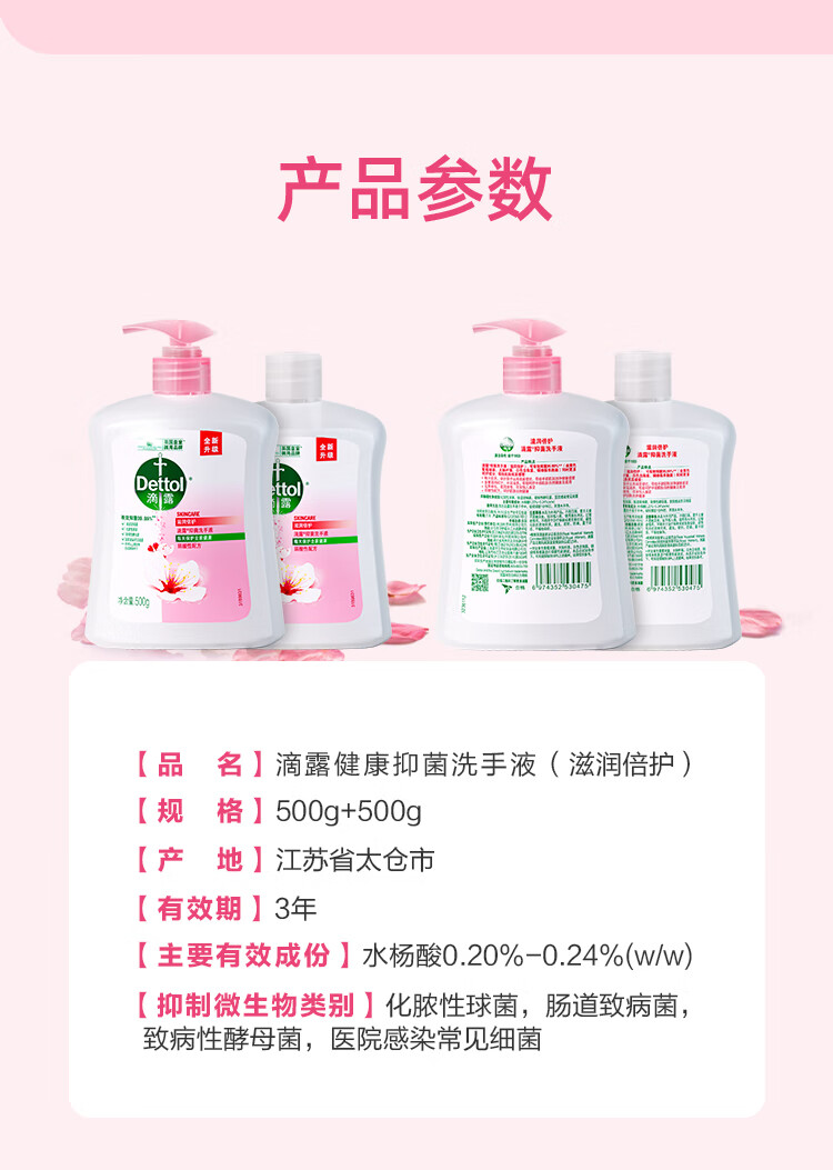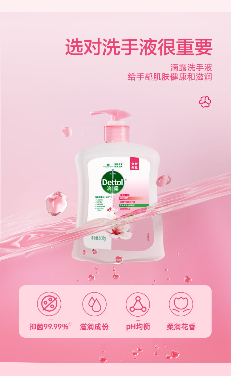 滴露Dettol健康抑菌洗手液滋润倍护500g+500g瓶装补充液 抑菌99.9%