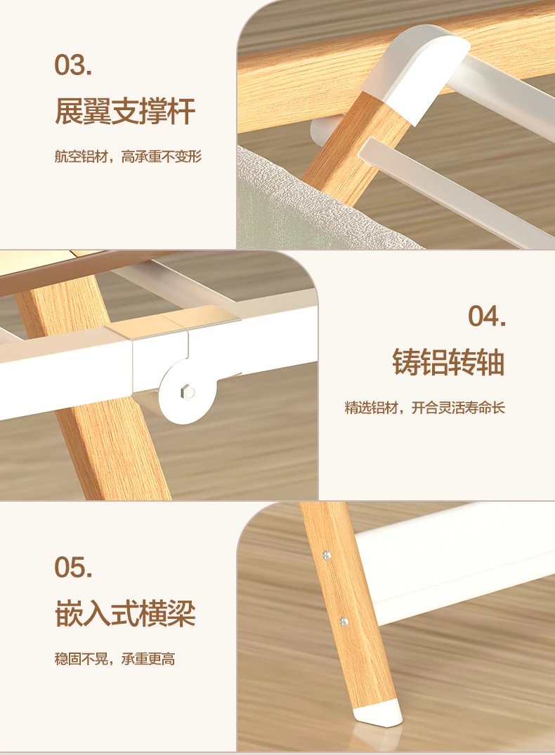 5.铸铝连接件 强度高 不易变形 使用年限久 不易生锈 使晾衣架更稳固