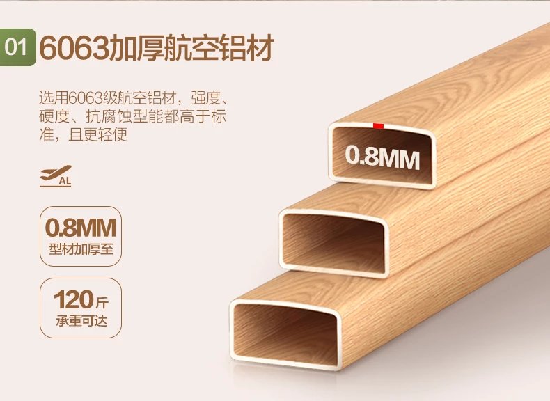 2. 表面采用电泳工艺 色泽细腻 耐腐蚀 不易生锈 ,水转印工艺,表面处理会比前面工艺更复杂 ,让铝合金的表面有木纹色的外观
