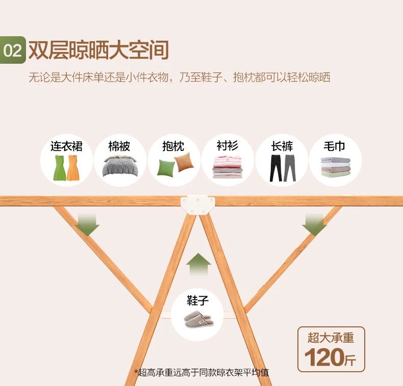 6. 大容量 双层晾晒 轻松晾晒被子 裙子等各种衣物 (可多档位调节)