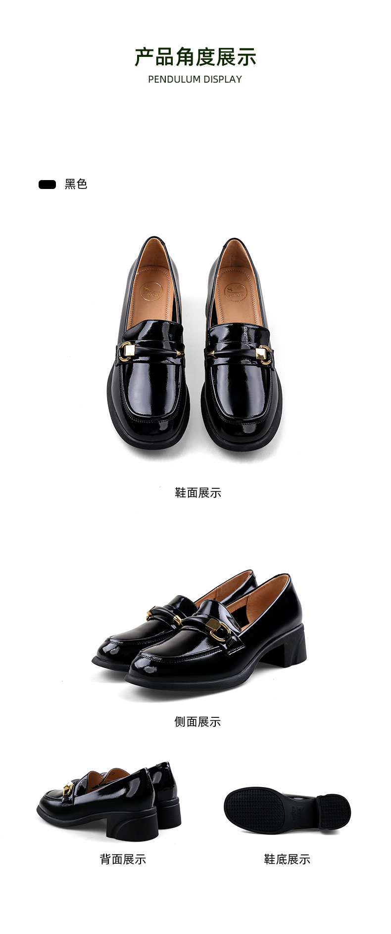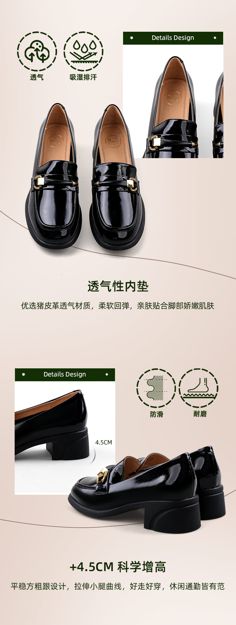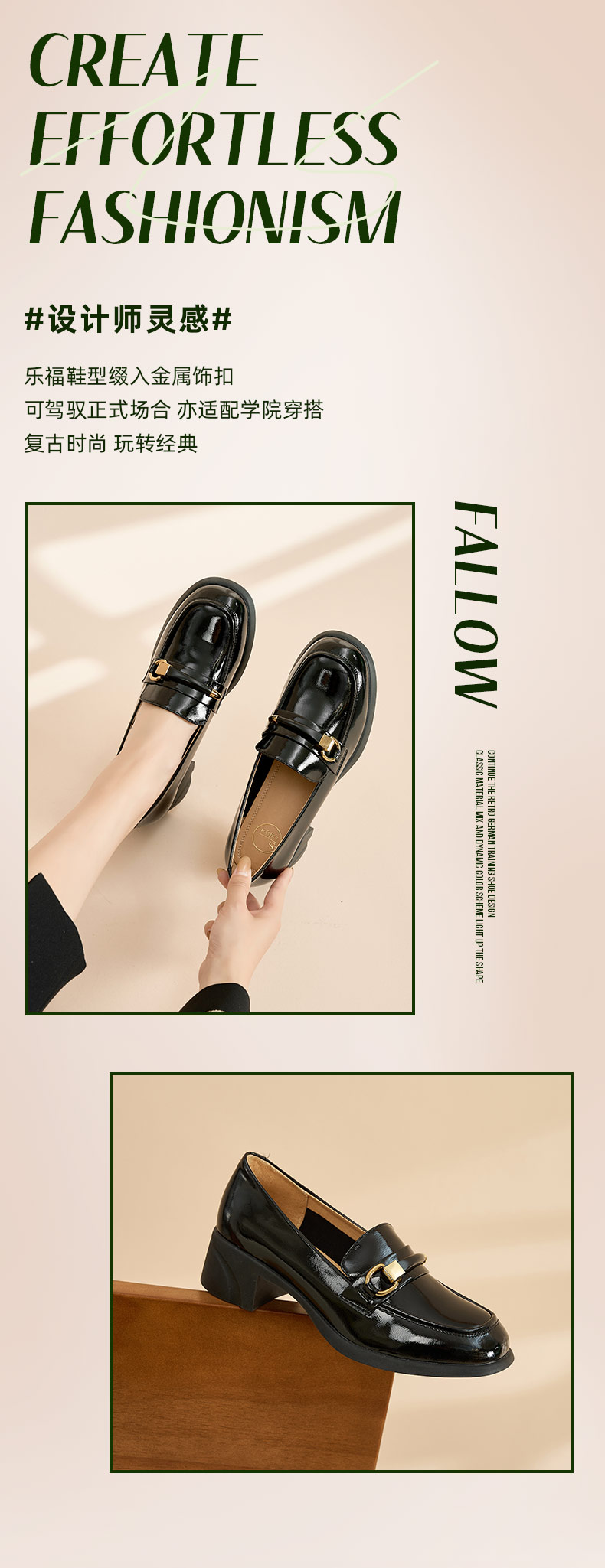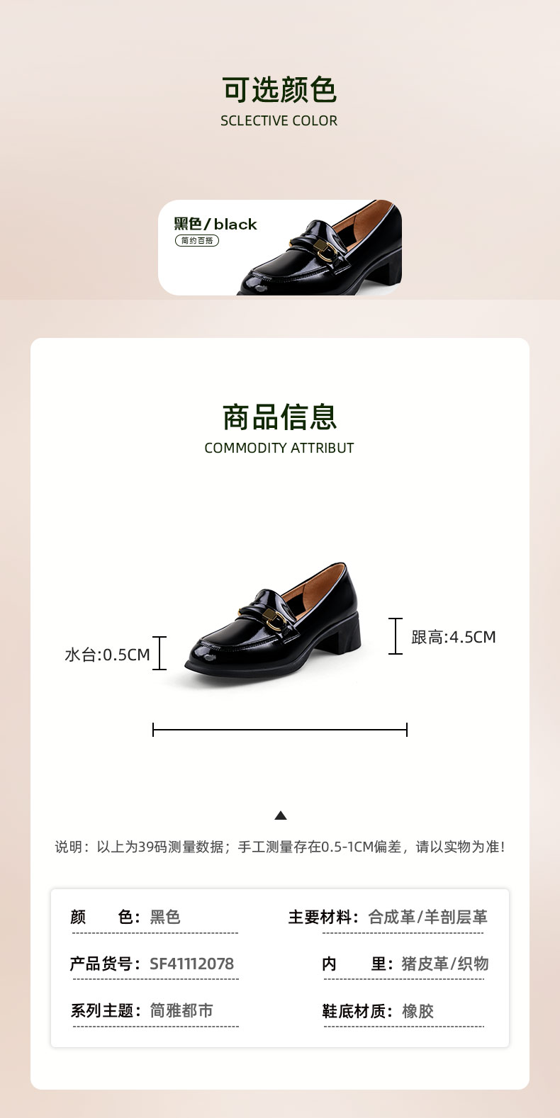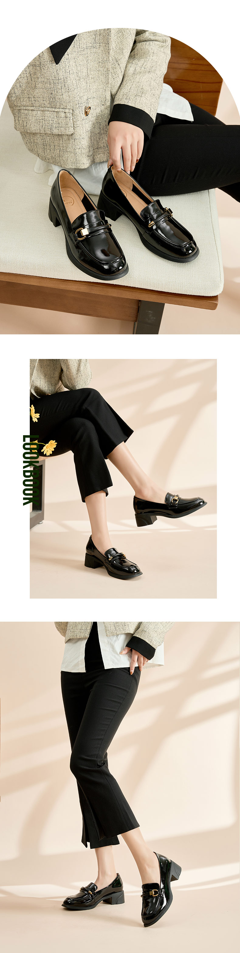 Safiya/索菲娅2024春季新品复古金属扣漆皮一脚蹬粗跟英伦乐福鞋 SF41112078