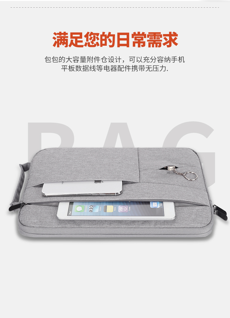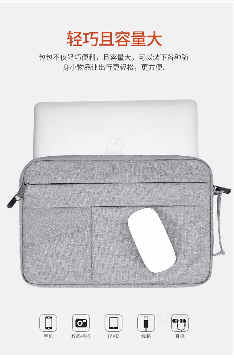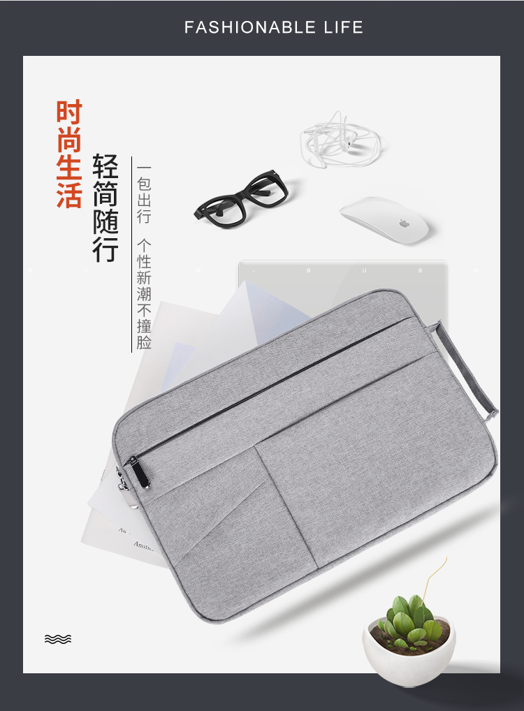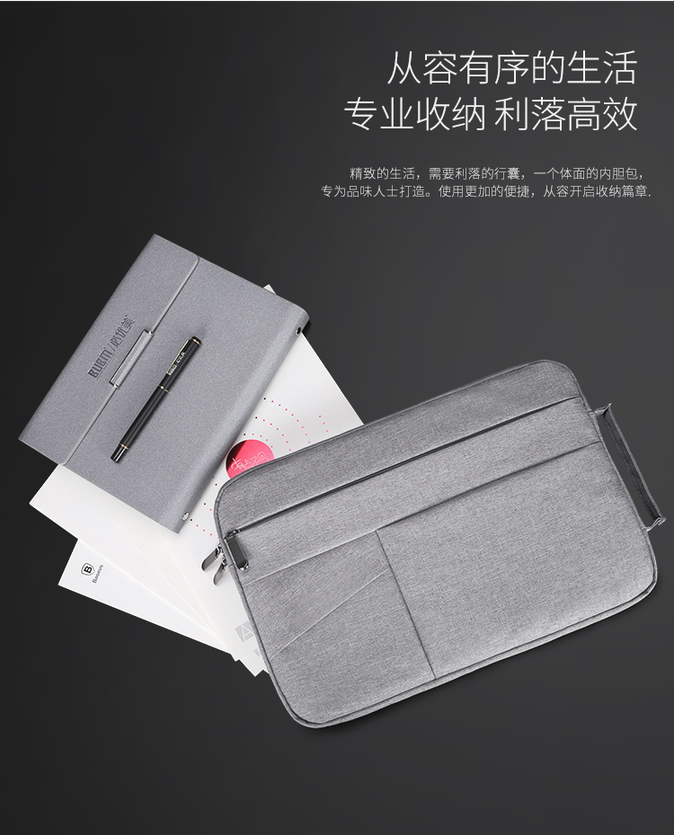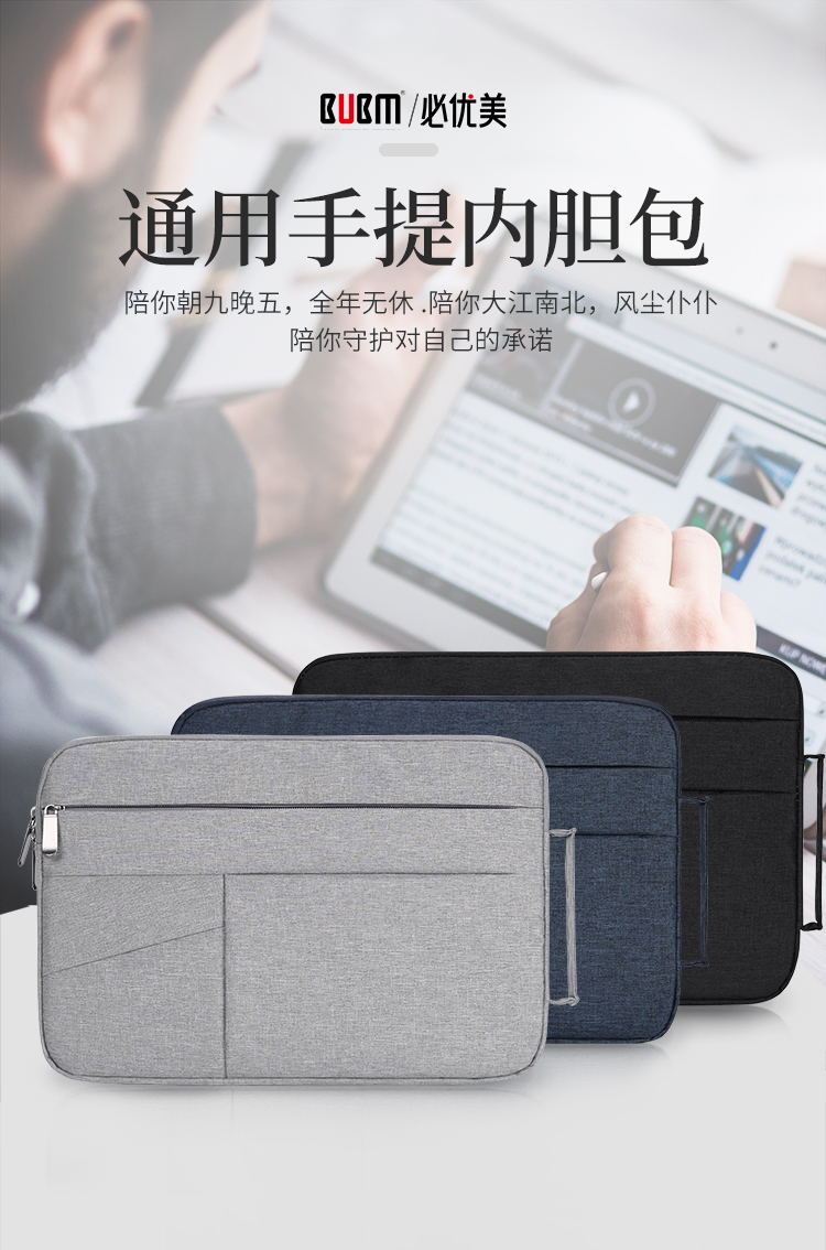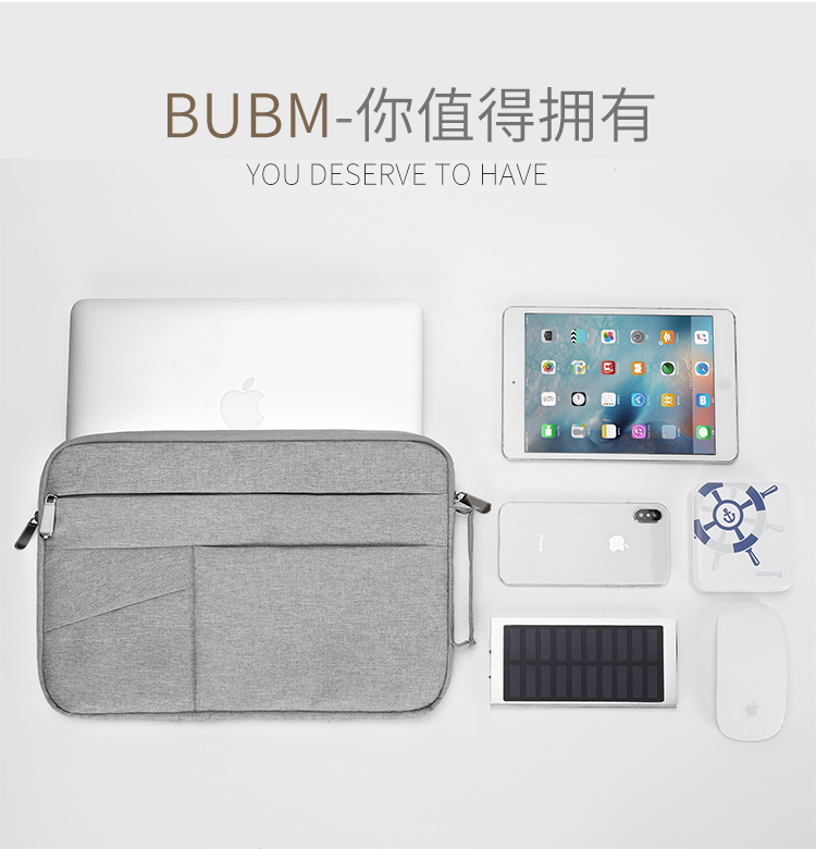 BUBM 苹果小米联想14英寸笔记本电脑包女手提商务内胆包男华硕戴尔保护套薄公文FMBJ-14英寸 灰色