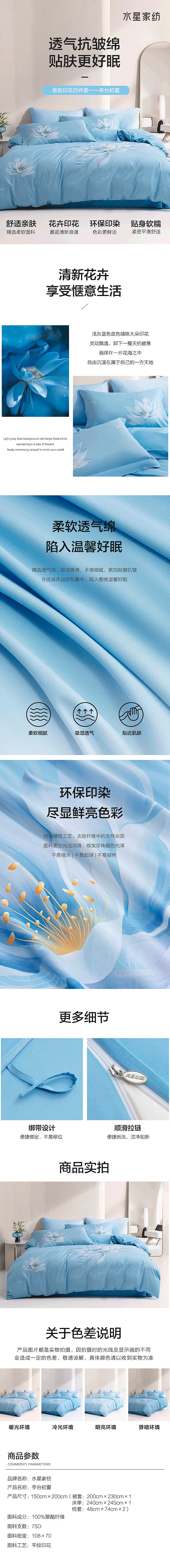 水星家纺抗菌磨毛四件套-亭台初夏