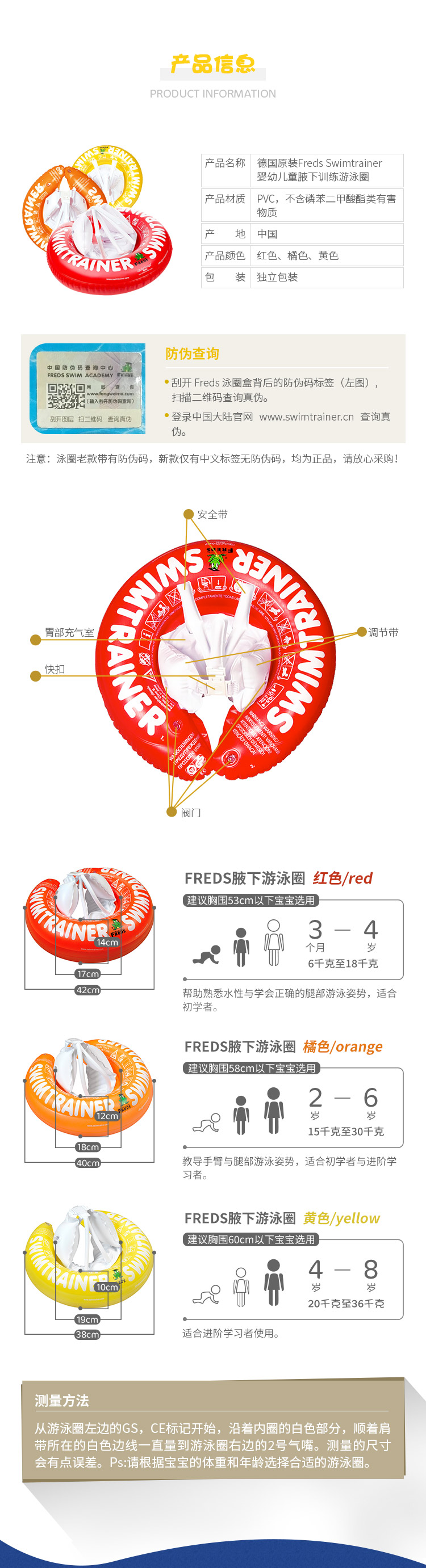 *【送打气筒】德国Freds swimtrainer 婴幼儿宝宝训练游泳圈