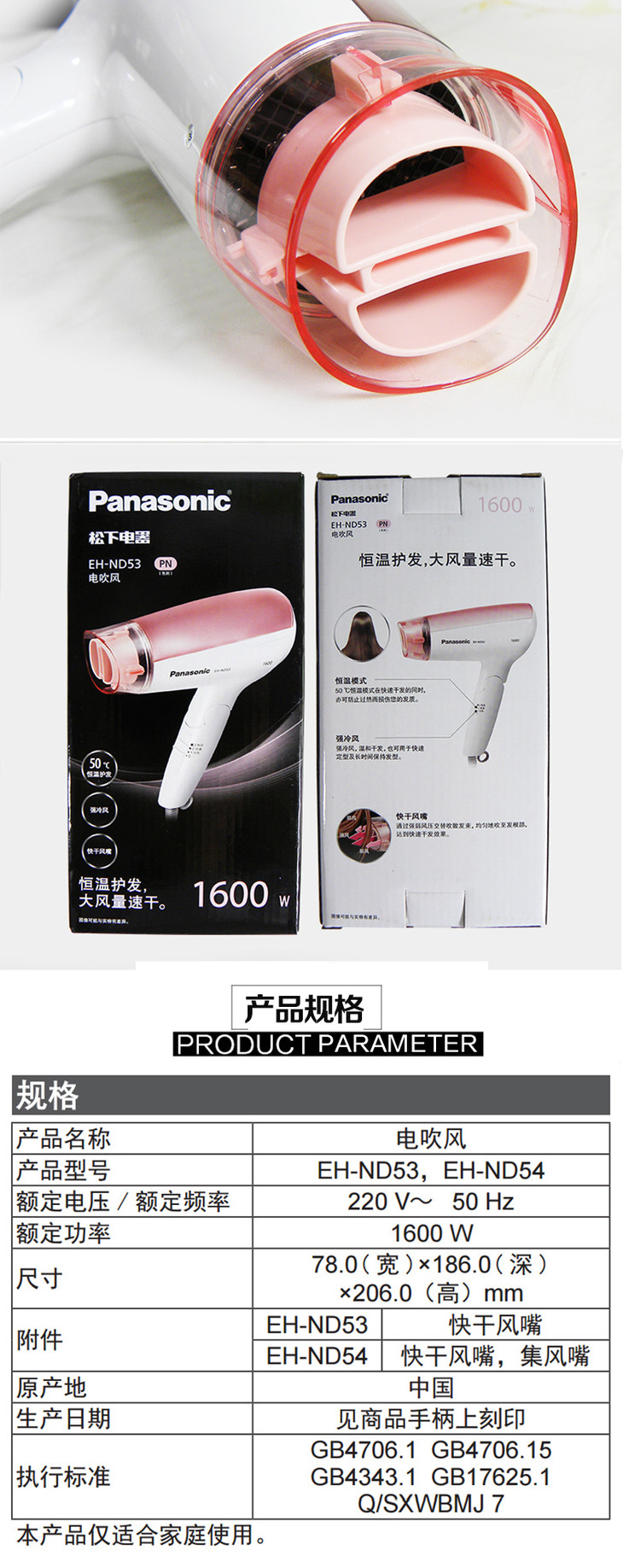 8月内购 松下 EH-ND53PN405 电吹风