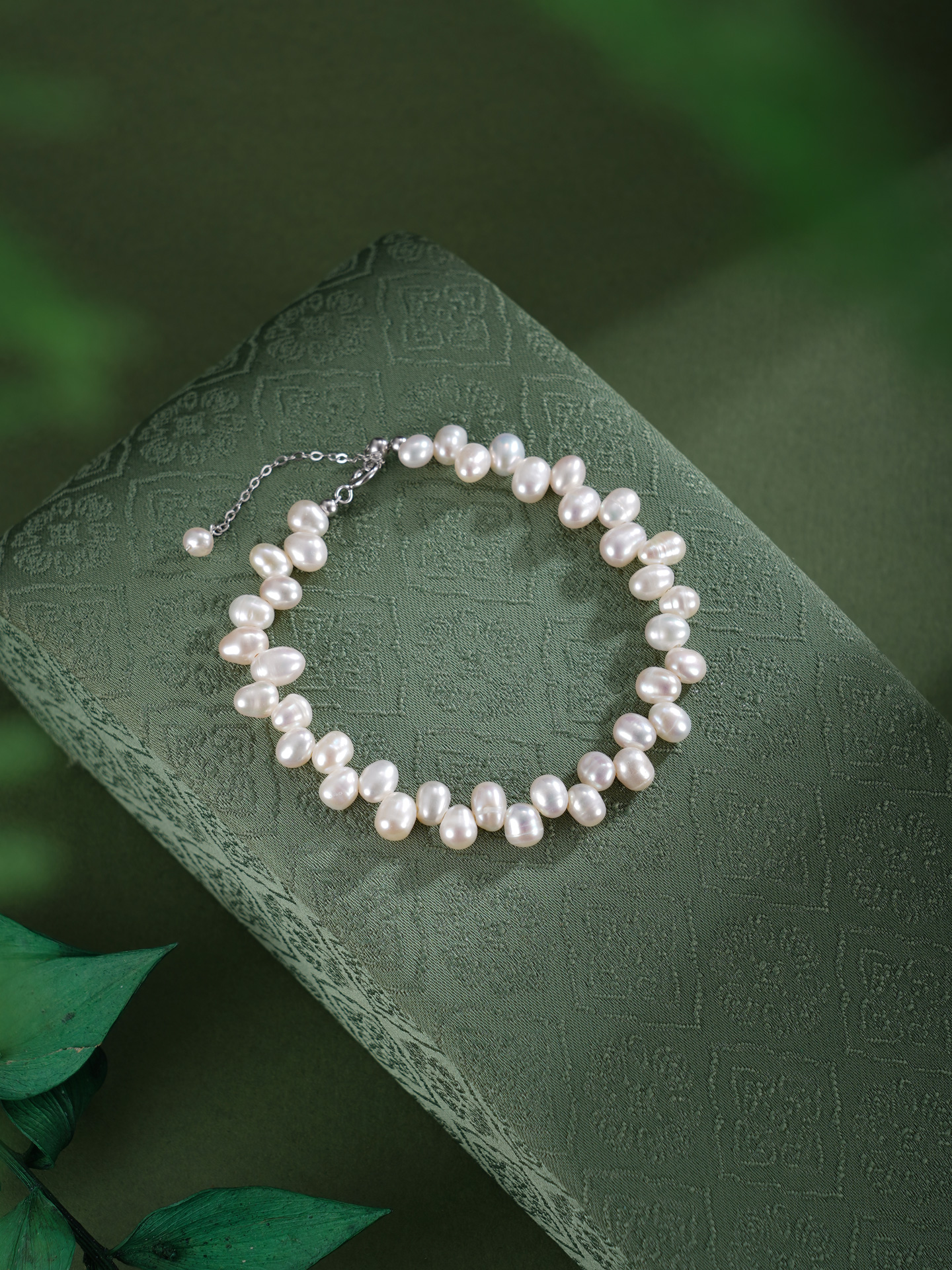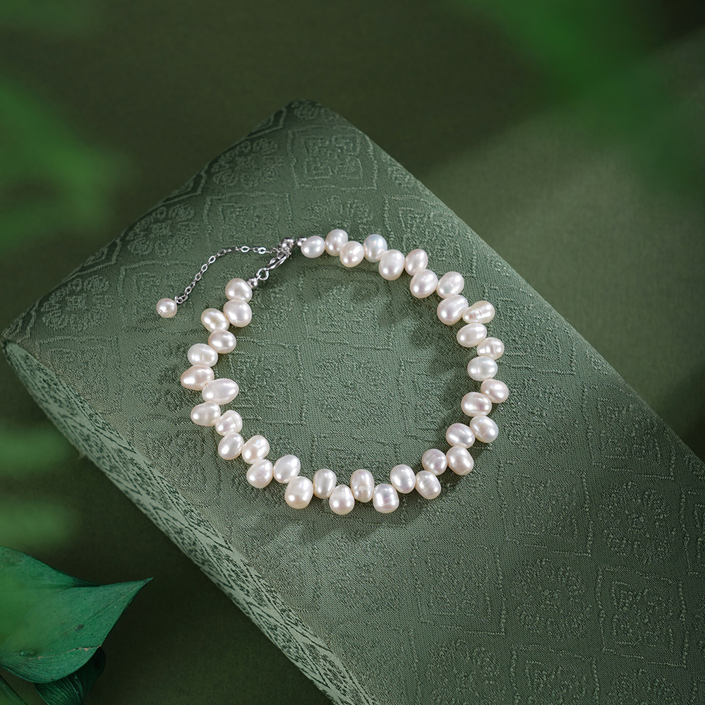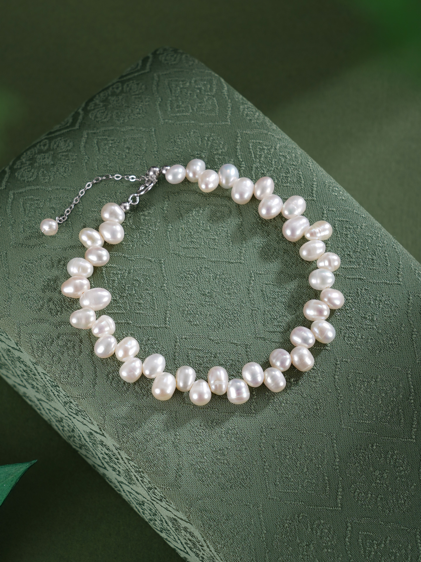 子佩集【珠澈凝霜】银S925珍珠惜王妃手链【SPB0750002】4*6mm珠巴洛克2601