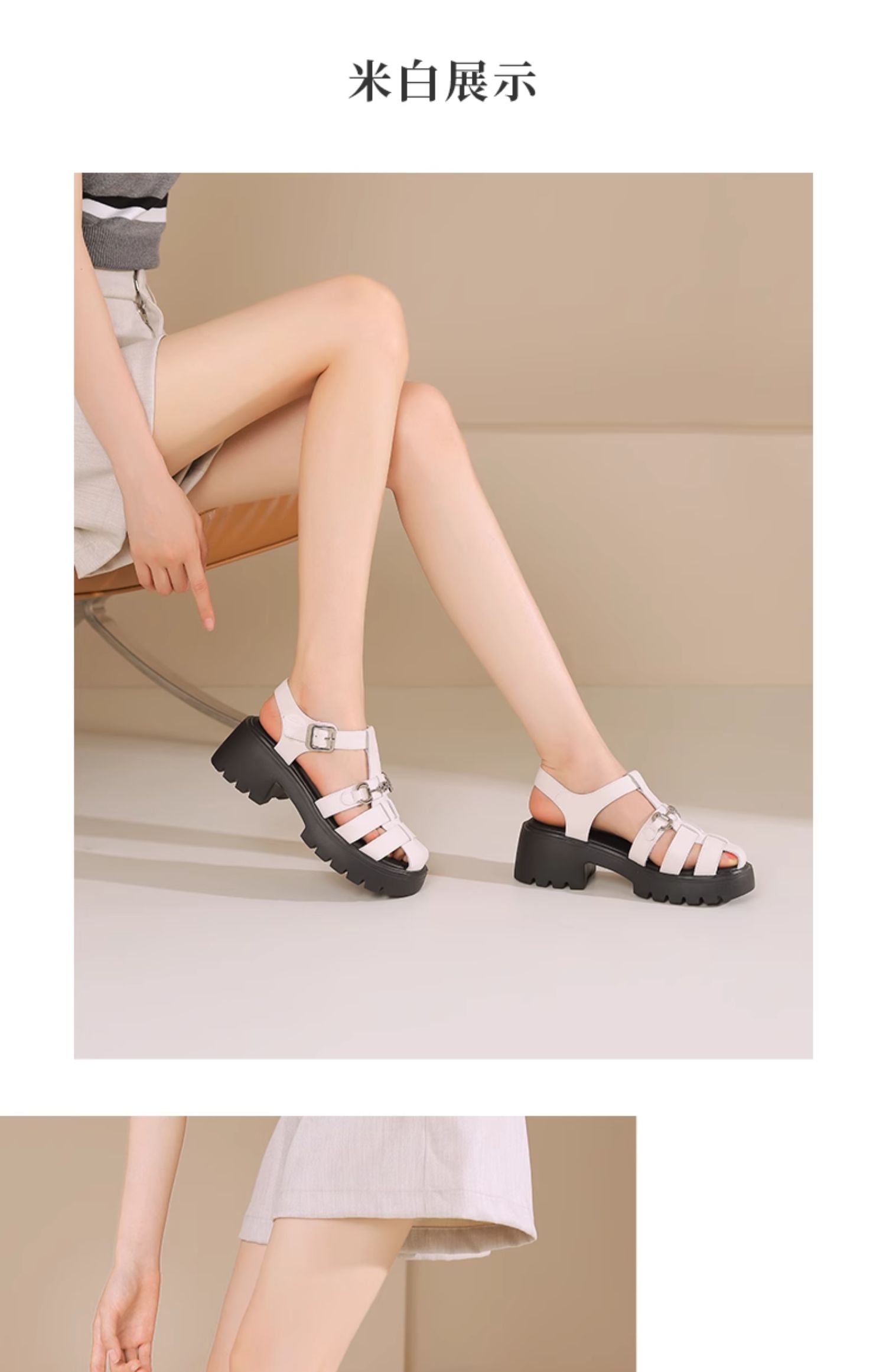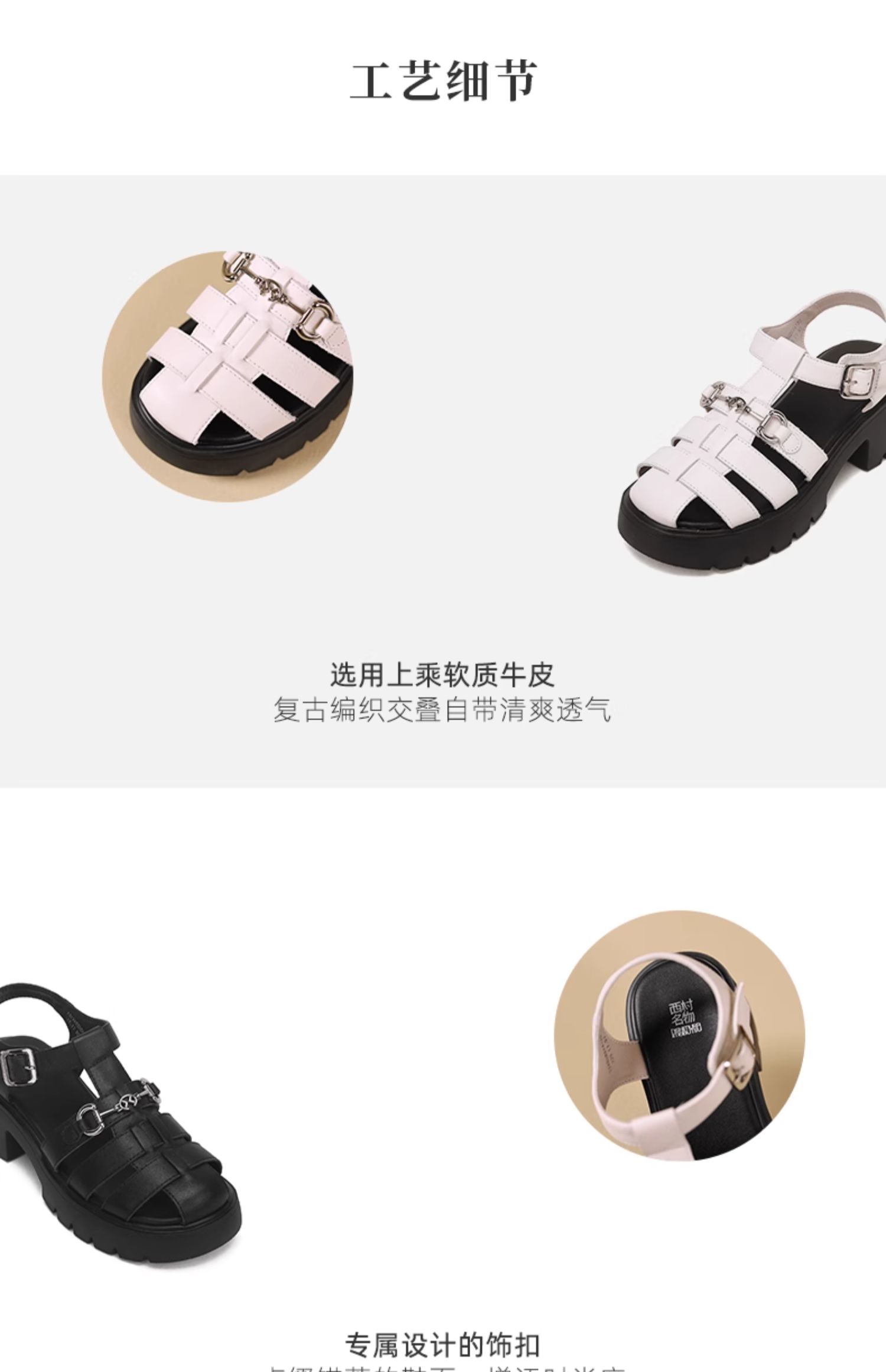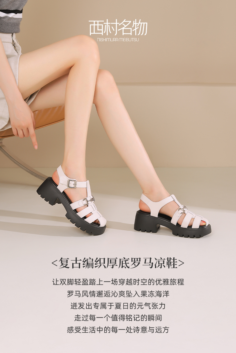 西村名物2024新品真皮经典休闲复古编织厚底高跟罗马凉鞋夏季外穿T24BG20441