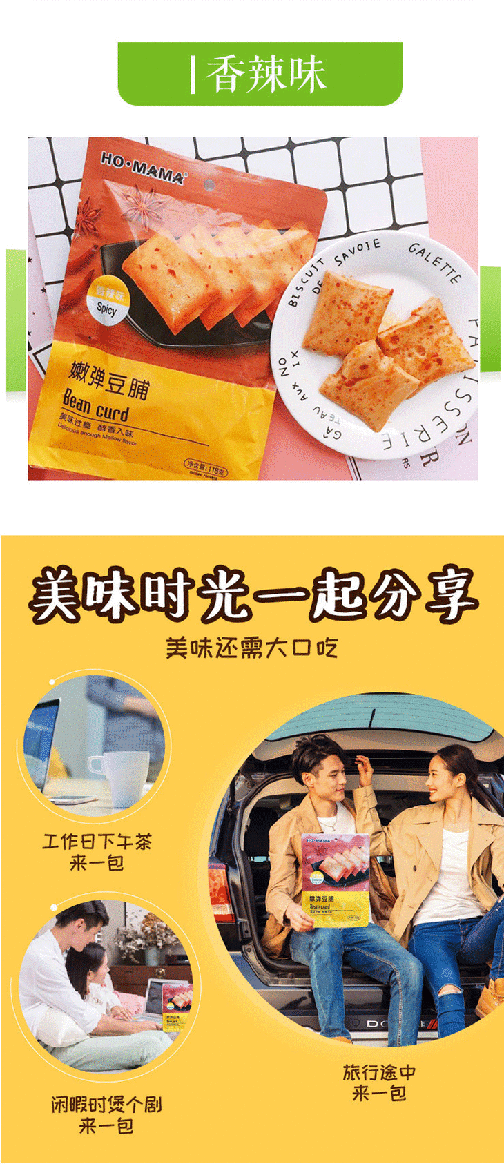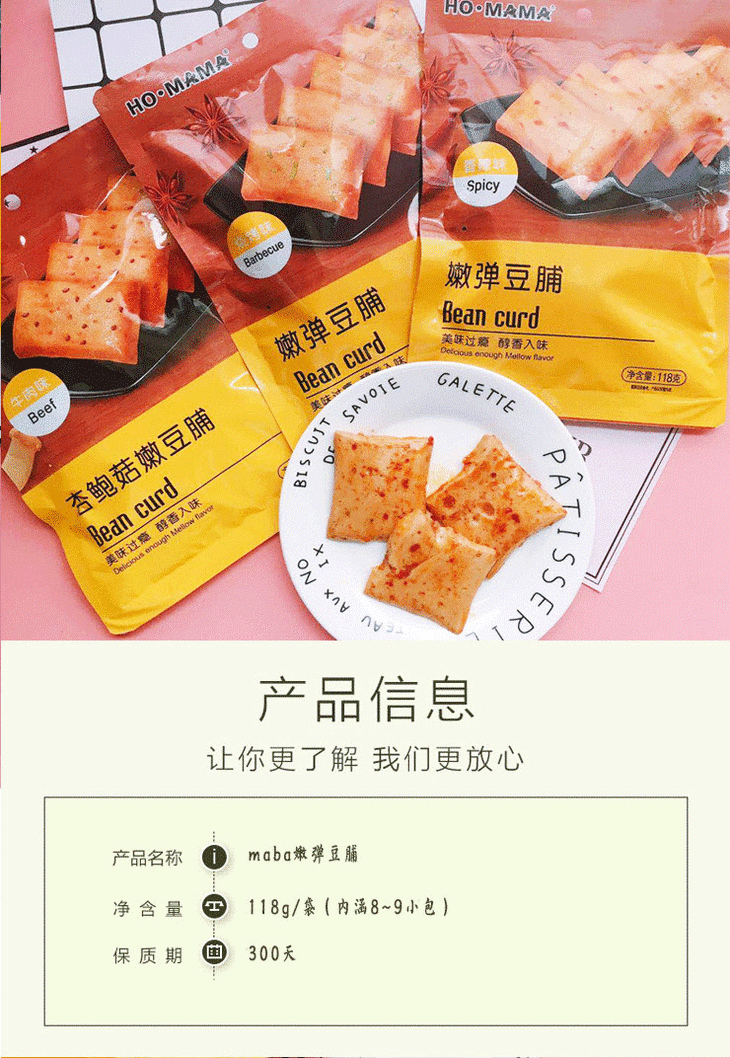HO.MAMA嫩弹豆脯118g 多口味 Bean curd 豆干 豆皮 口味:香辣味 杏鲍菇(牛肉味)