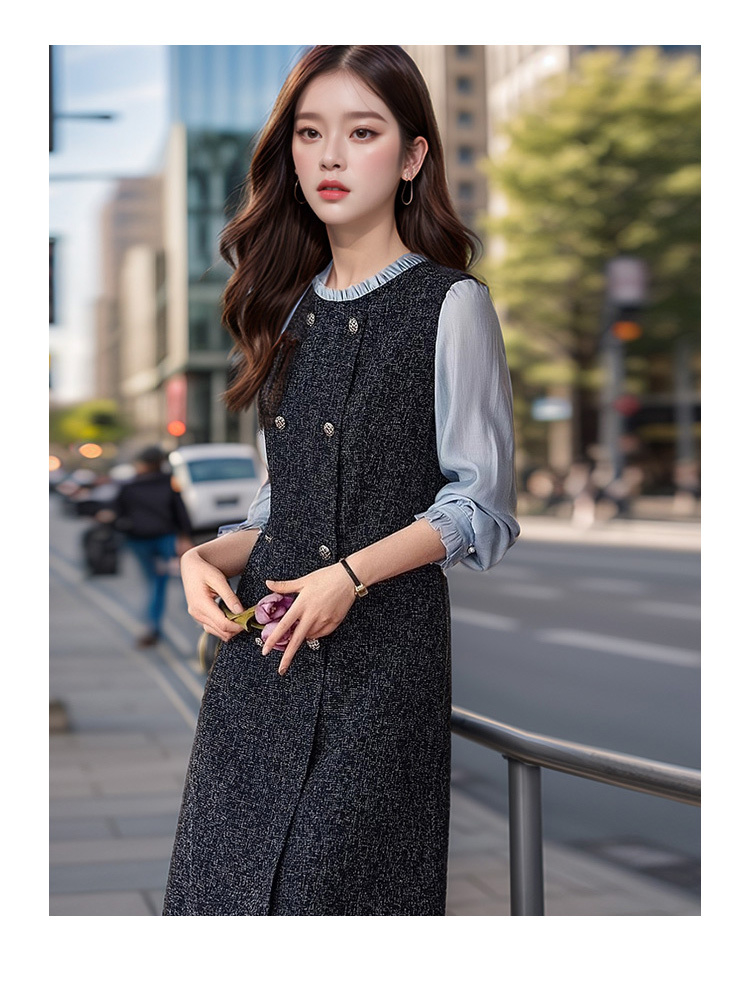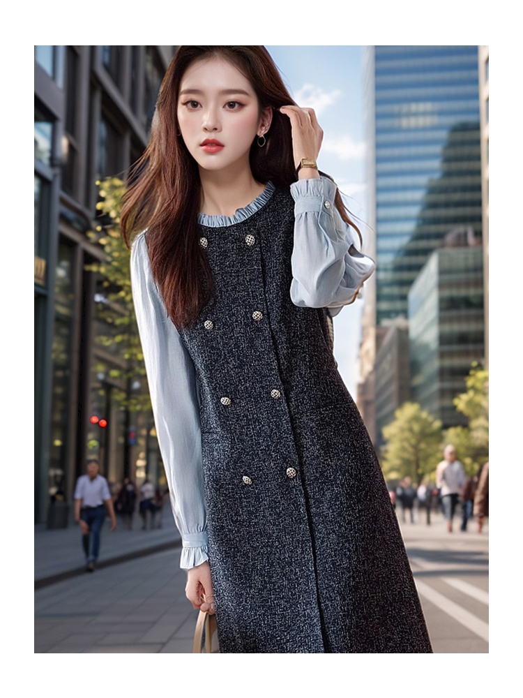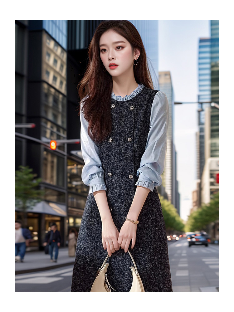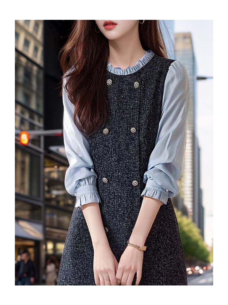 奢姿2024年秋季新款大码女装拼接减龄裙子胖妹妹立领假两件连衣裙9943855395
