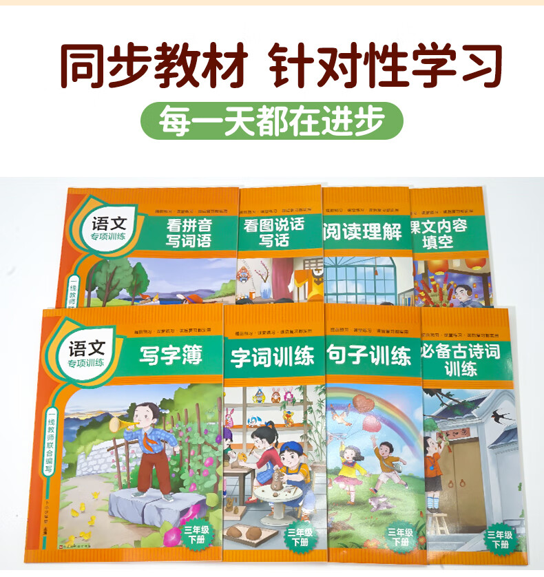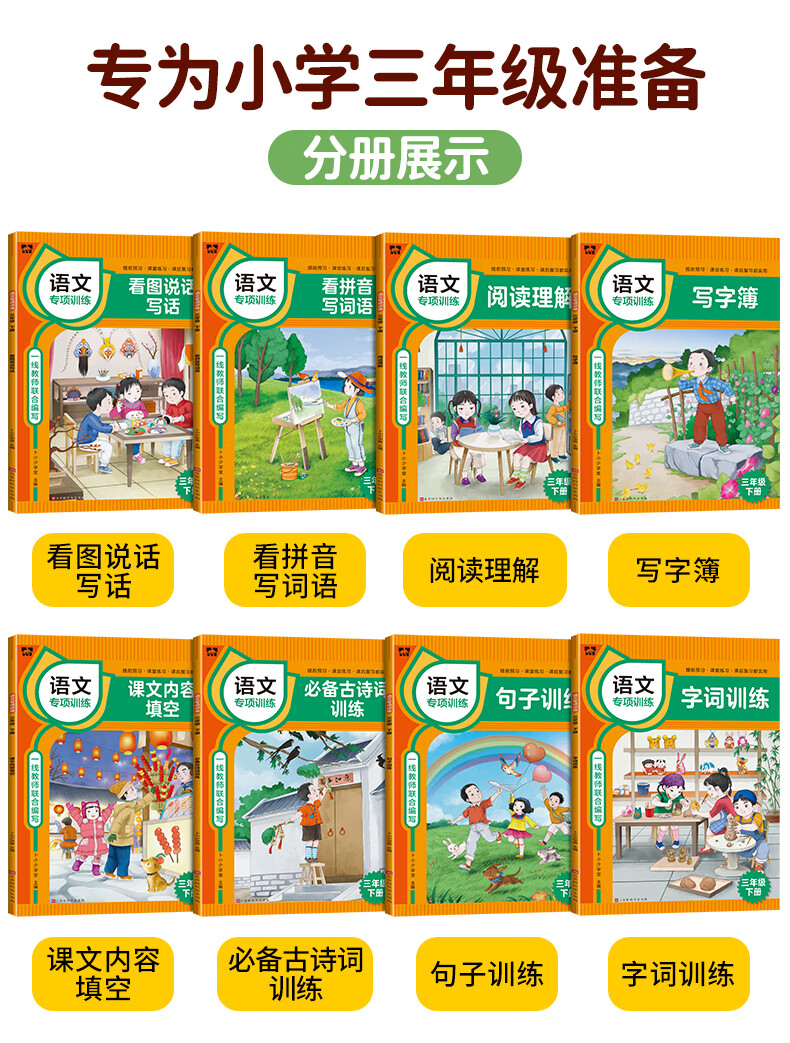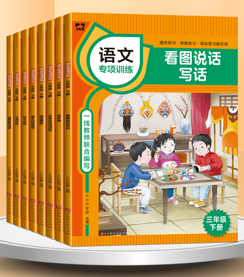 (仓发) 三年级下册语文同步专项训练 (全套8册)必备古诗词+看图说话写话+看拼音写词语+内容填空等/北京时代华文书局/卜小少学堂/9787569938517