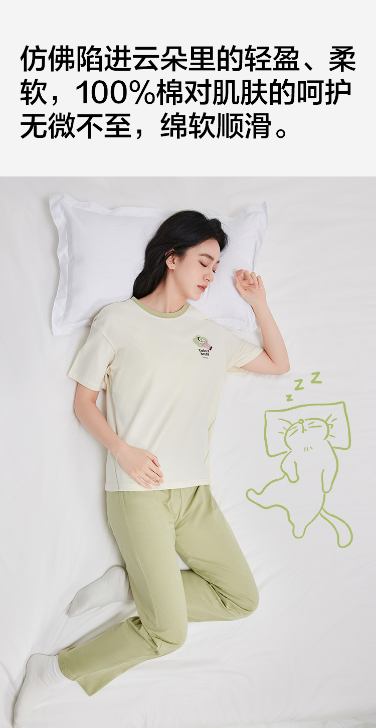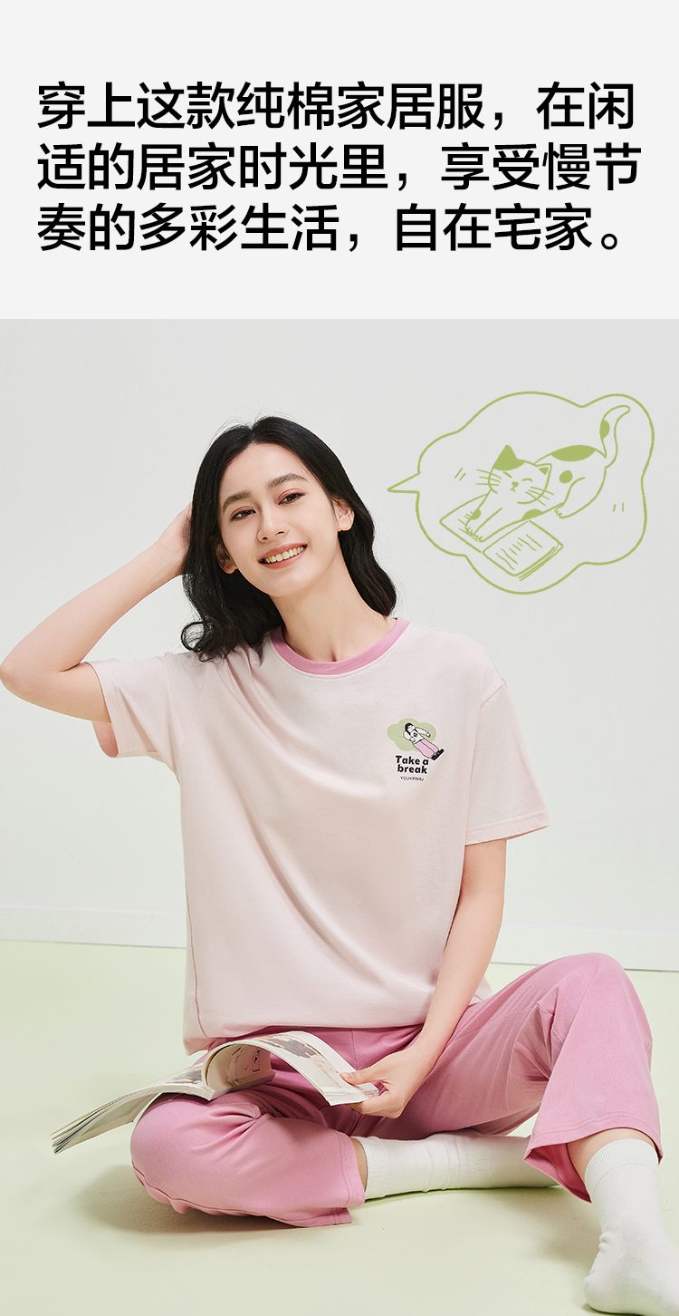【清仓捡漏】【5A抑菌 100%棉】【M-2XL】【有棵树】女士短袖长裤纯棉家居服套装