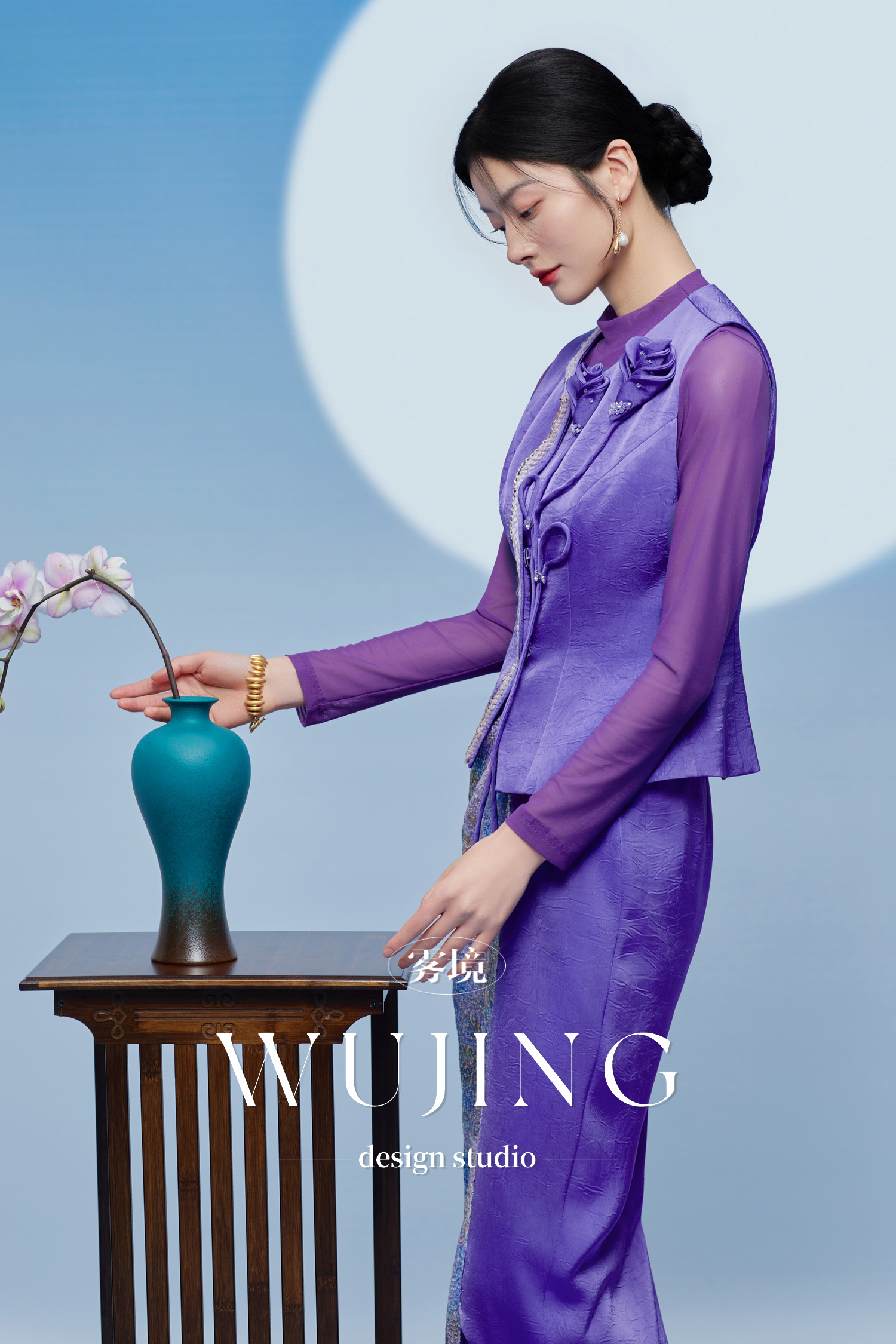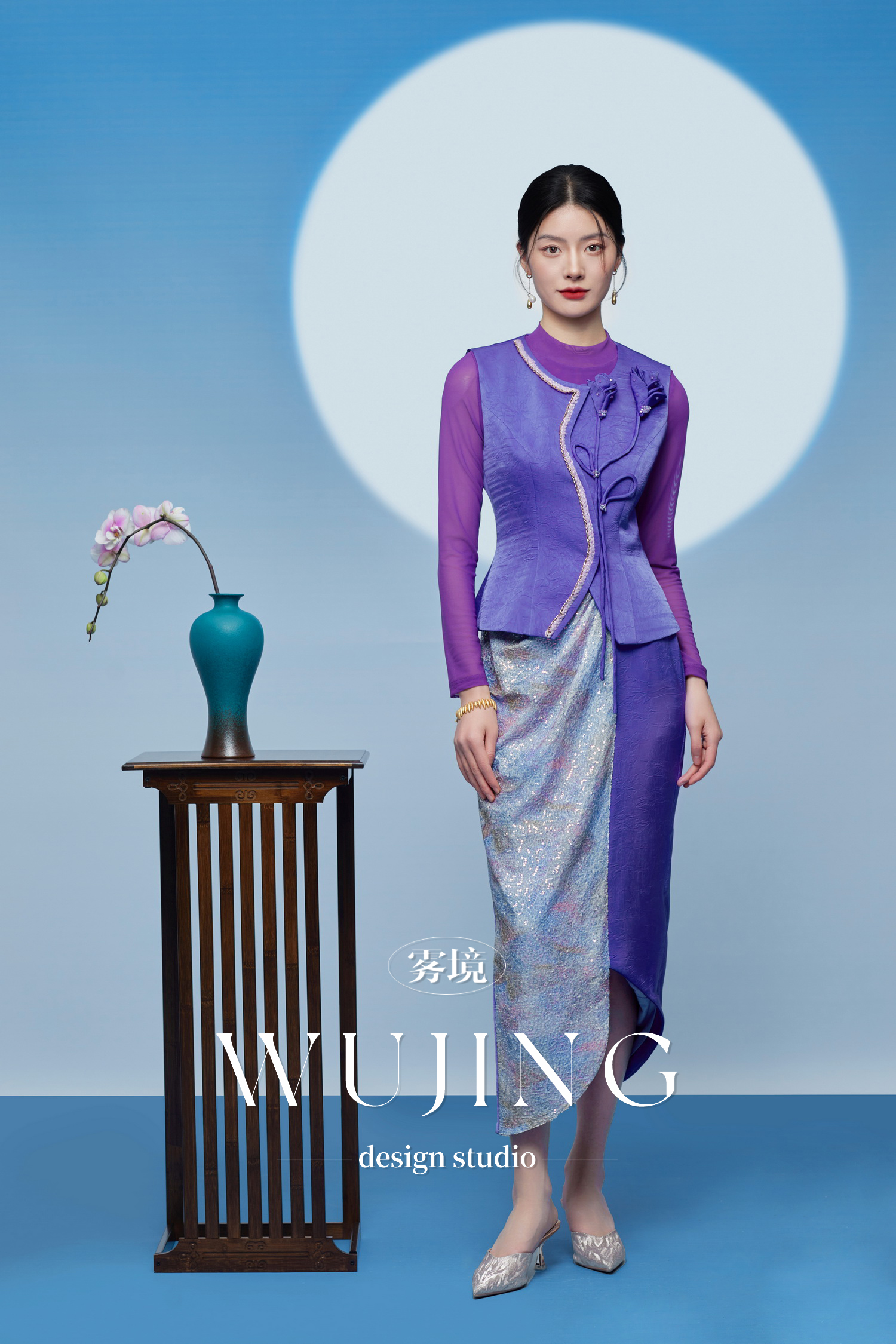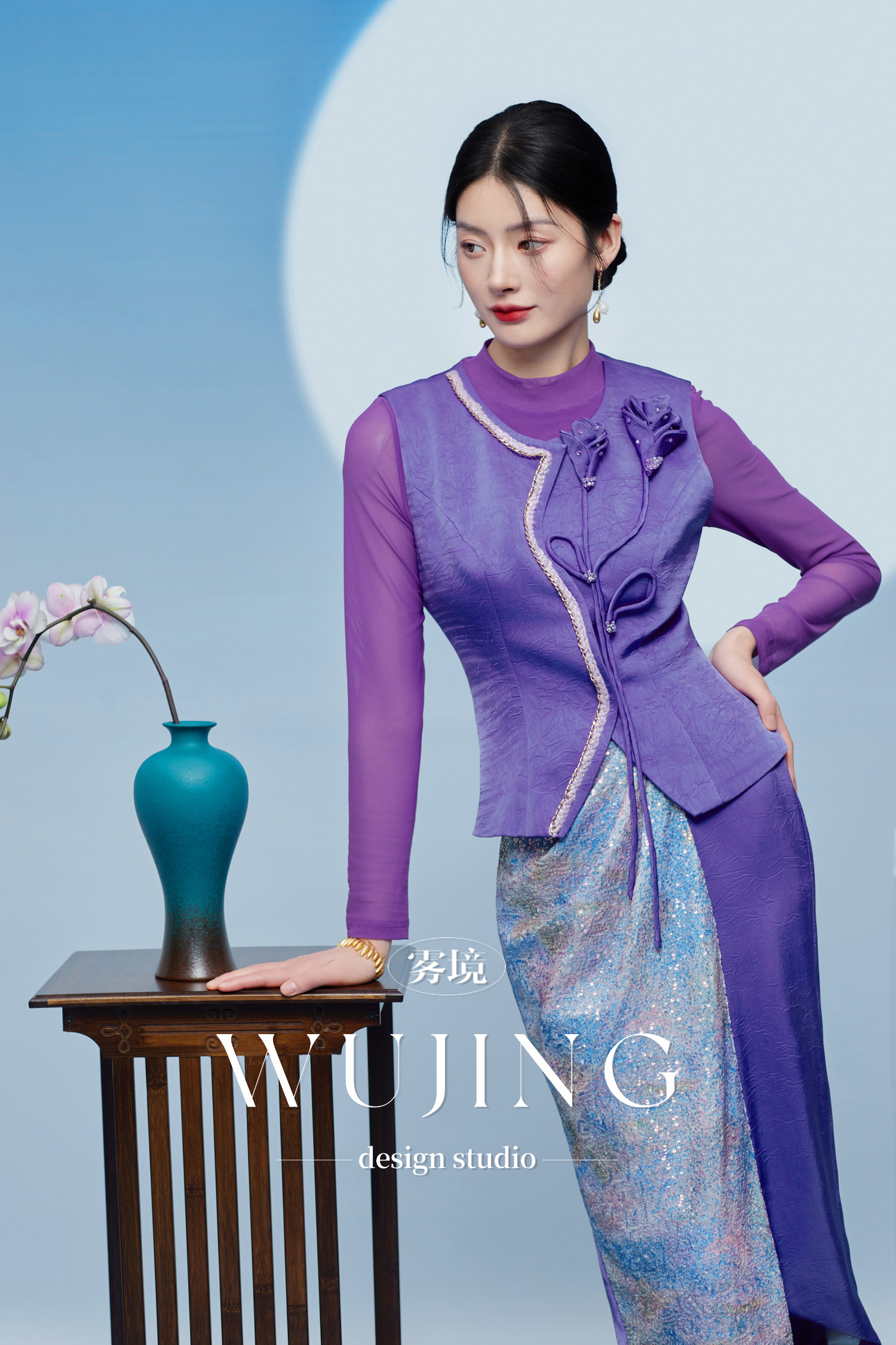 3205264 紫金梦雨 进口纹理醋酸缎马甲 雾境