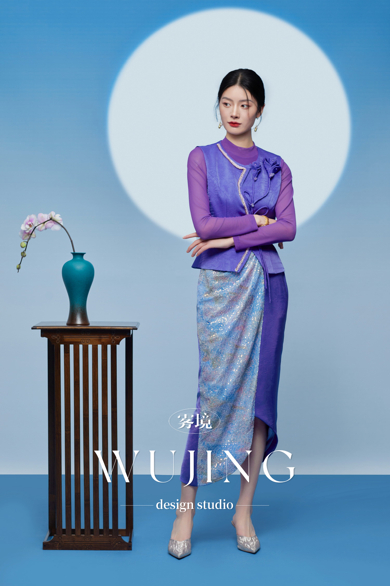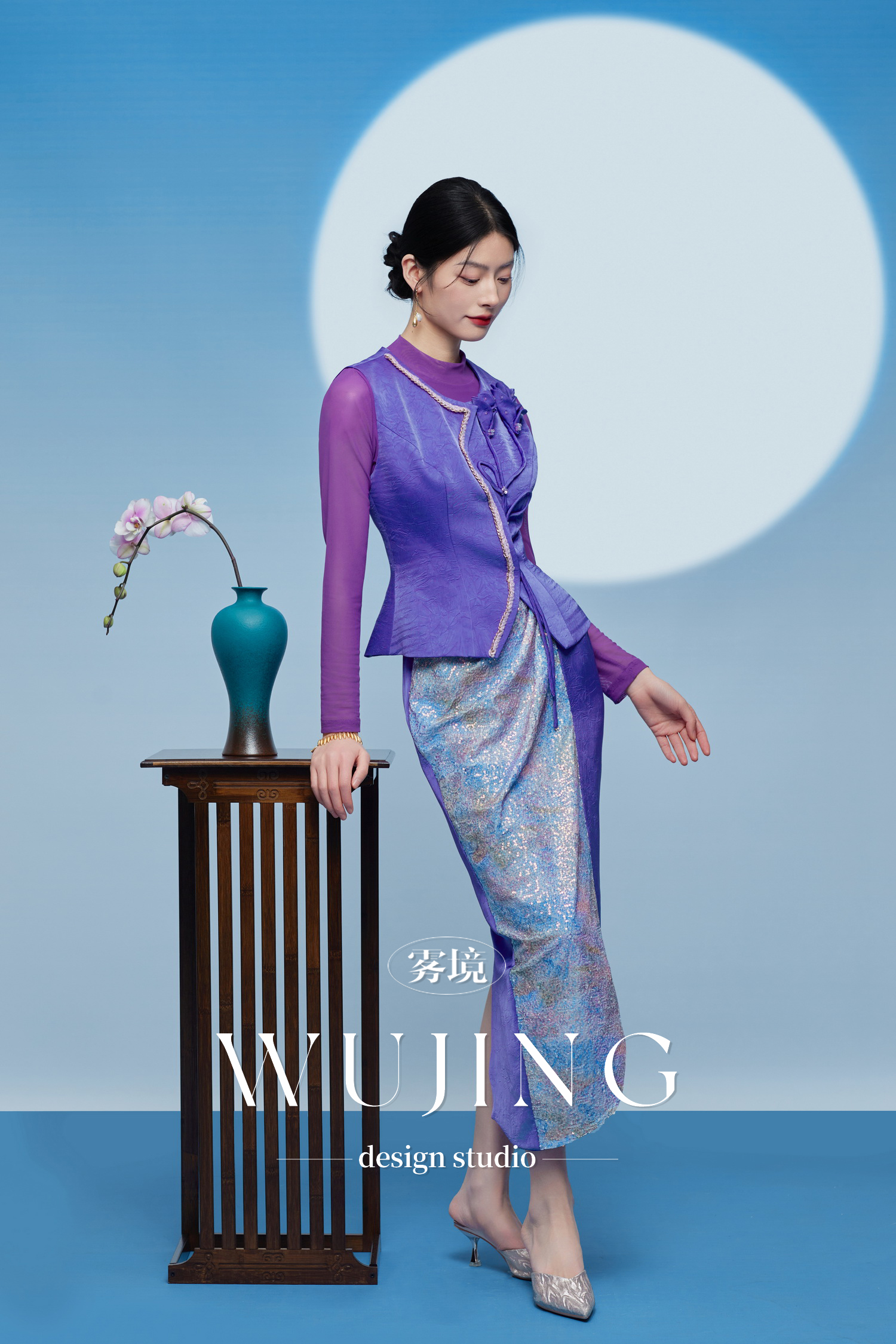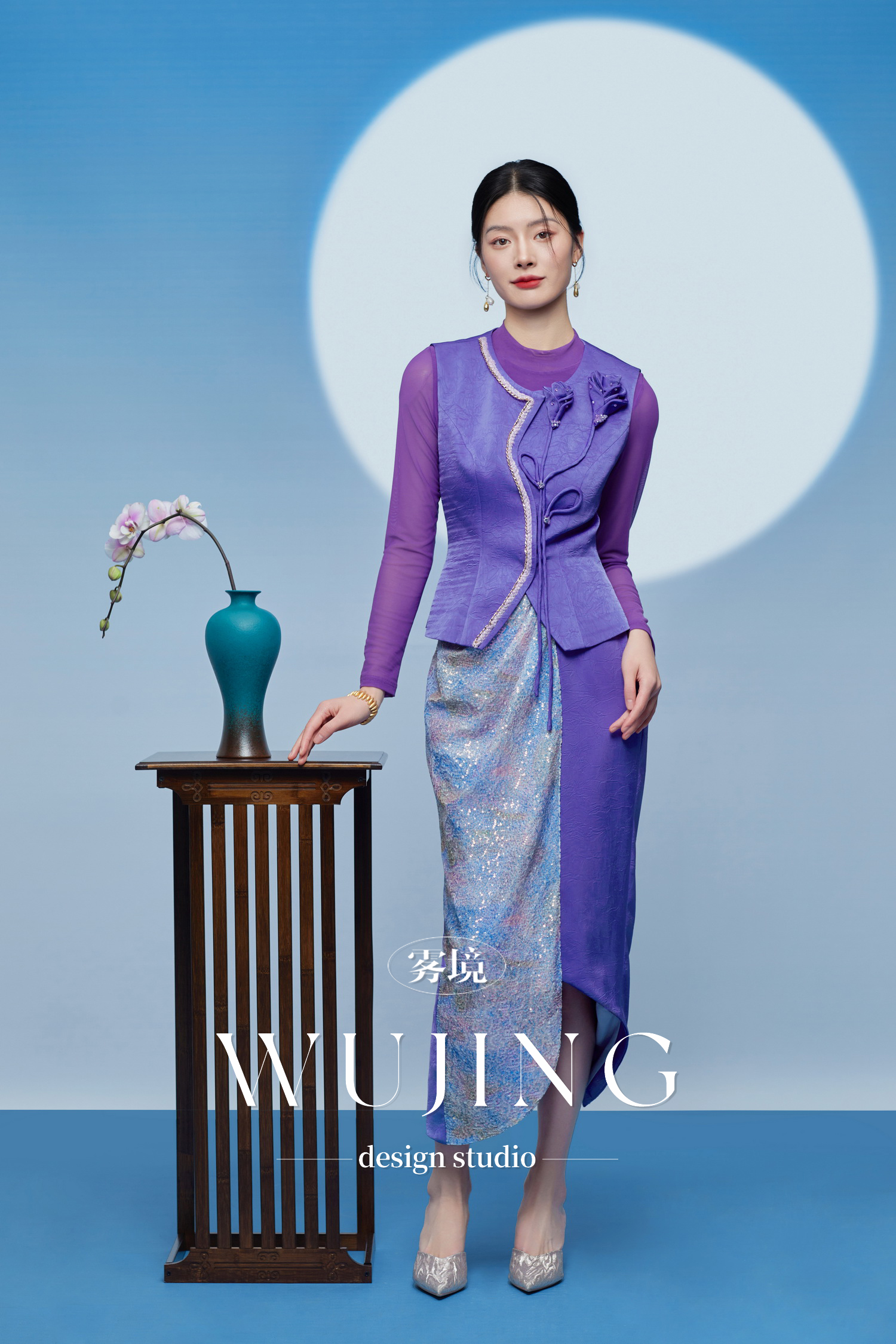 3205264 紫金梦雨 进口纹理醋酸缎马甲 雾境