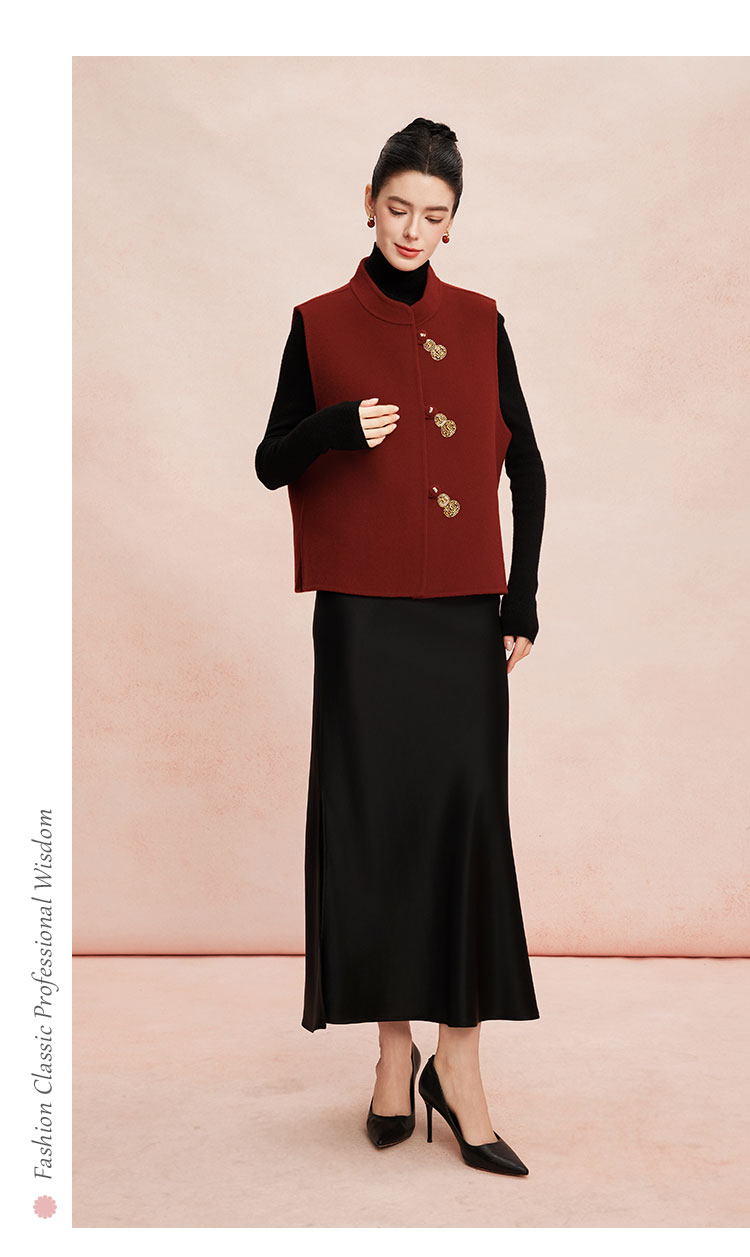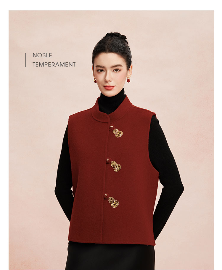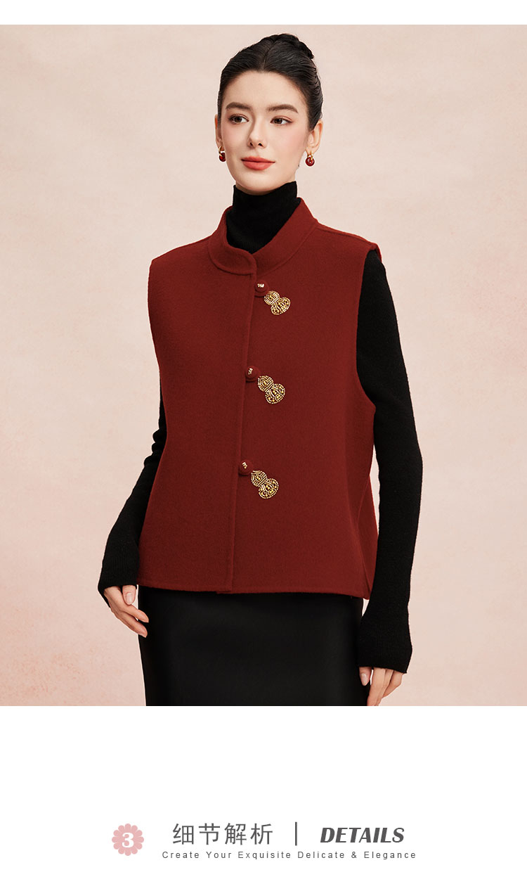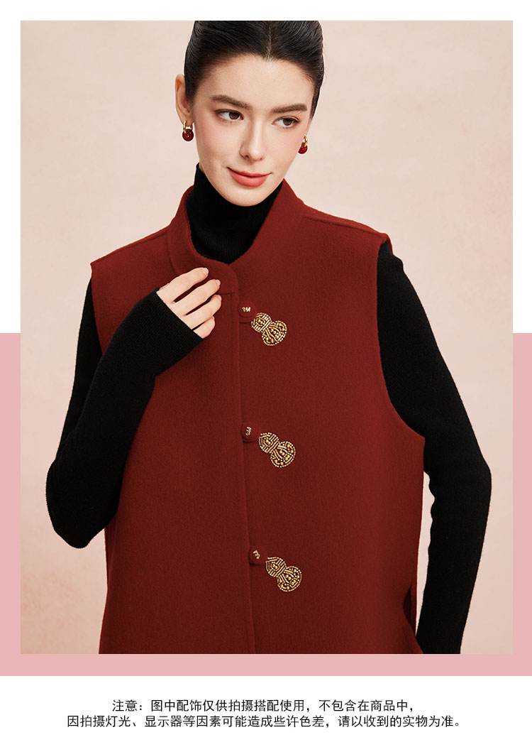 RE409斯尔丽26新款含山羊绒传统手工钉绣新中式双面手工马夹