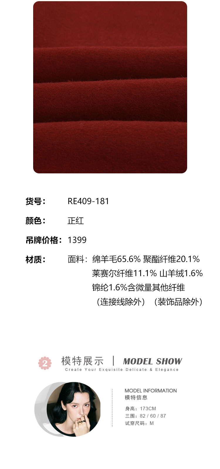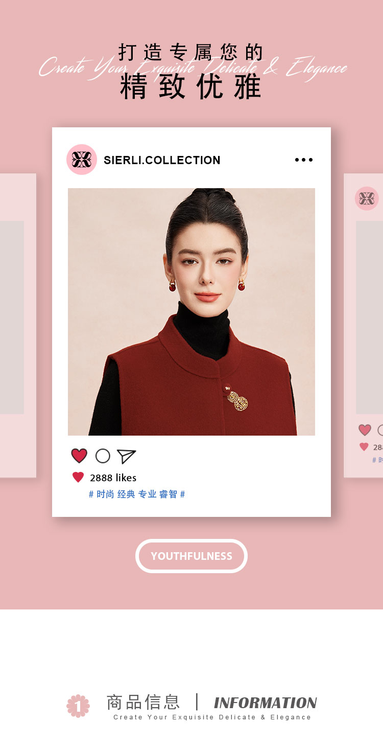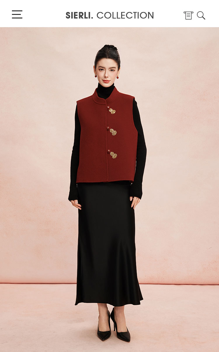 RE409斯尔丽26新款含山羊绒传统手工钉绣新中式双面手工马夹