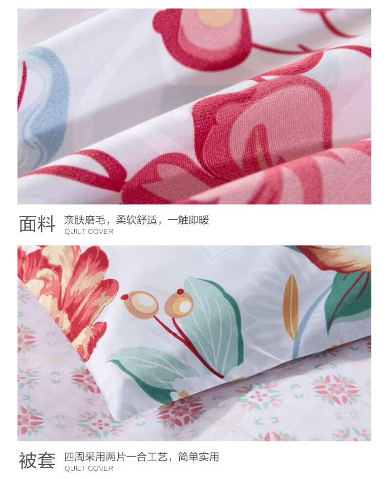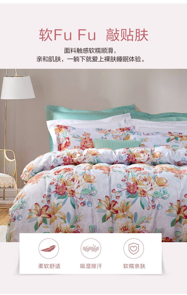 【2.0*2.2】富安娜(FUANNA)床上四件套秋冬磨毛套件保暖床品四件套-芳华初韵XHR