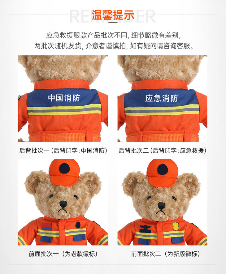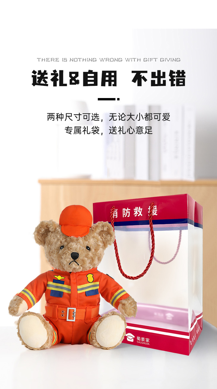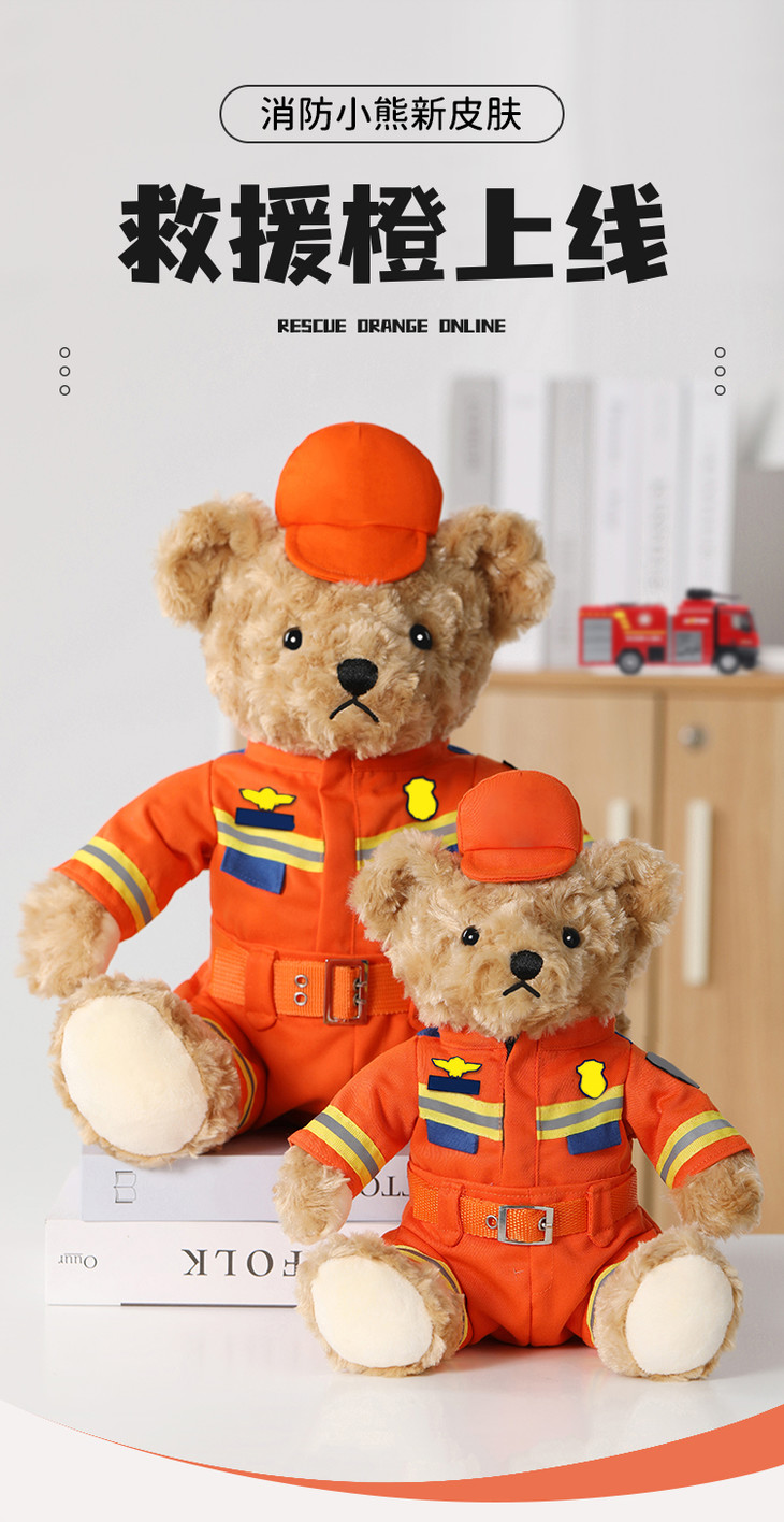 【坐姿消防熊辉辉】毛绒小熊公仔玩具服装可脱卸毛绒玩偶送礼礼品礼物