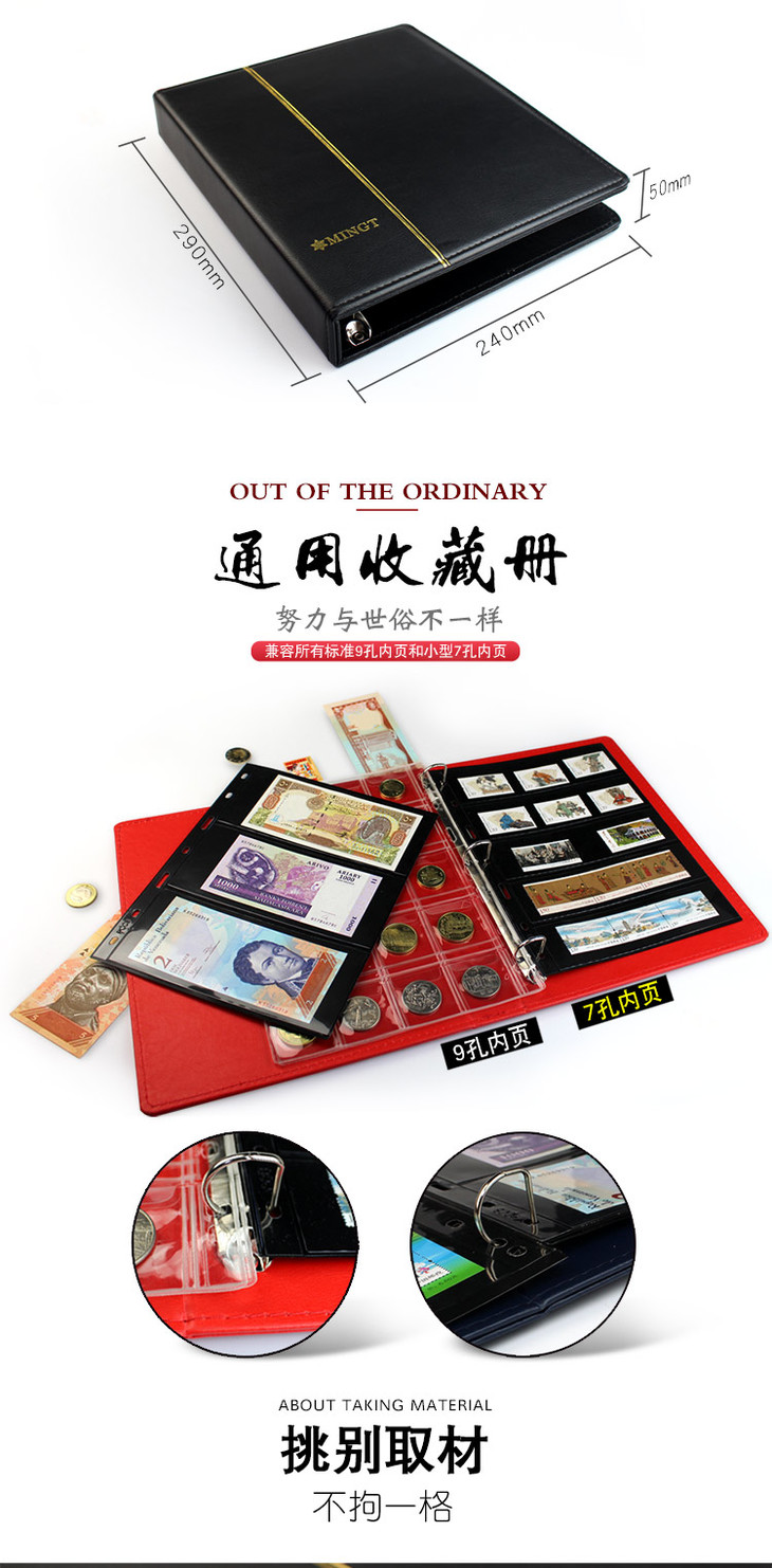 9孔7孔内页皮革活页通用册(钱币册硬币册纸币册邮票册)