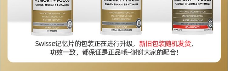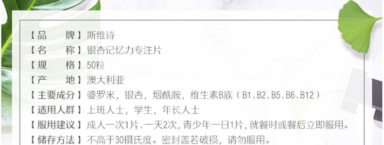 【保税】澳洲 Swisse 银杏记忆力专注片 50片 解压抗疲劳 维持能量 天然银杏叶萃取 提高记忆力