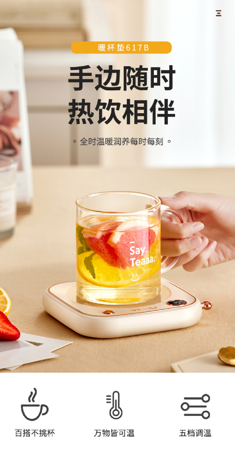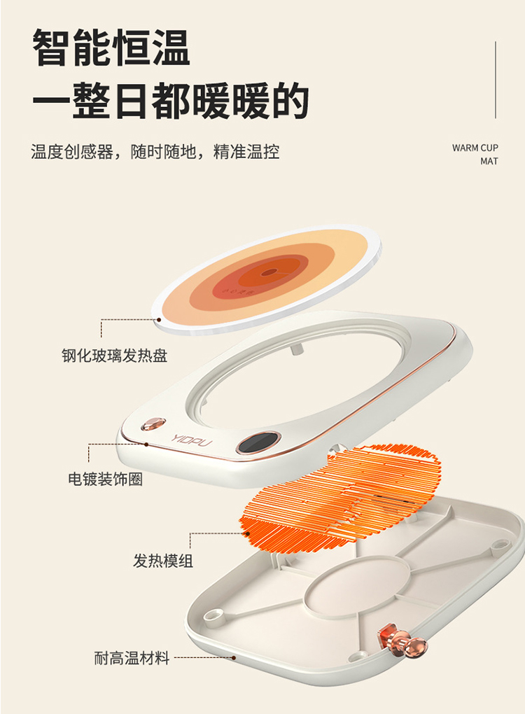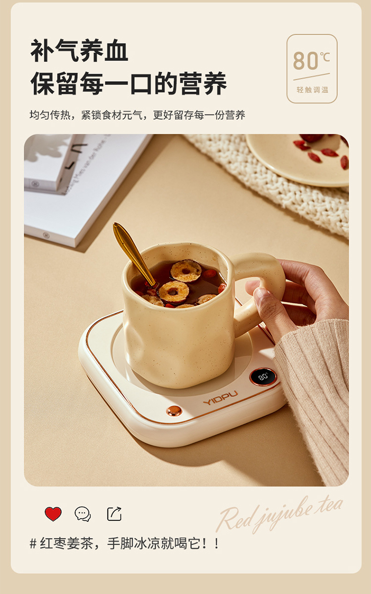 【80℃暖杯垫】秋冬加热杯垫恒温暖暖杯55-80度 热牛奶加热底座保温水杯暖杯垫