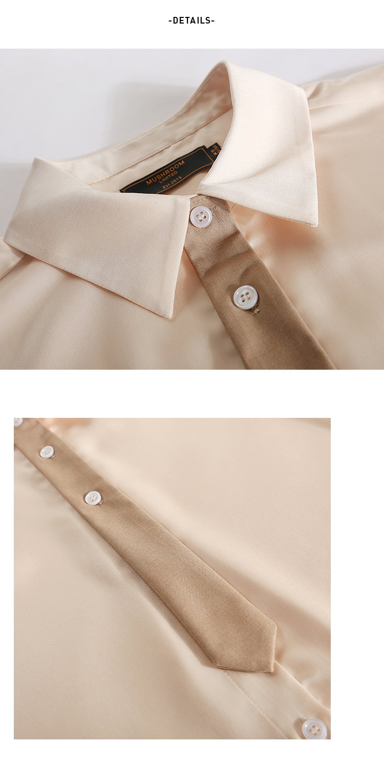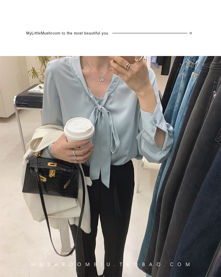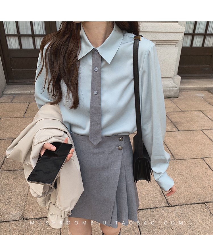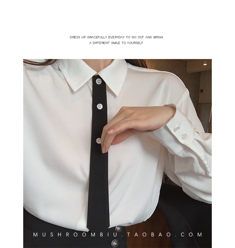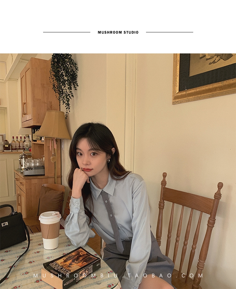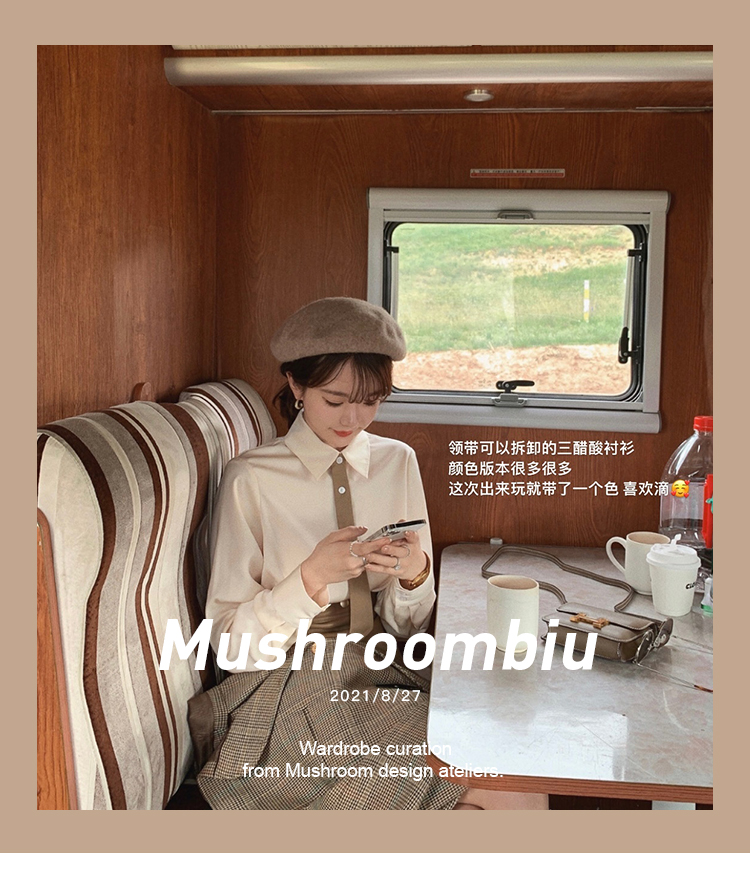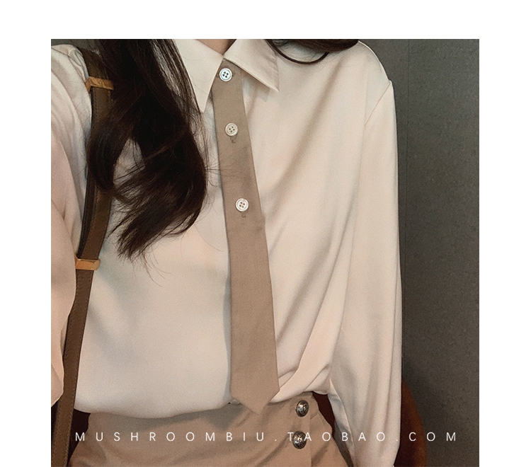 金蘑菇菇【 三醋酸衬衫】设计感小众长袖领带衬衣韩版百搭上衣