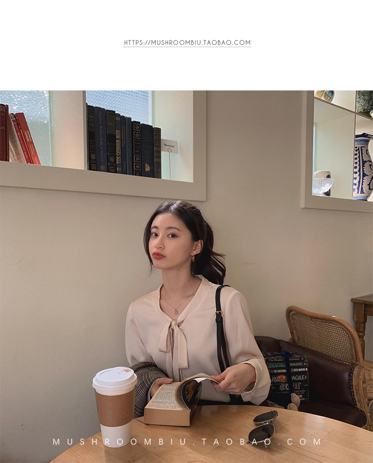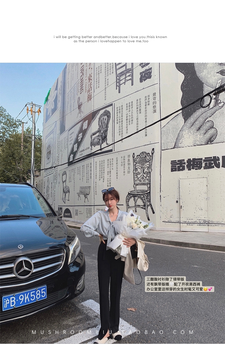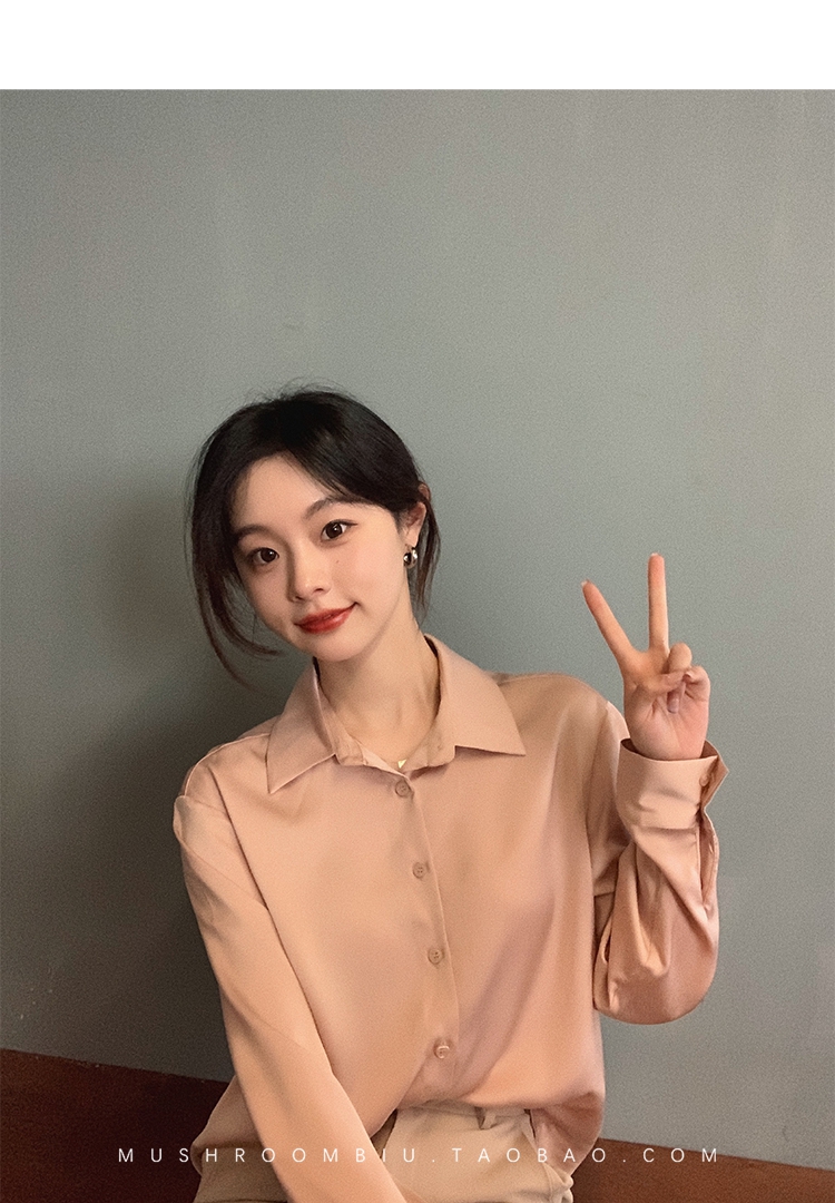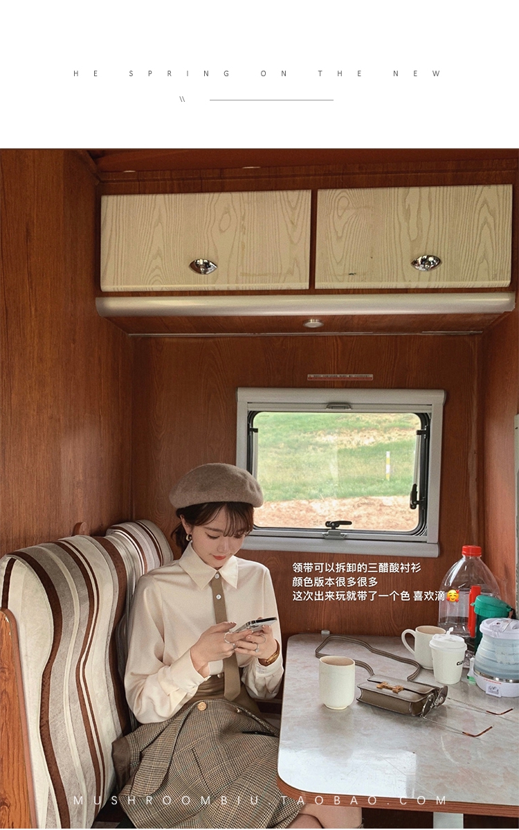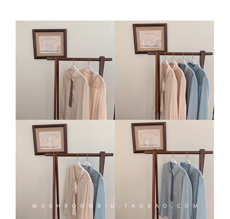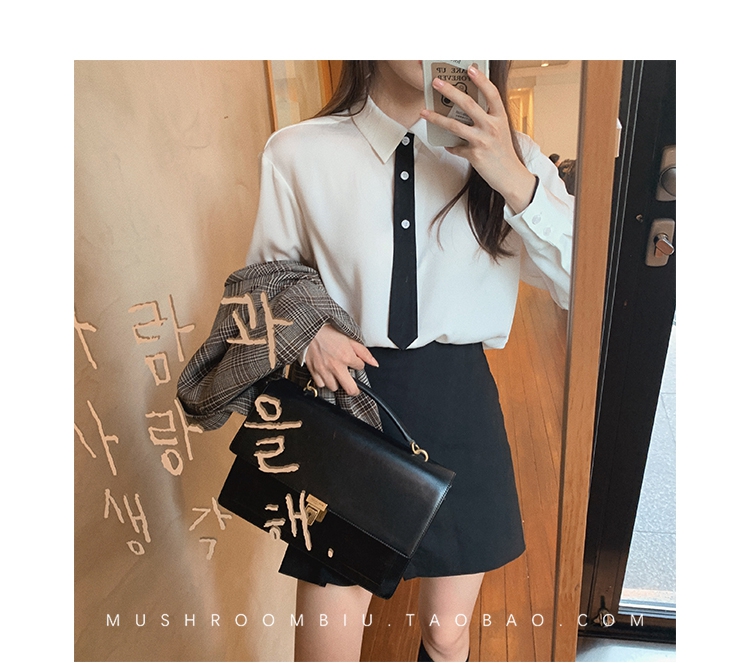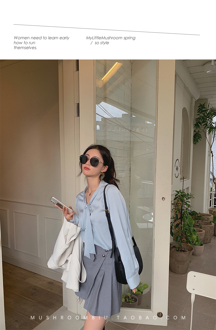金蘑菇菇【 三醋酸衬衫】设计感小众长袖领带衬衣韩版百搭上衣