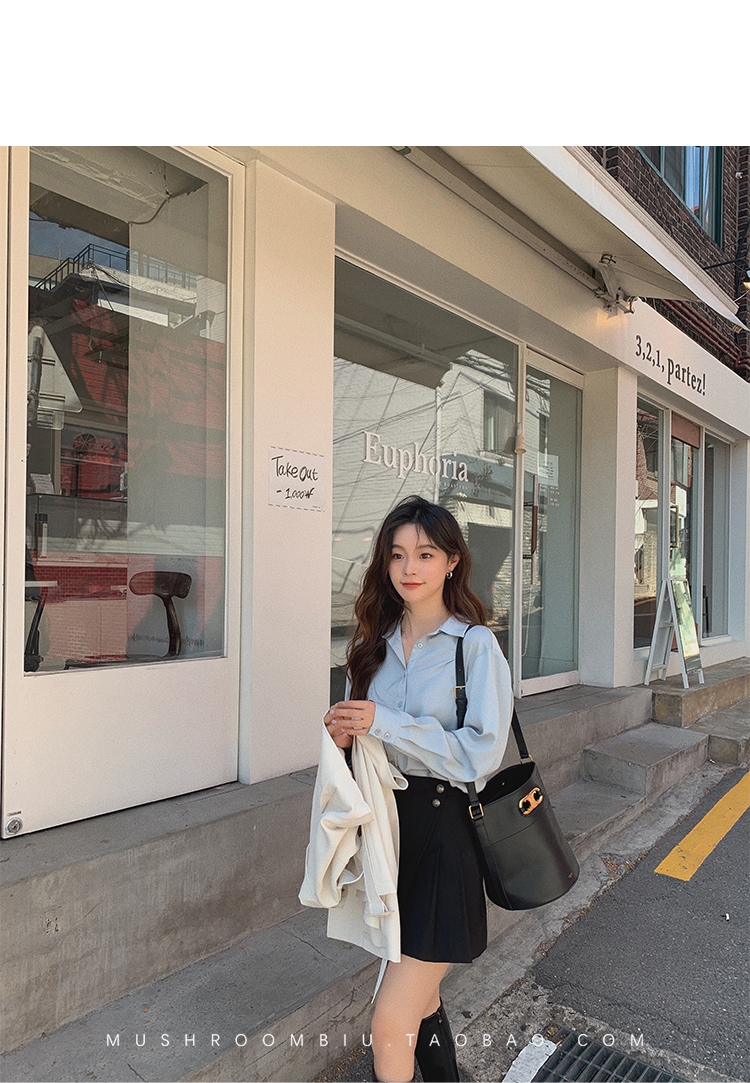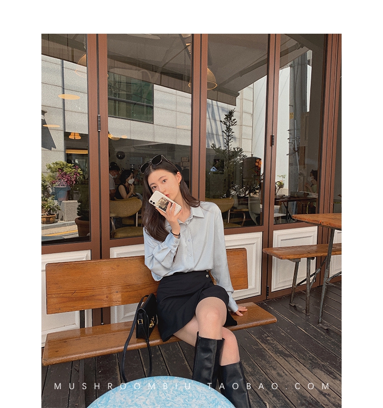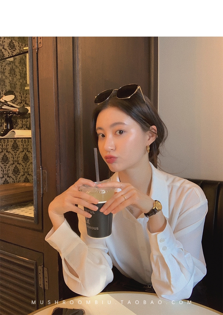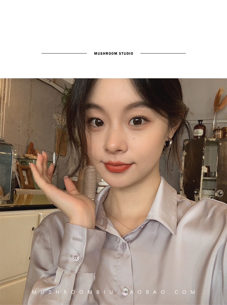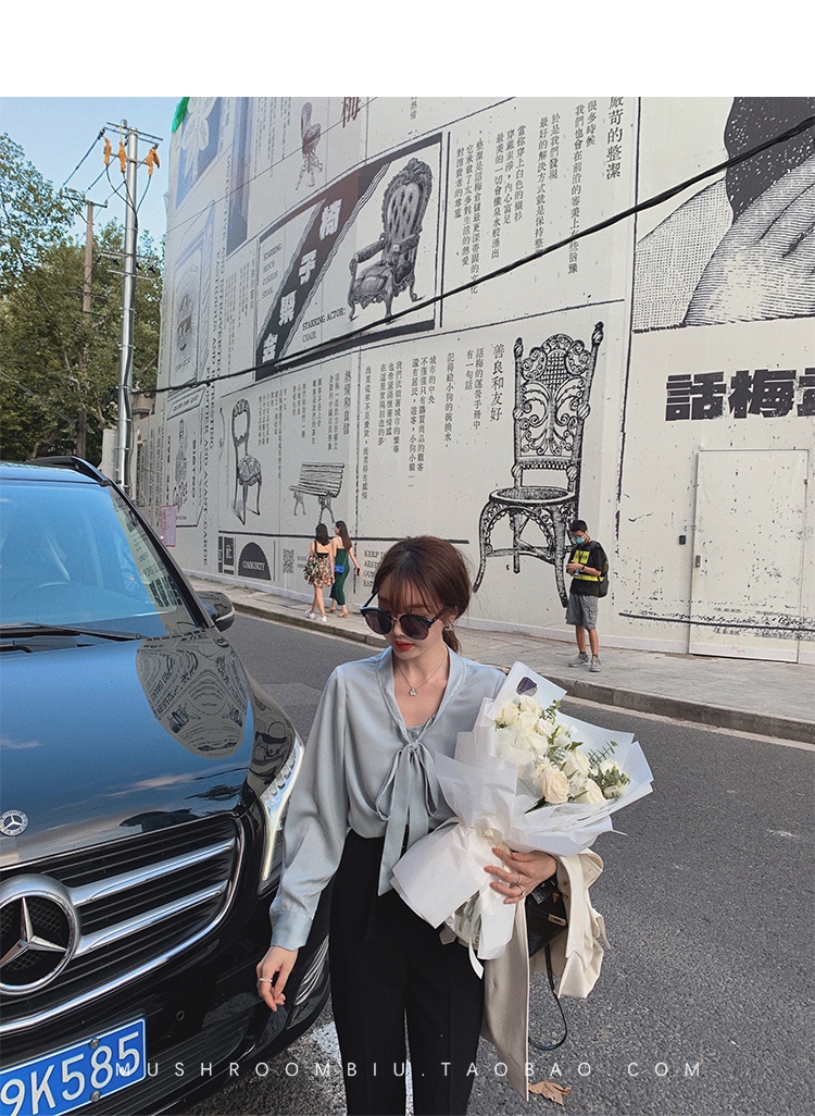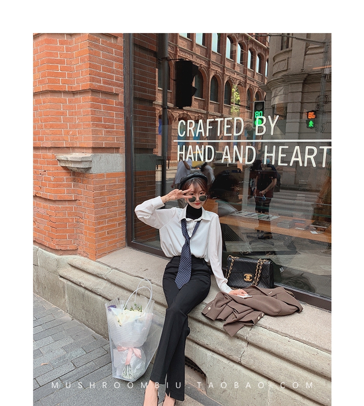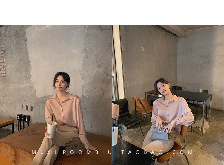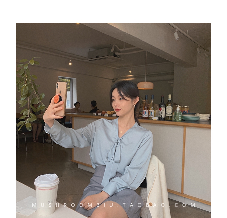 金蘑菇菇【 三醋酸衬衫】设计感小众长袖领带衬衣韩版百搭上衣