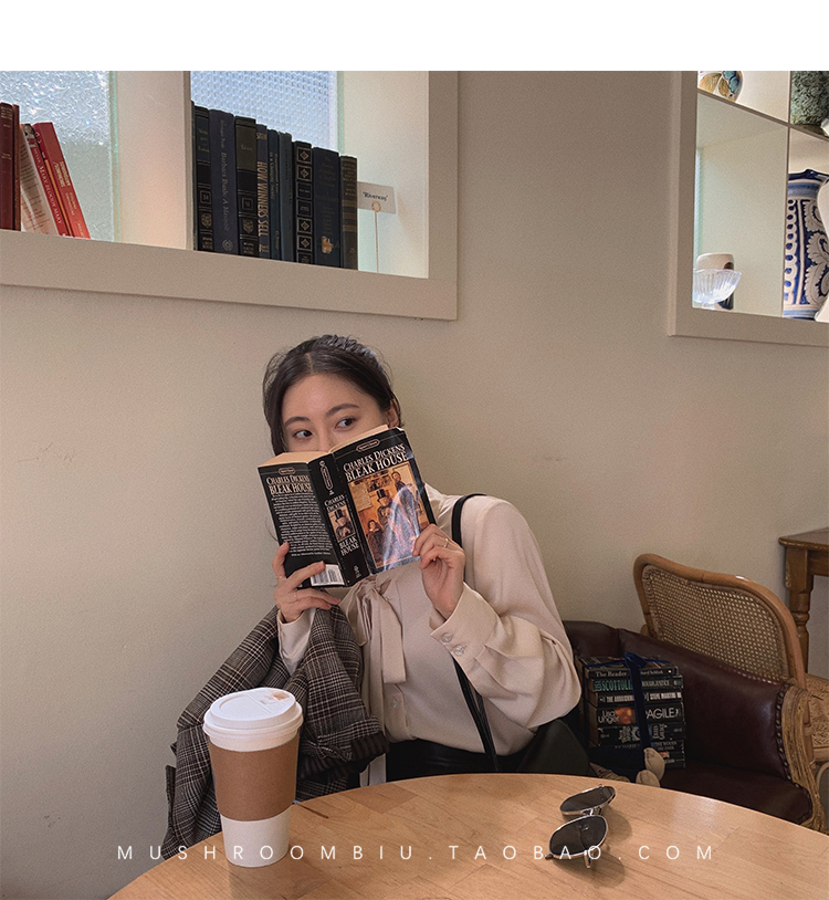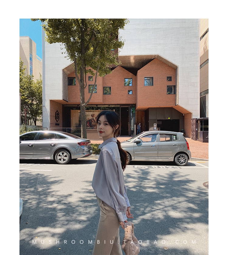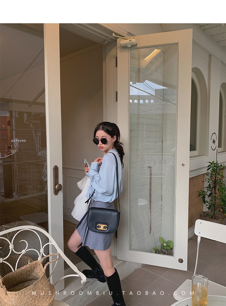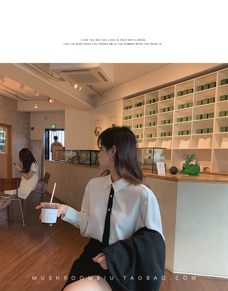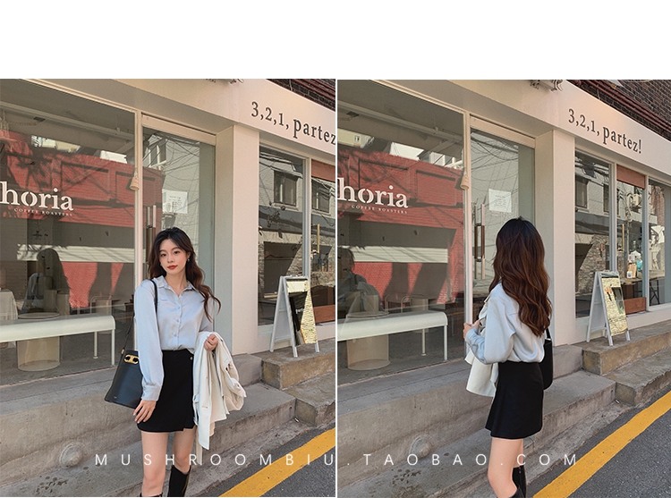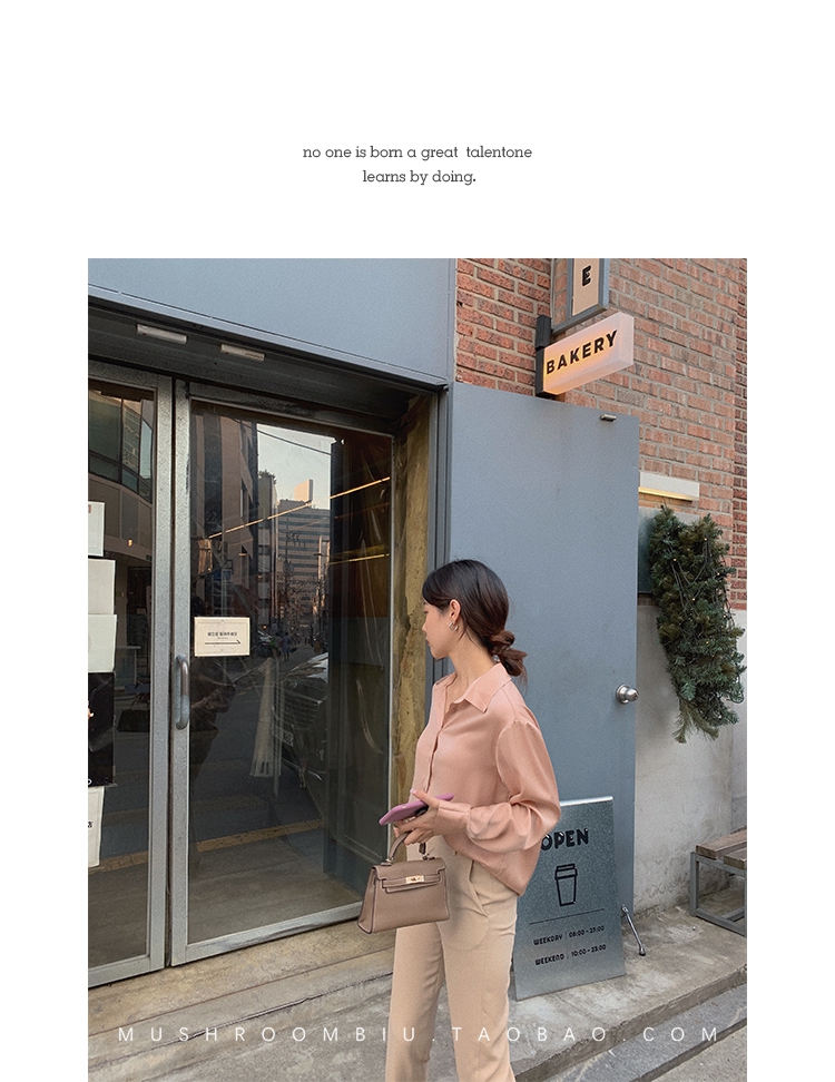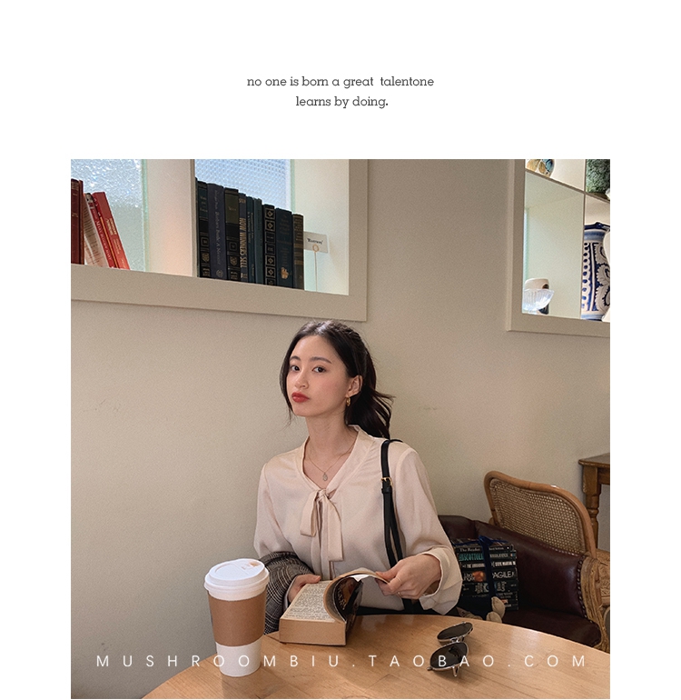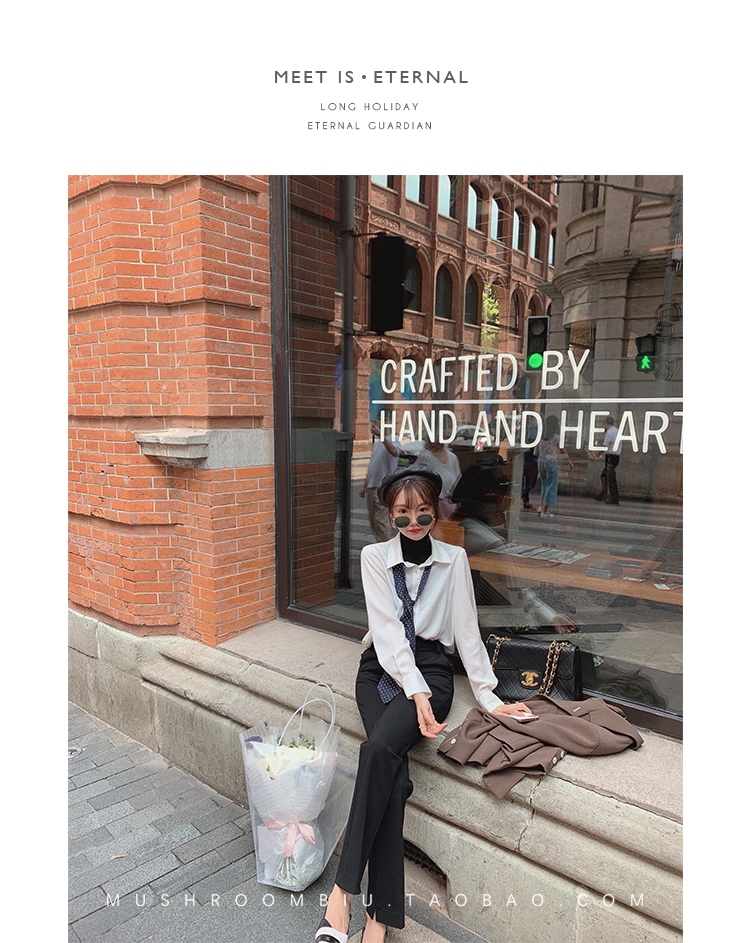 金蘑菇菇【 三醋酸衬衫】设计感小众长袖领带衬衣韩版百搭上衣