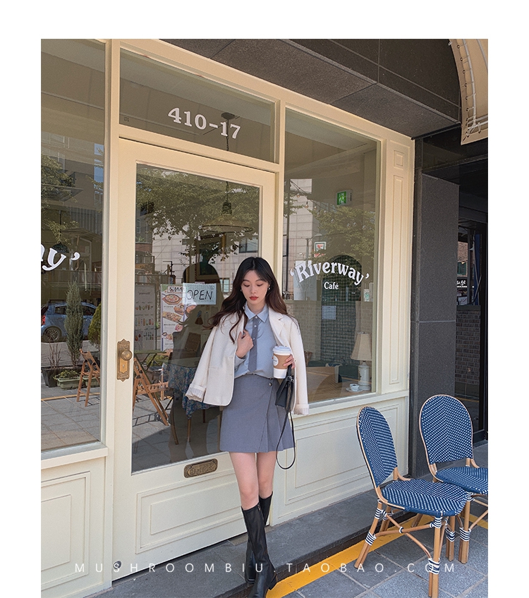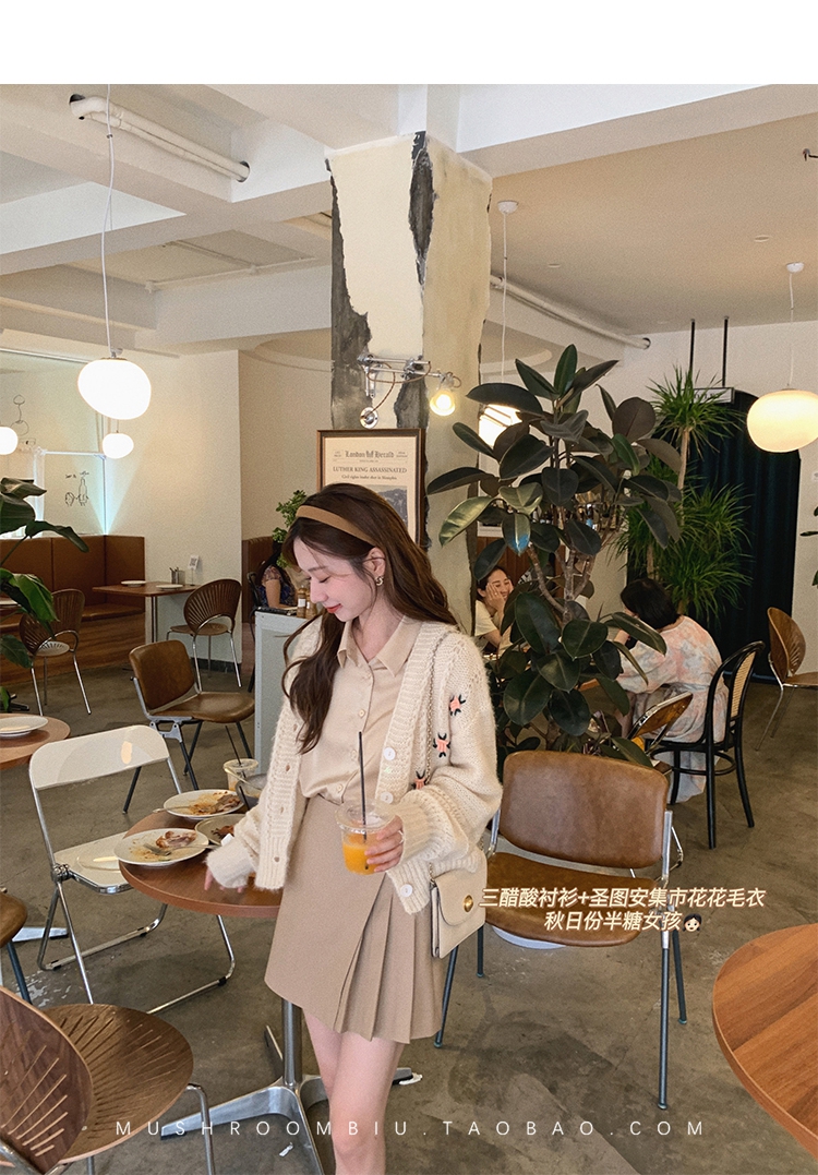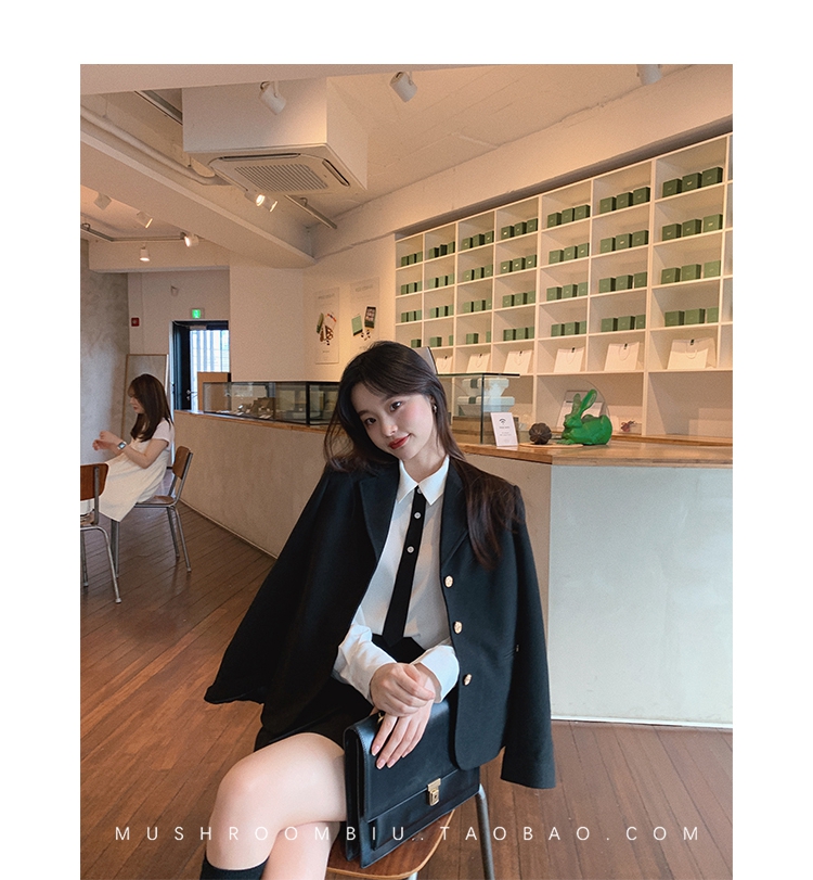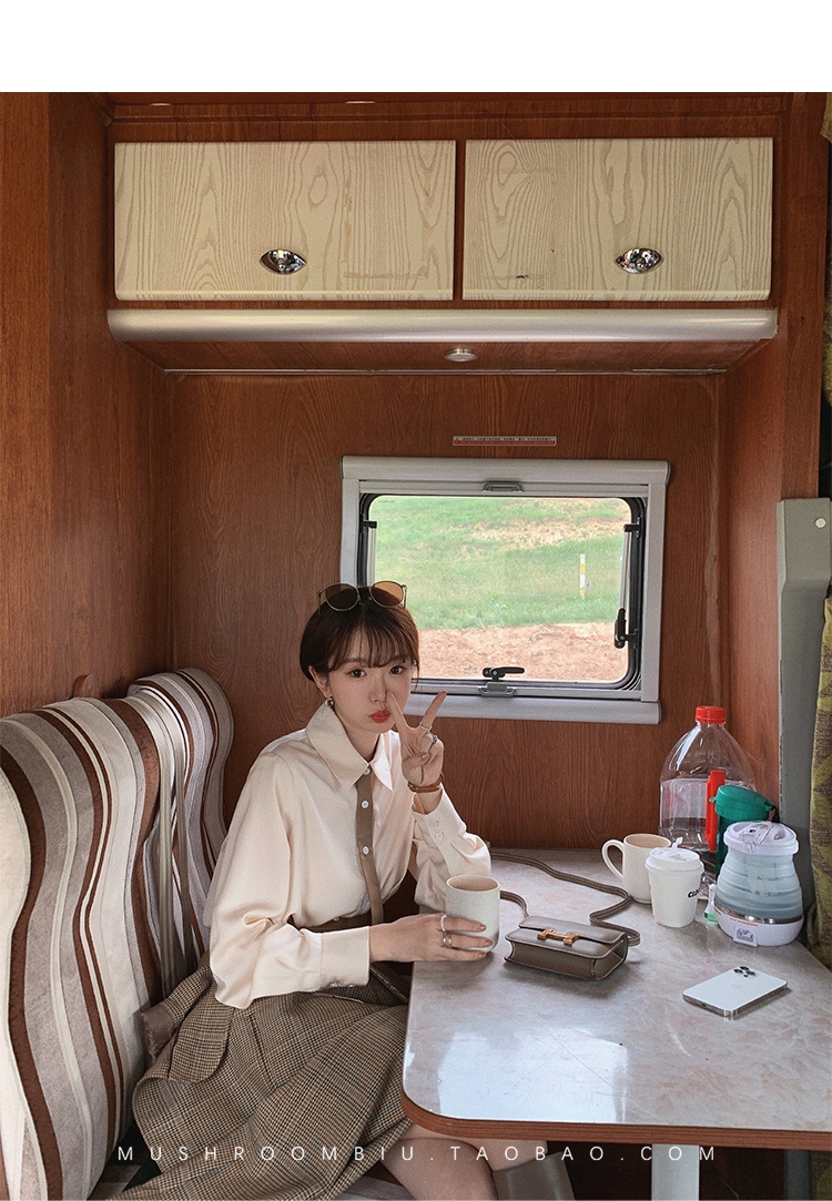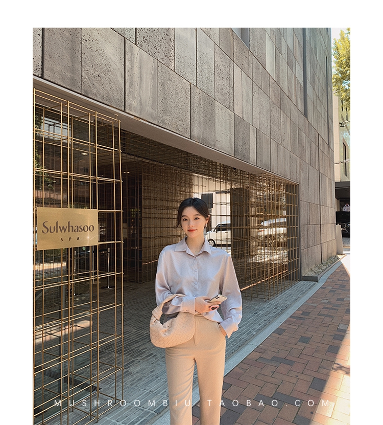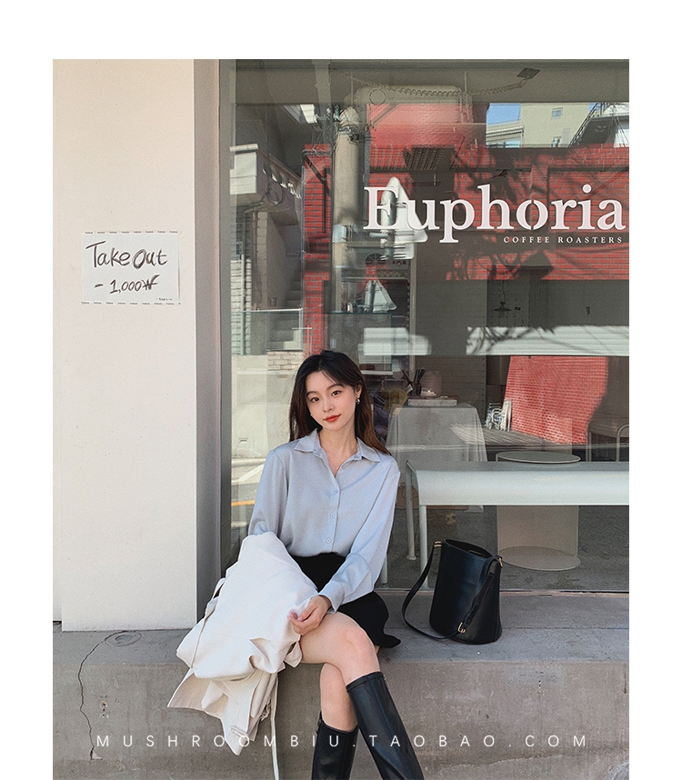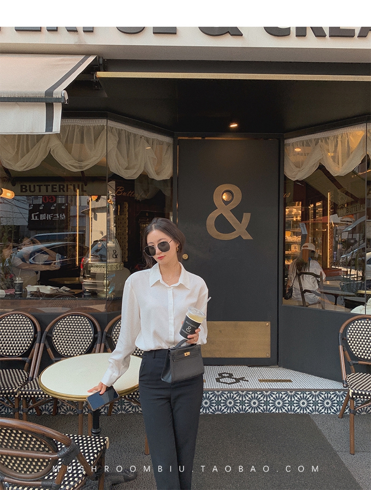 金蘑菇菇【 三醋酸衬衫】设计感小众长袖领带衬衣韩版百搭上衣