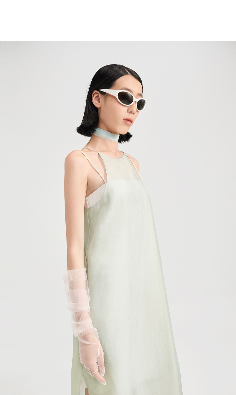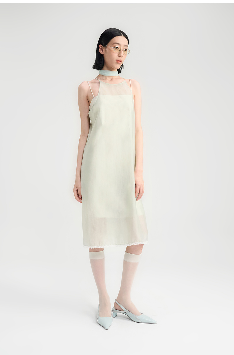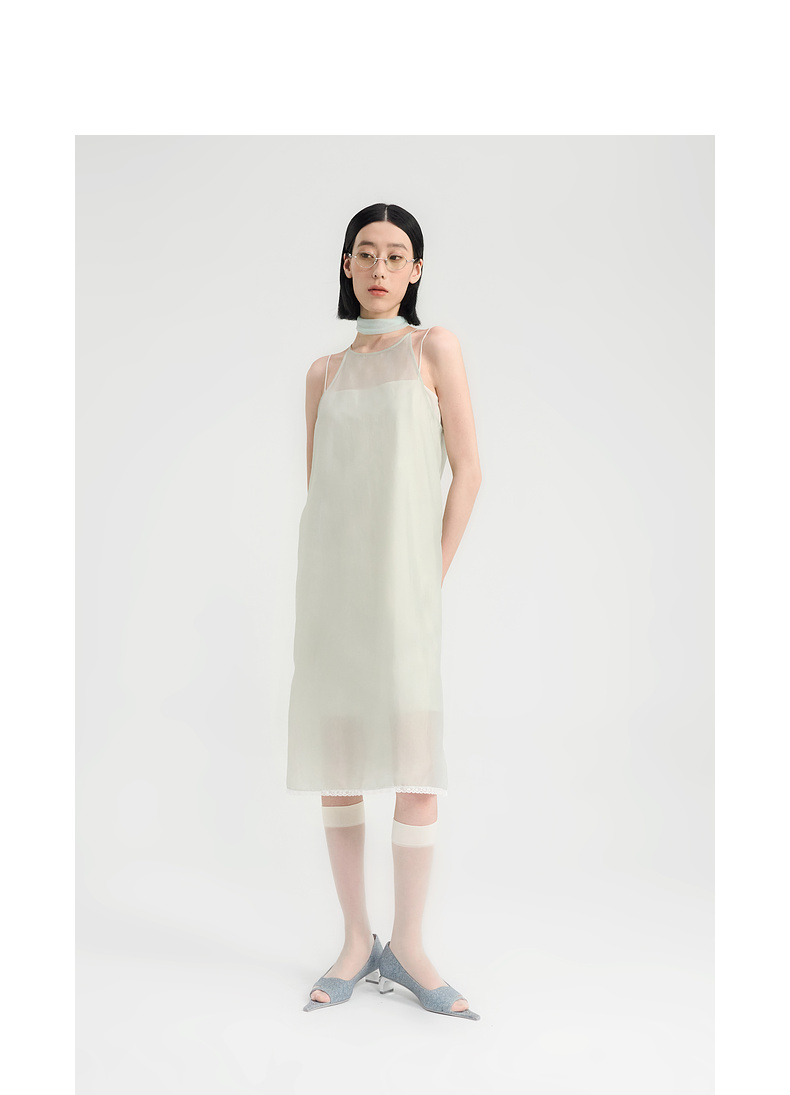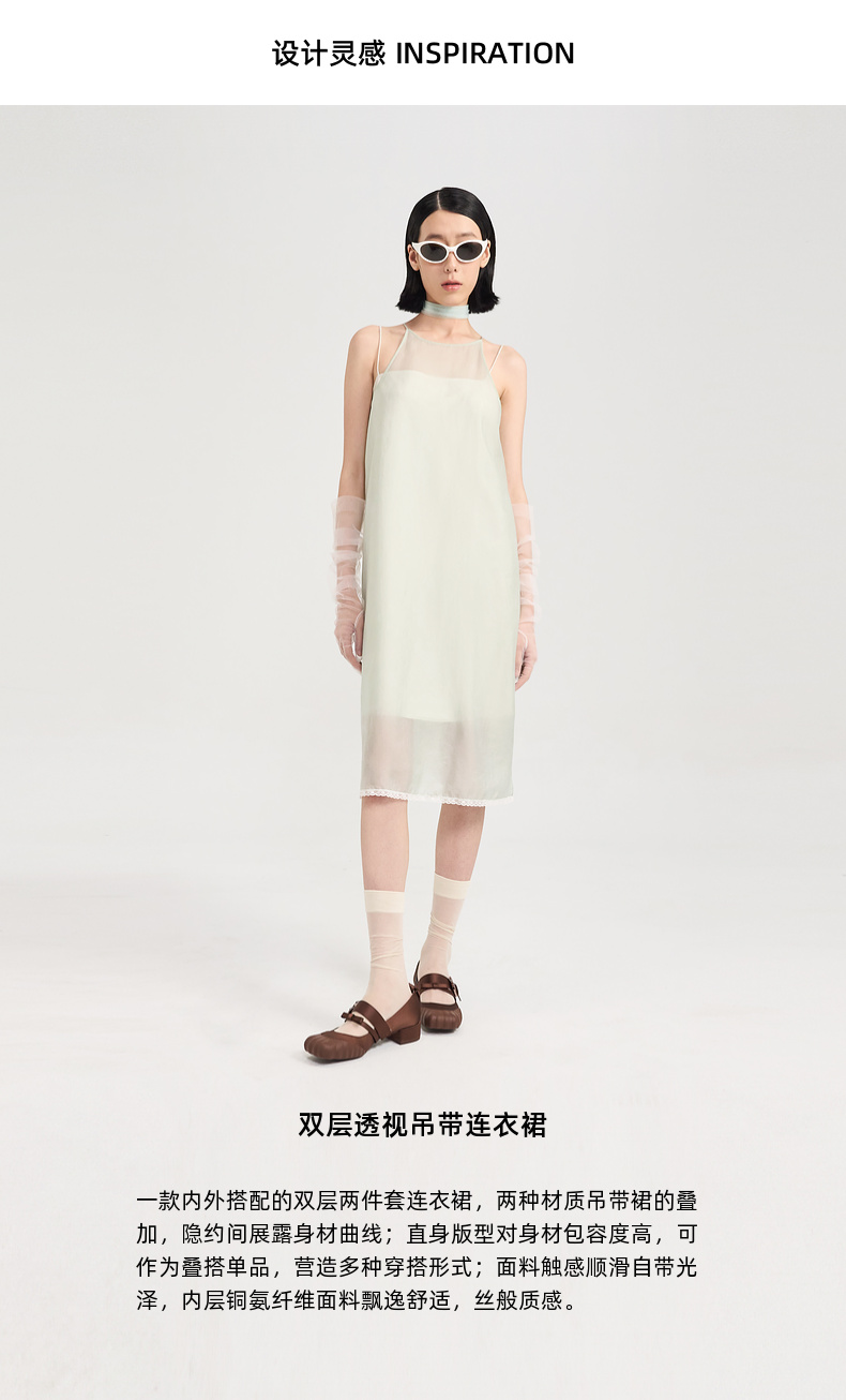[捡漏价]lost in echo2024夏季新款薄荷曼波高级双层透视吊带裙连衣裙女