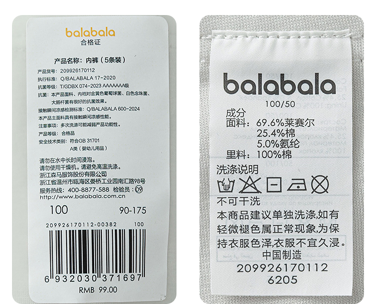 【balaOne】巴拉巴拉儿童内裤棉a类男童平角短裤大童四角裤五条装