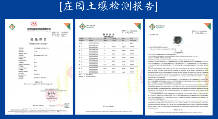 庄园每年坚持用果园的残果、落果、草木、枝叶制作酵素、肥料,自制环保酵素,改善土壤微生态,贫瘠地转变为肥沃的土地,促进蛋白质、淀粉、脂肪在土壤分解,增加土壤有机质,同时将庄园灌溉用水、土壤进行检测,均为零农残。