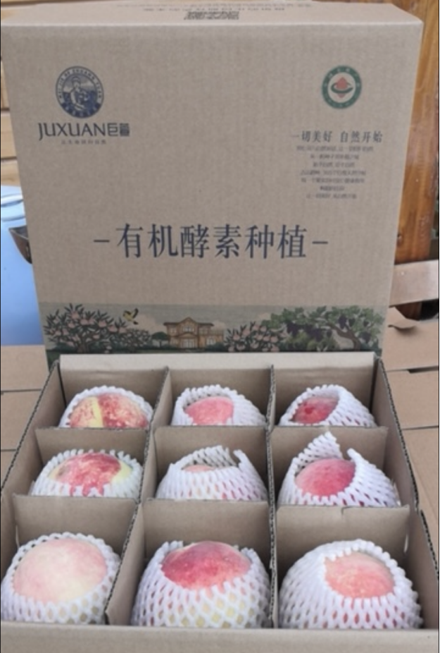 有机酵素冬雪绯蜜桃桃肉质细腻,甘甜多汁、清脆芳香、口感好,营养较一般桃子高2~3倍