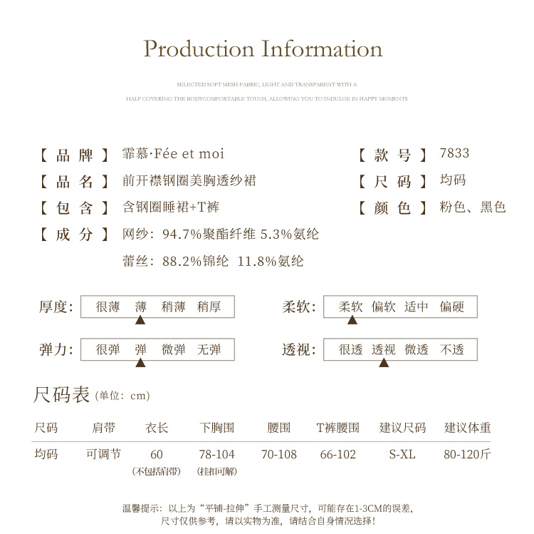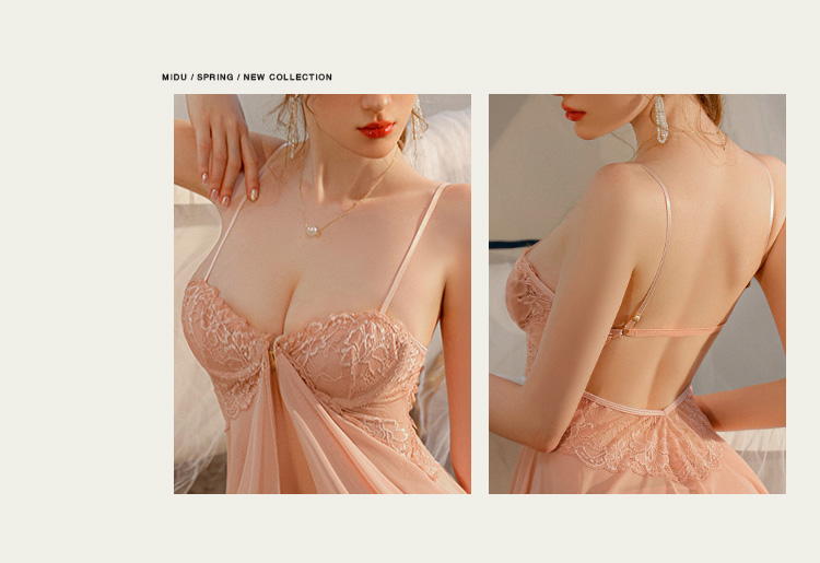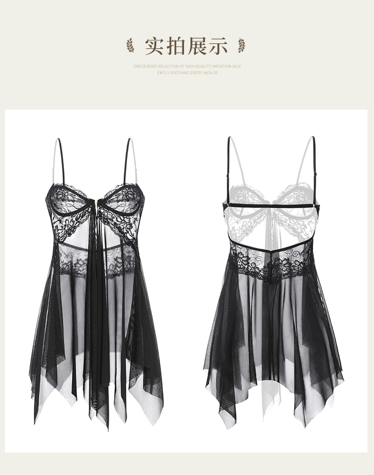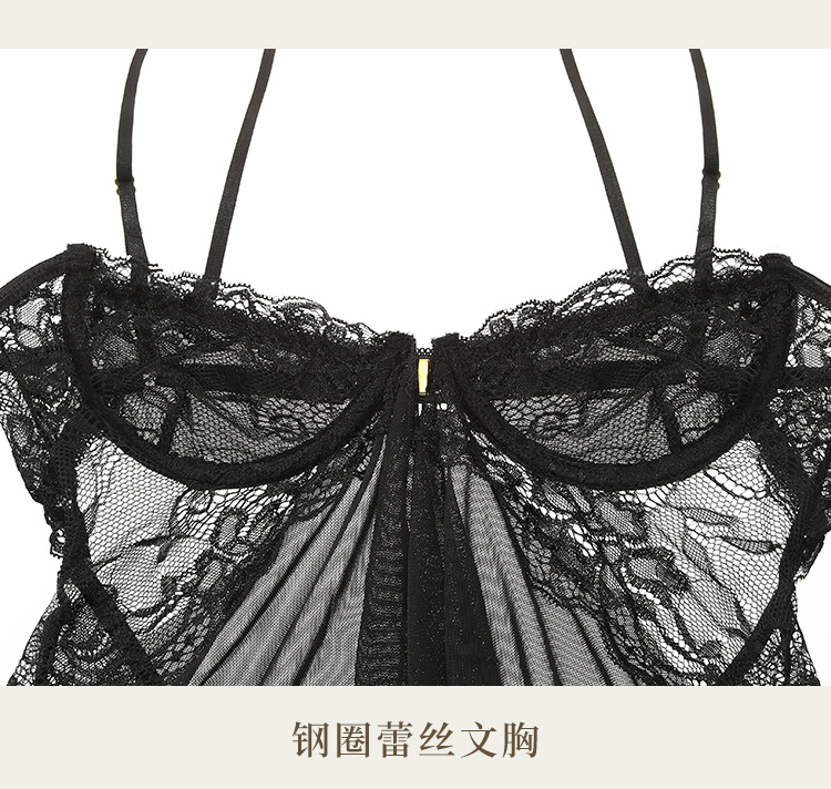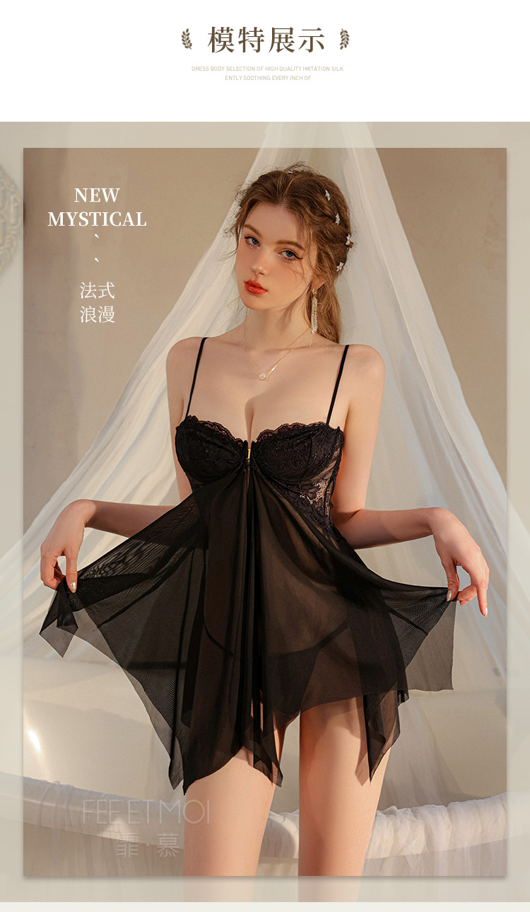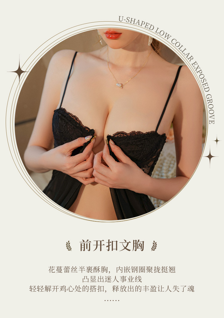 霏慕 前开襟钢圈美胸透纱裙大码7833 情趣内衣性感露沟背透视睡衣睡裙夫妻房事刺激级污度诱惑纯欲战袍套装