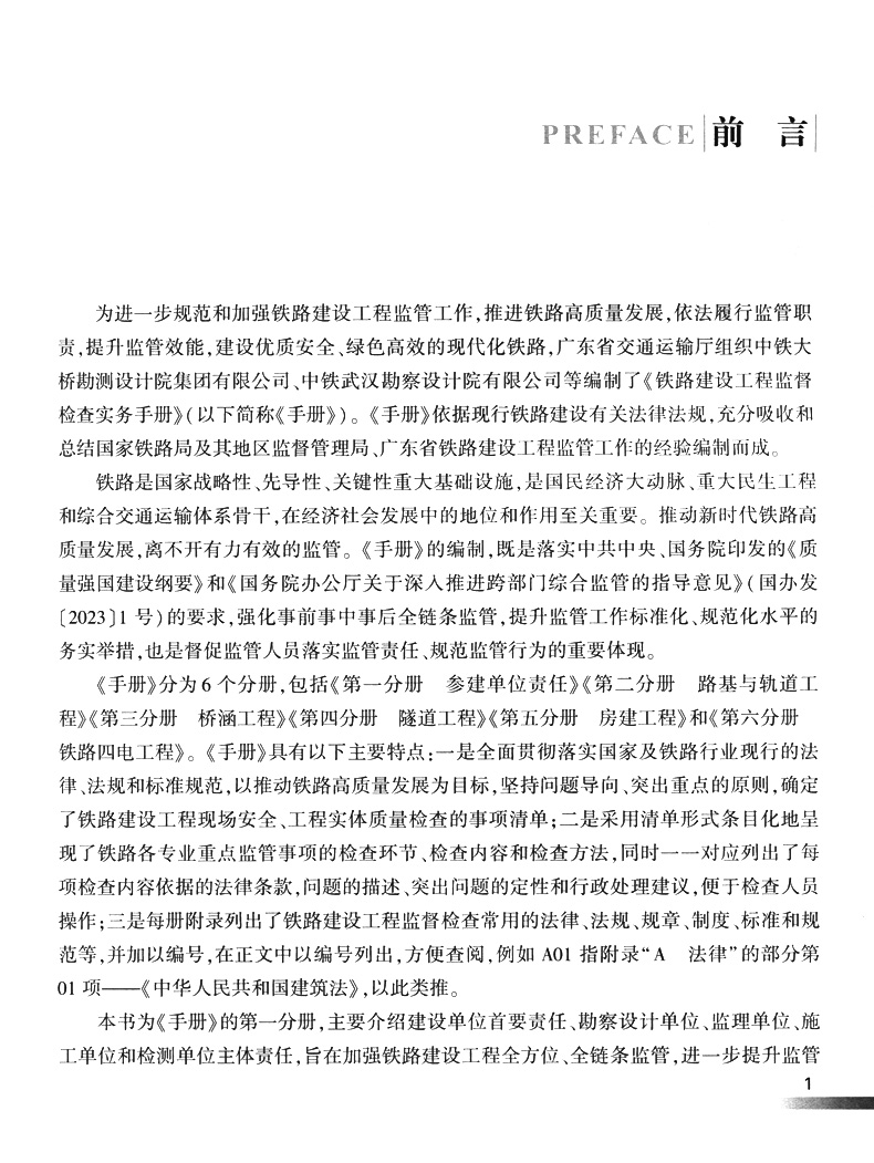 书名:铁路建设工程监督检查实务手册 第一分册 参建单位责任