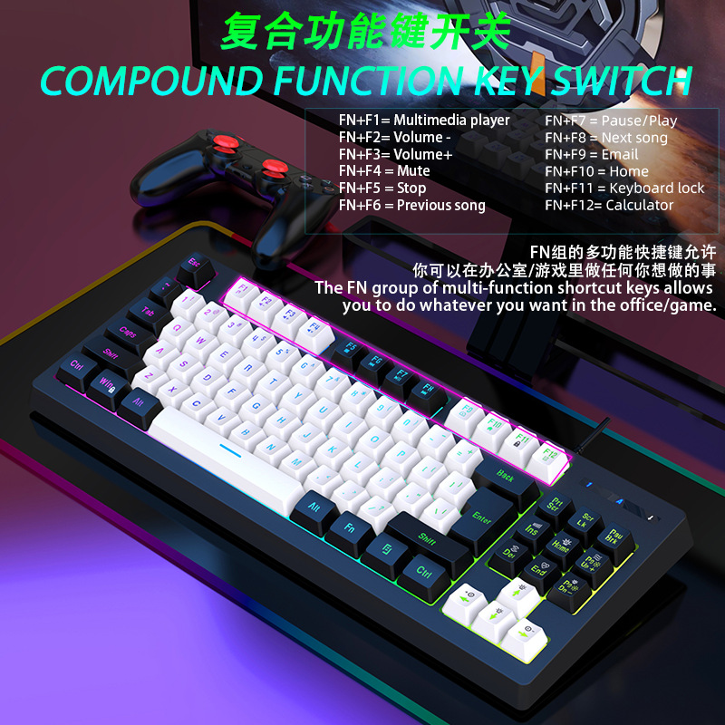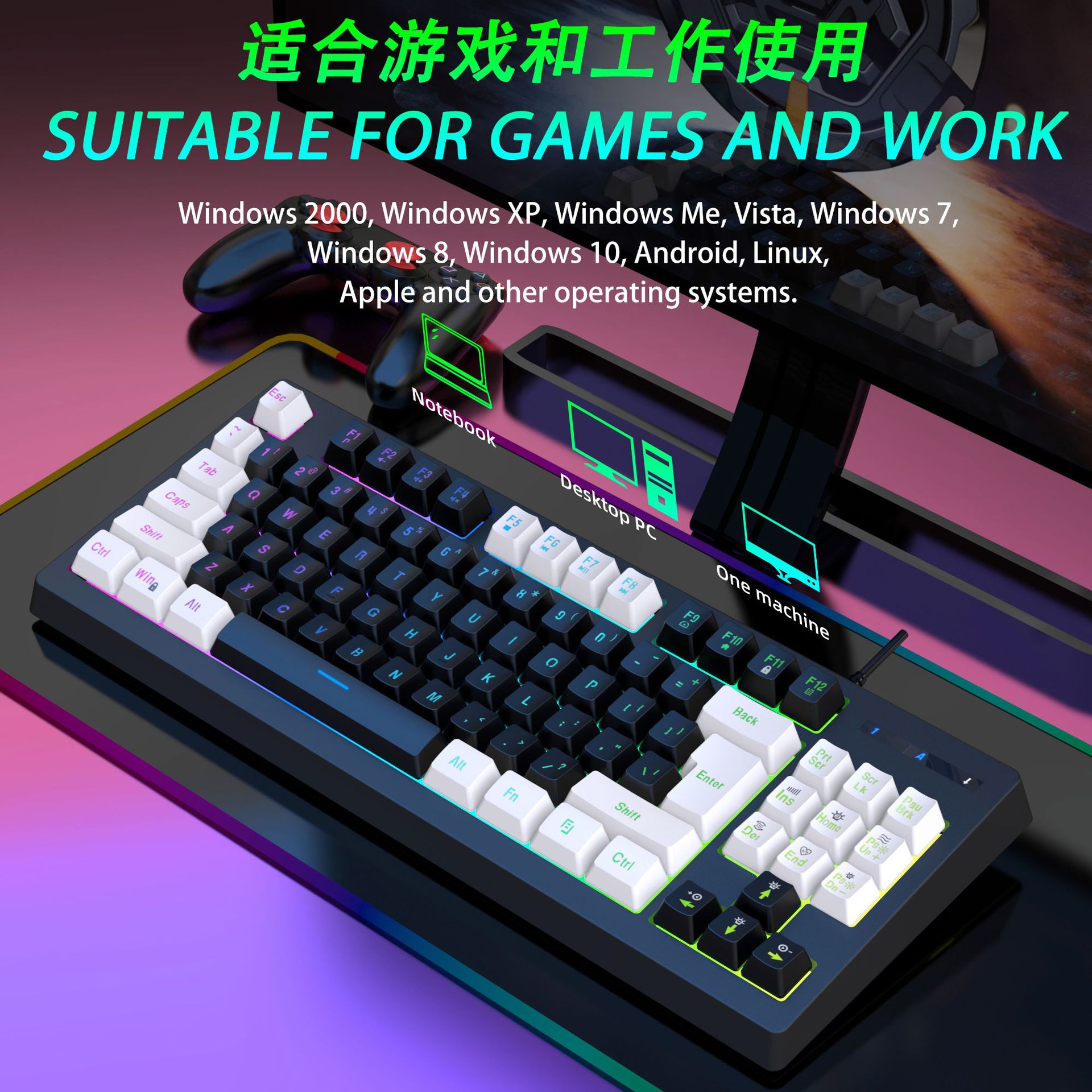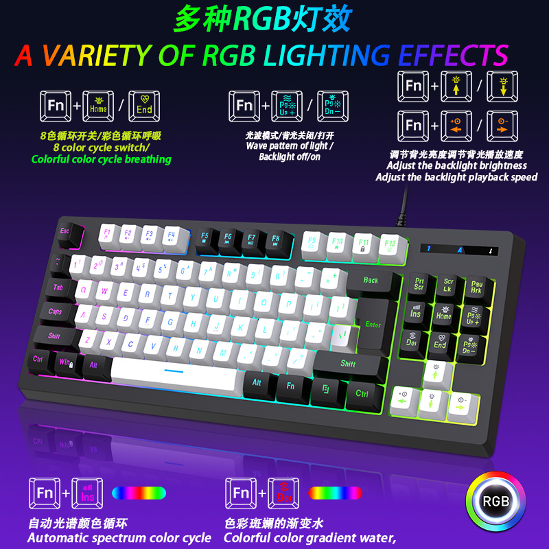 【87键RGB灯光游戏键盘】有线游戏键盘机械手感电竞RGB发光87键电脑办公家用USB。ry