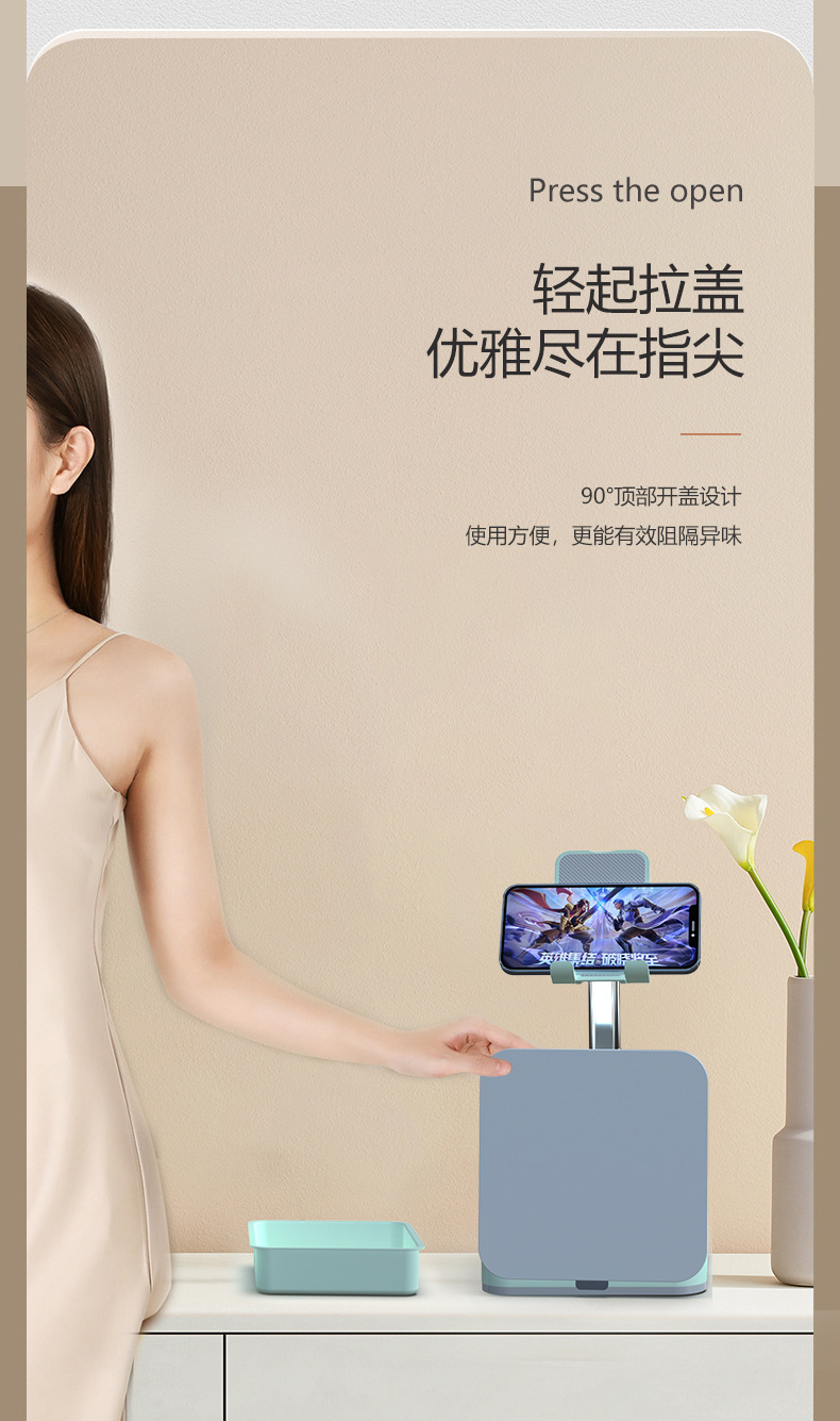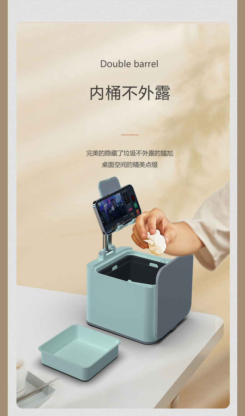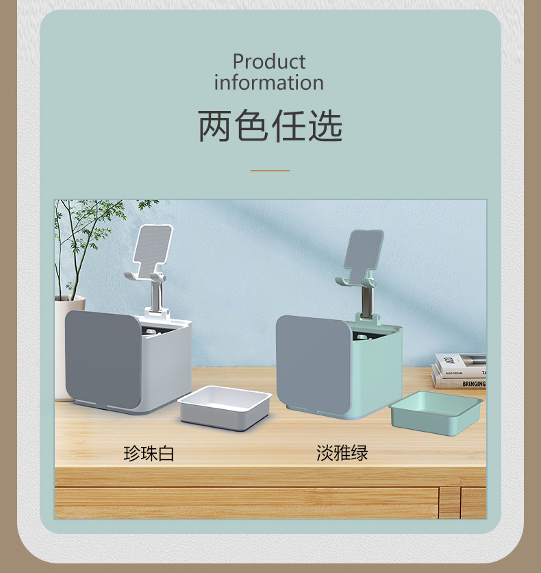 【零食追剧神器!清洁收纳桶支架合体版】新款创意桌面收纳盒支架小型家用办公室收纳清洁收纳桶手机支撑架。ry