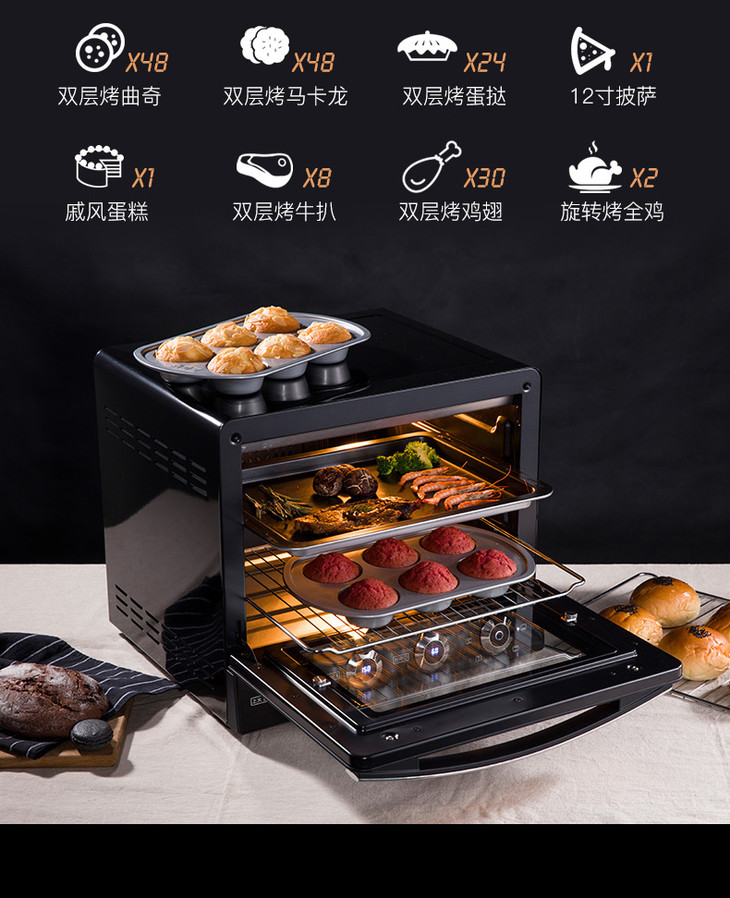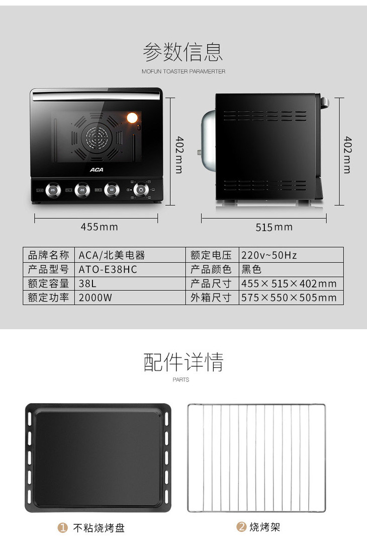 ACA/北美电器E38HC 电烤箱家用烘焙蛋糕多功能全自动商用大容量
