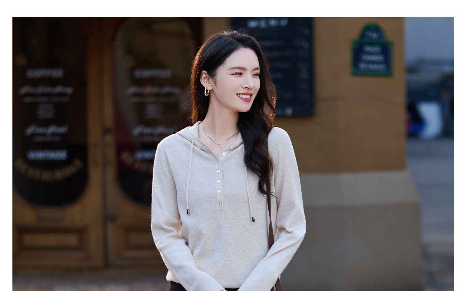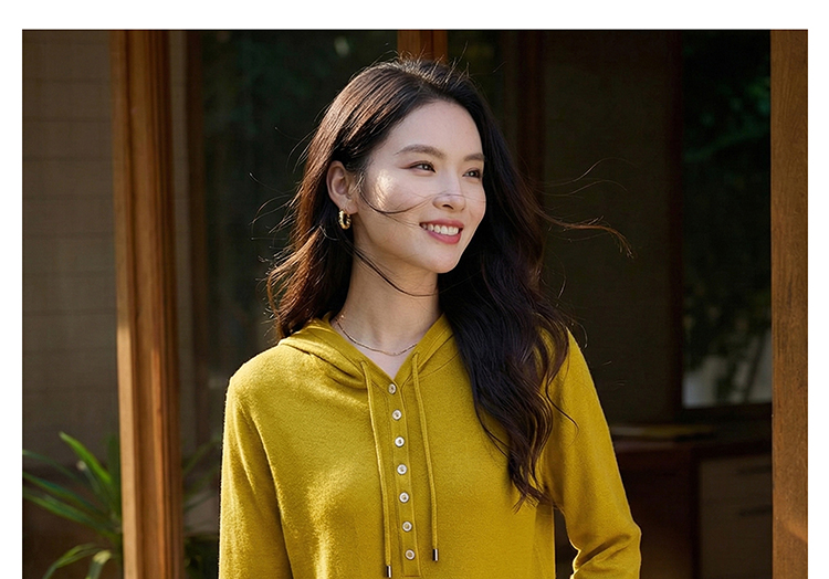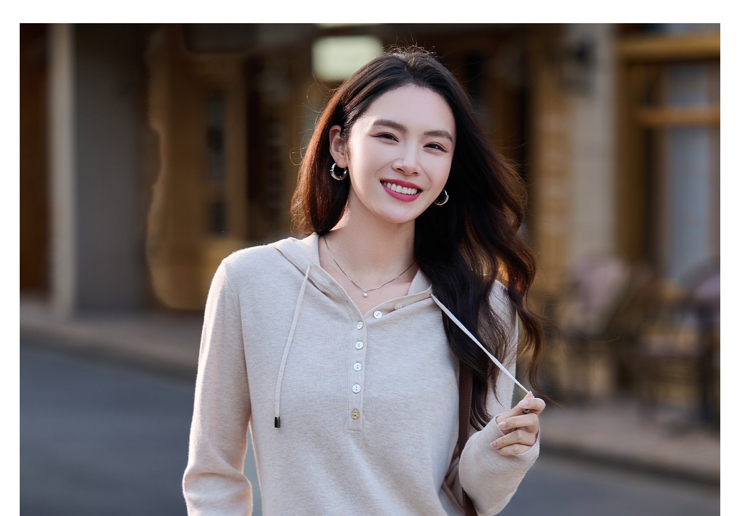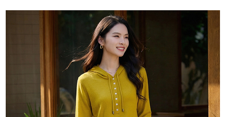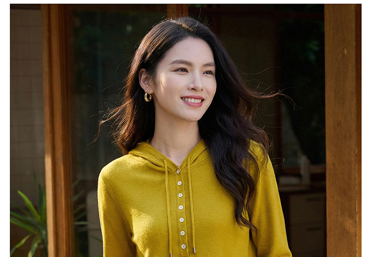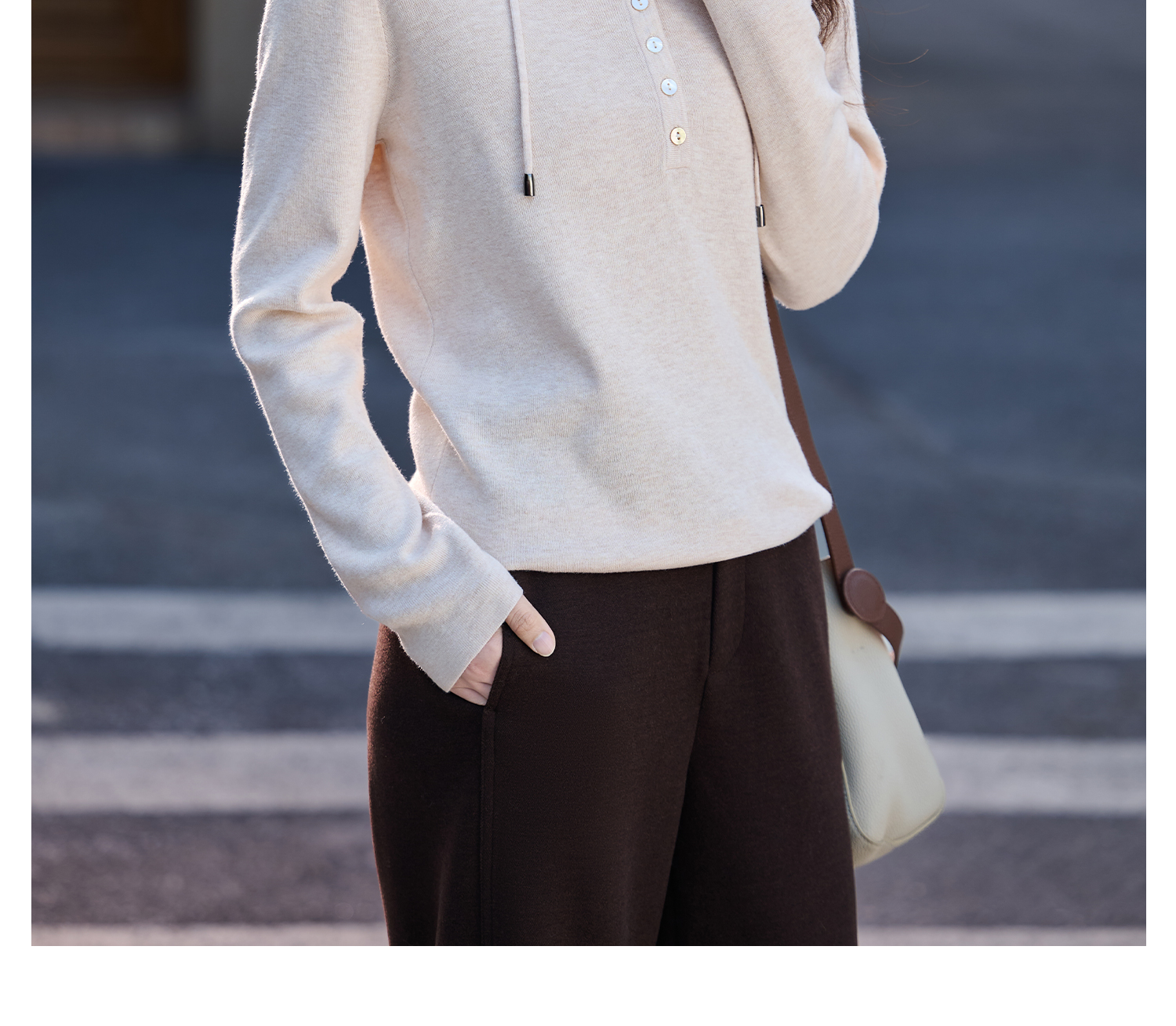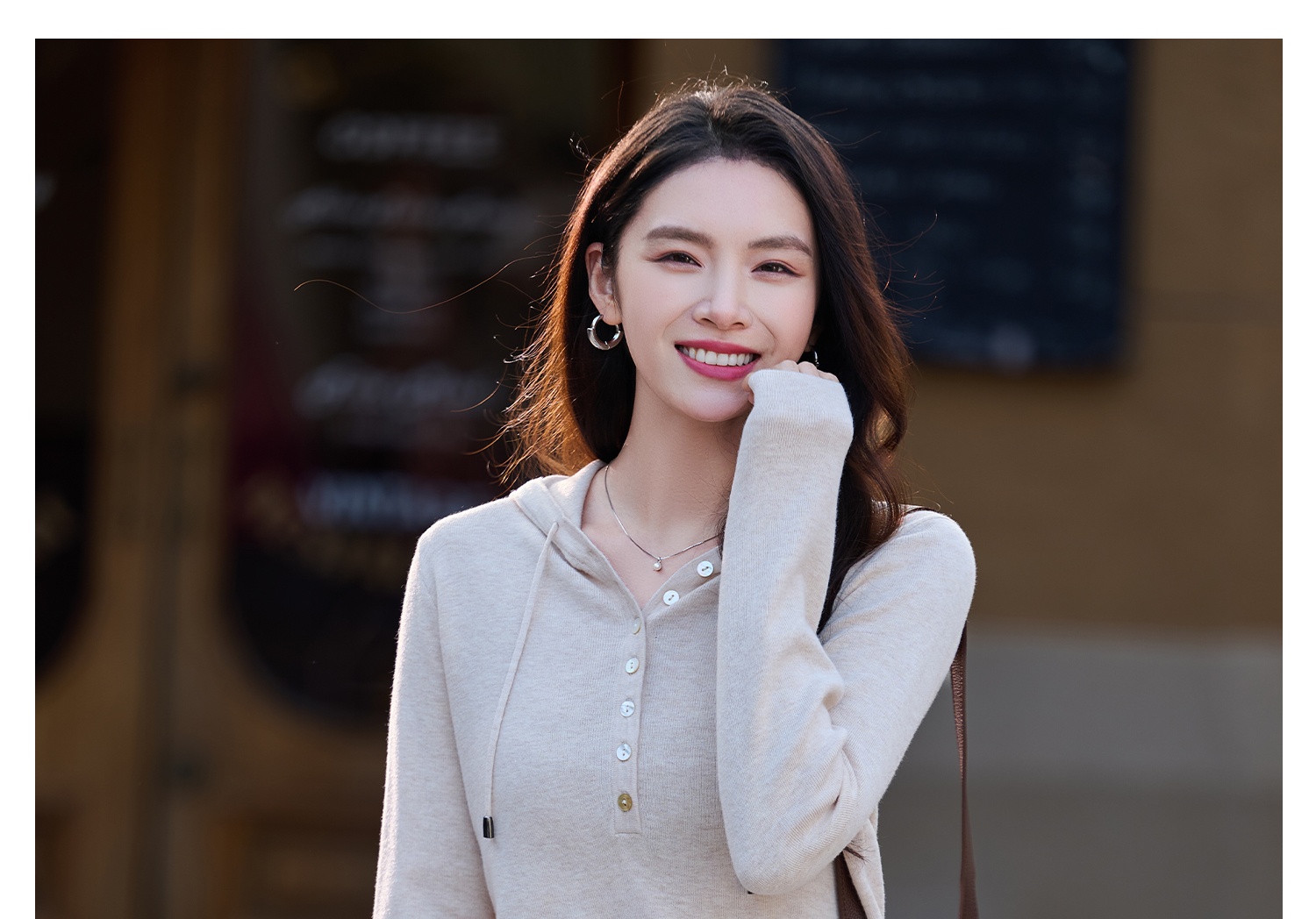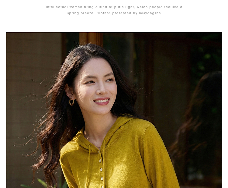 柔润绒感连帽针织衫 复合羊毛混纺 贴合身形却不紧绷 久穿不松垮 贴肤穿软乎不扎 米思阳2026春季新款连帽抽绳慵懒休闲长袖上衣女1846