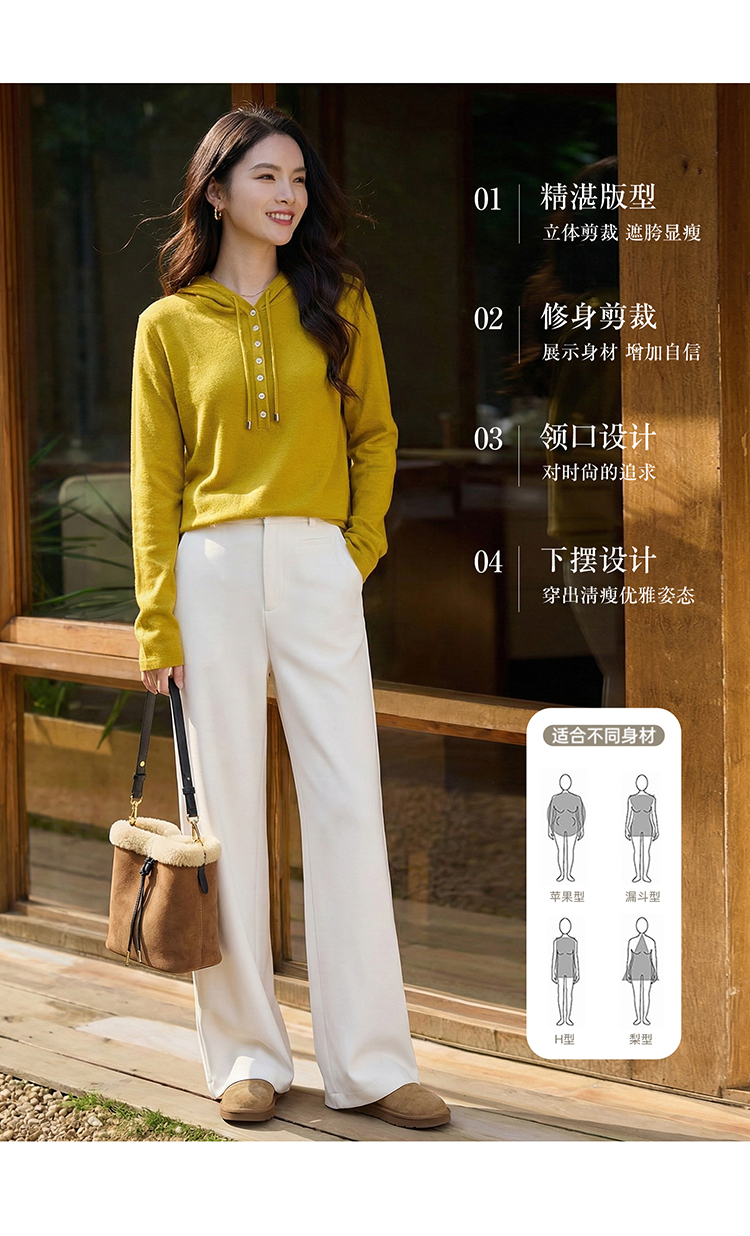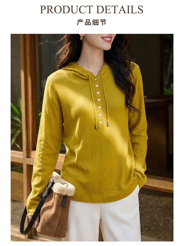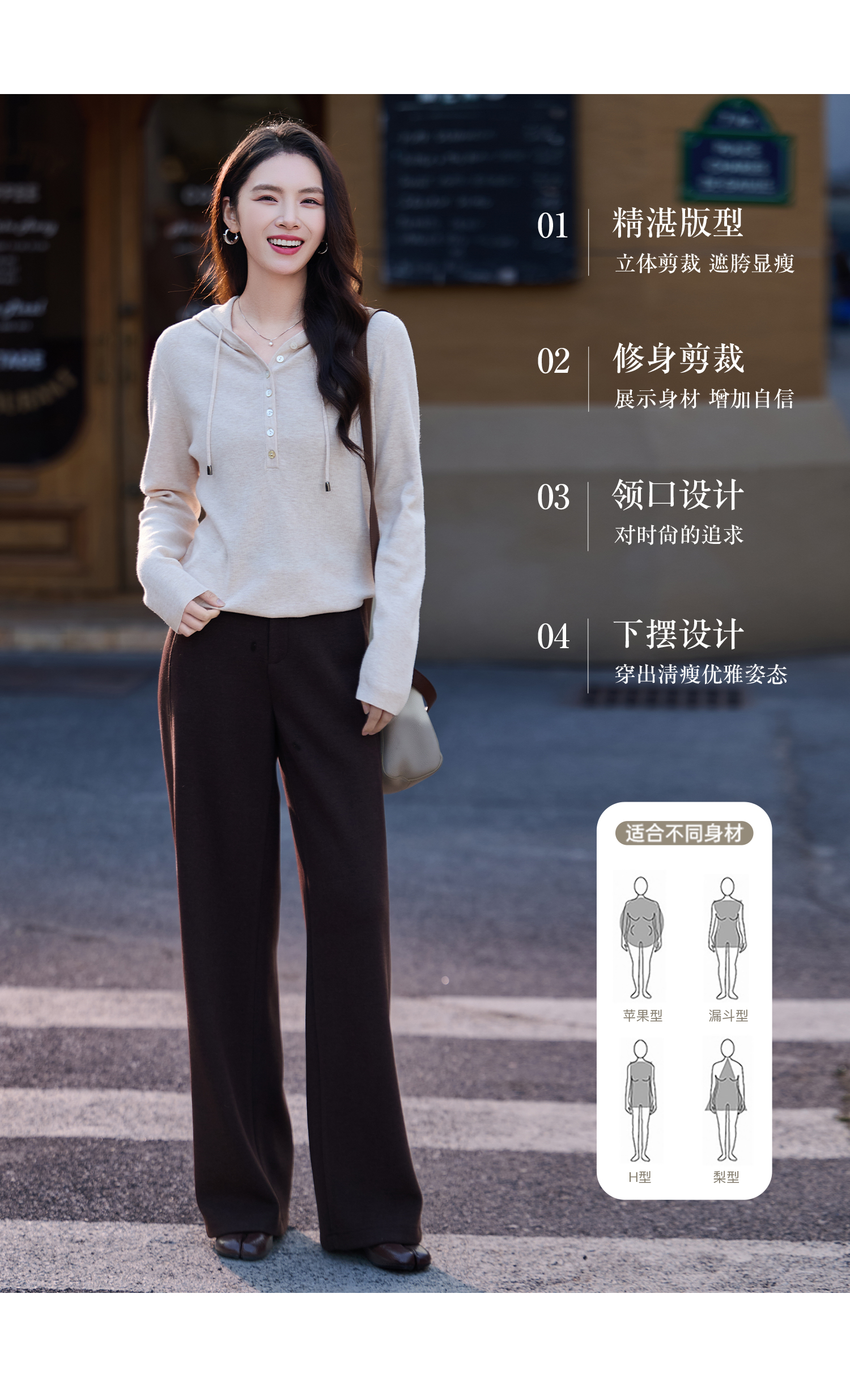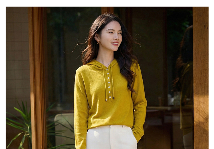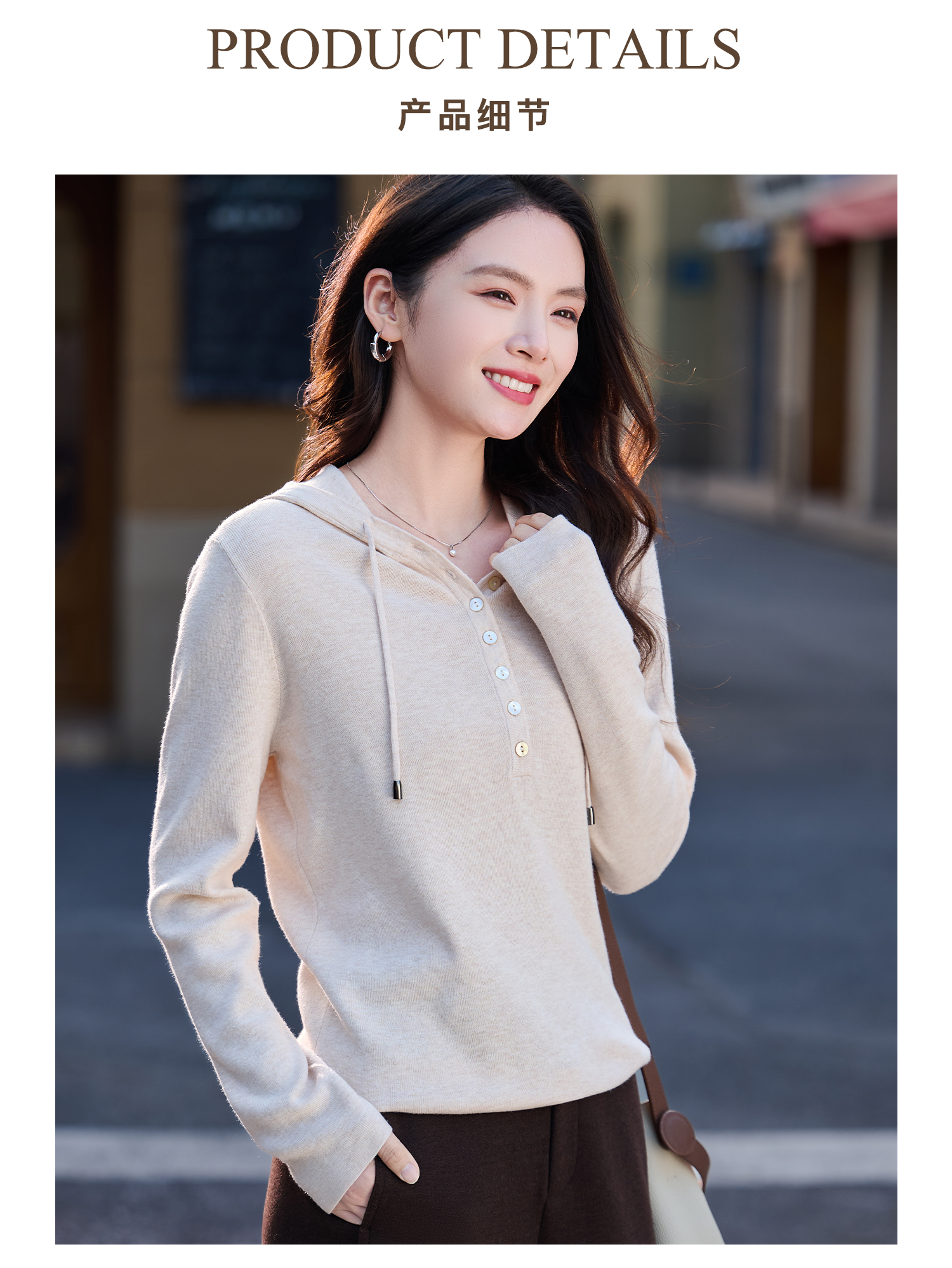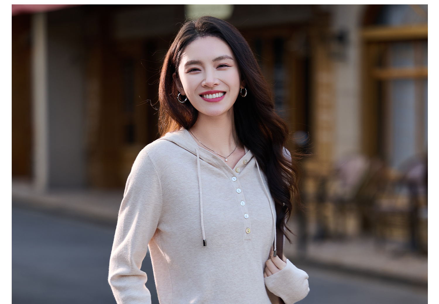柔润绒感连帽针织衫 复合羊毛混纺 贴合身形却不紧绷 久穿不松垮 贴肤穿软乎不扎 米思阳2026春季新款连帽抽绳慵懒休闲长袖上衣女1846
