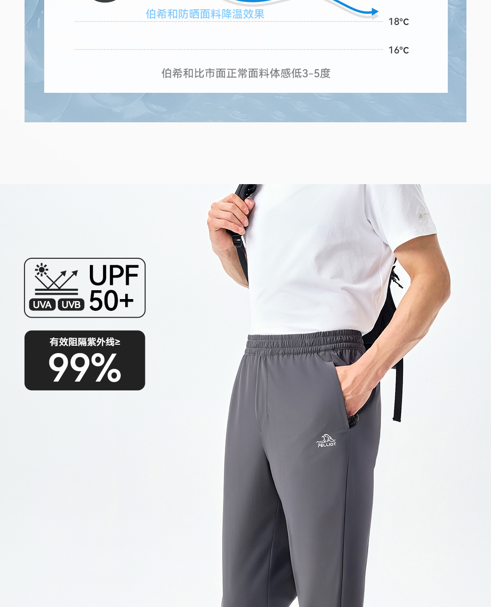 伯希和户外防晒裤男款运动弹力长裤春夏透气休闲徒步登山裤子